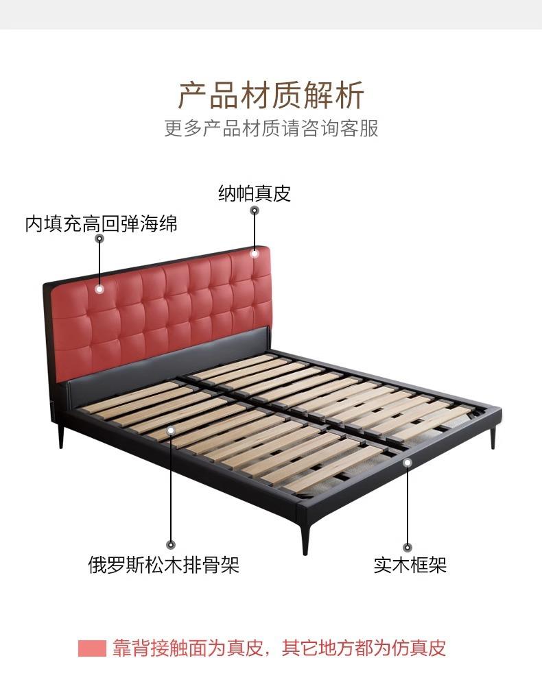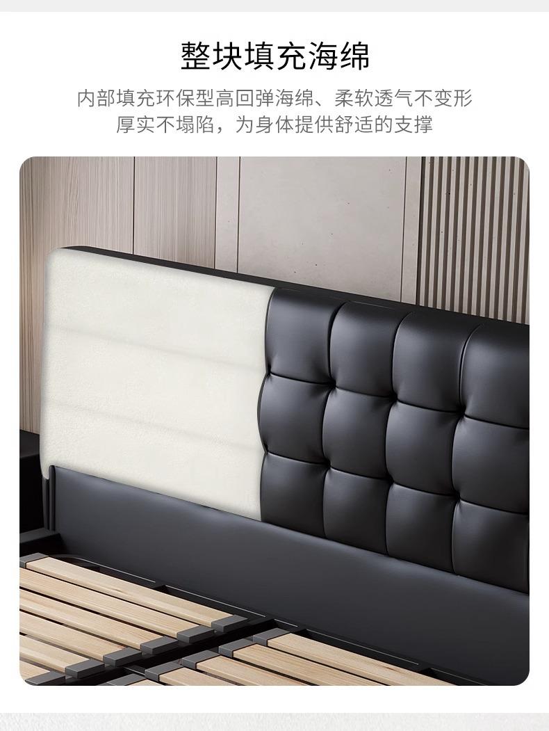 Compra Cama moderna y sencilla de cuero negro, estilo nórdico, ligera, de lujo, para apartamento pequeño, cama auxiliar suave, para dormitorio principal, cama doble minimalista italiana. al por mayor en Joom.pro