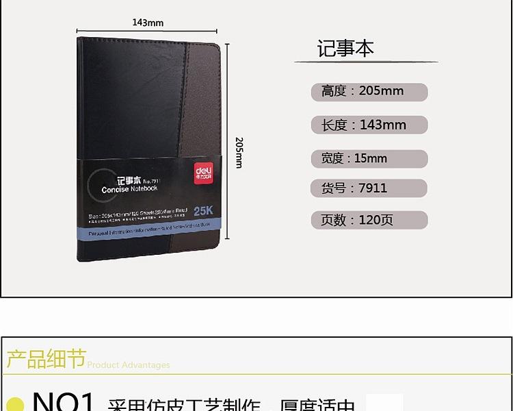 Cuaderno de cuero Deli 7911 (Negro)-120 páginas -25k (Ben) Negro