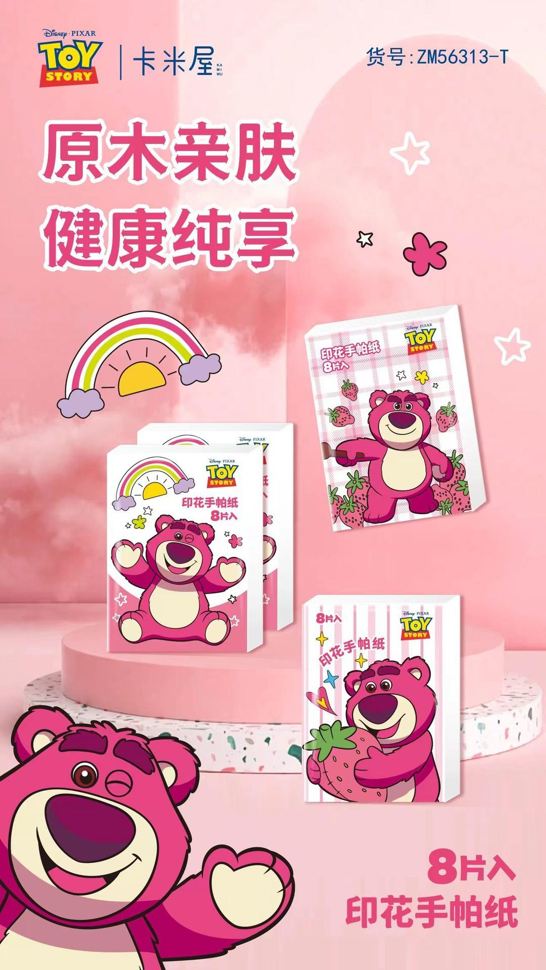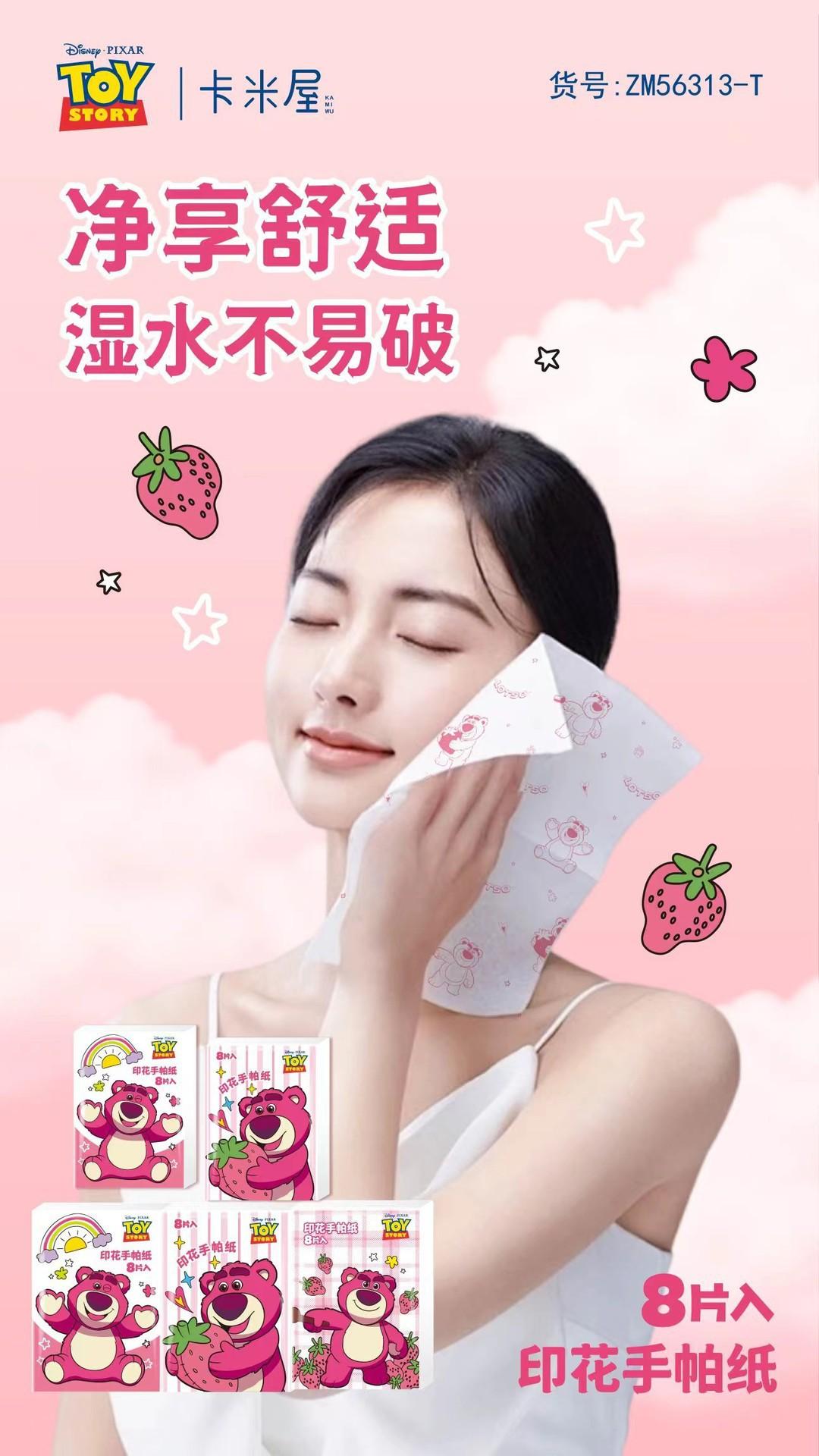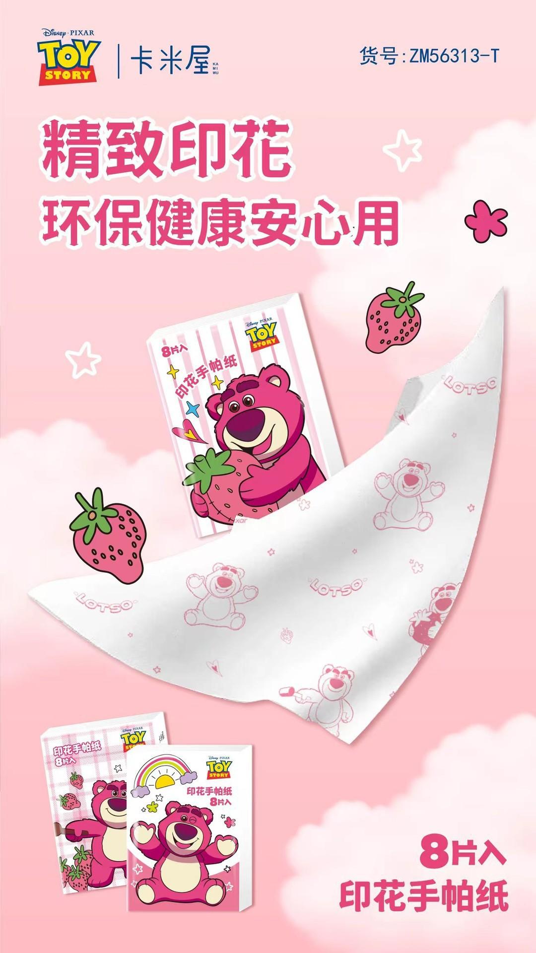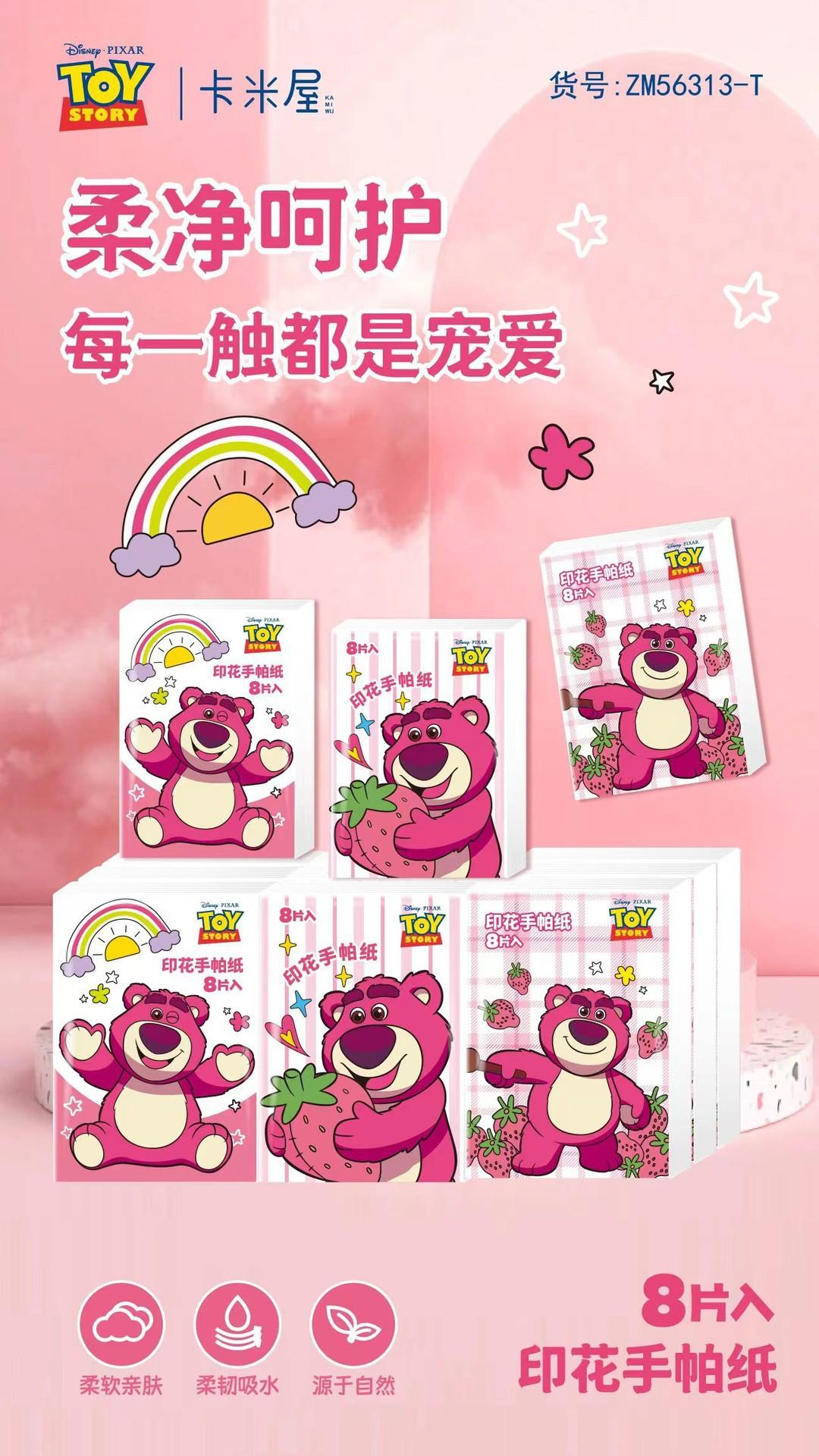 Pañuelo de Papel Impreso Oso Fresa Pañuelo de Papel Impreso Oso Fresa Servilleta Paquete Pequeño Pañuelo de Papel Portátil Pañuelo de Papel al Por Mayor