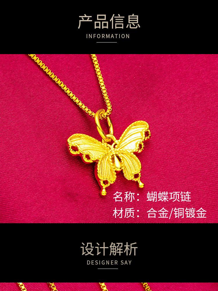 Collar de lazo de oro y arena de Vietnam para mujer, cadena fina, joyería al por mayor, joyería transfronteriza, collar de mariposa