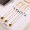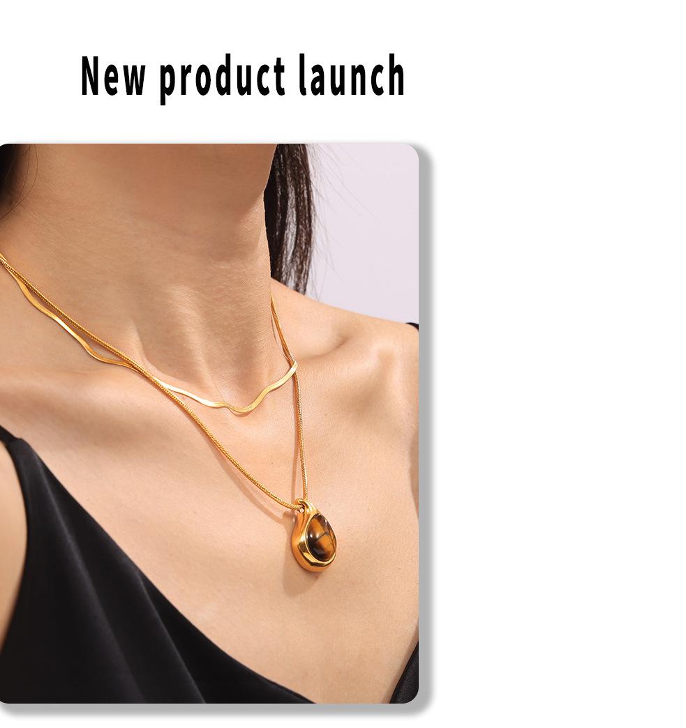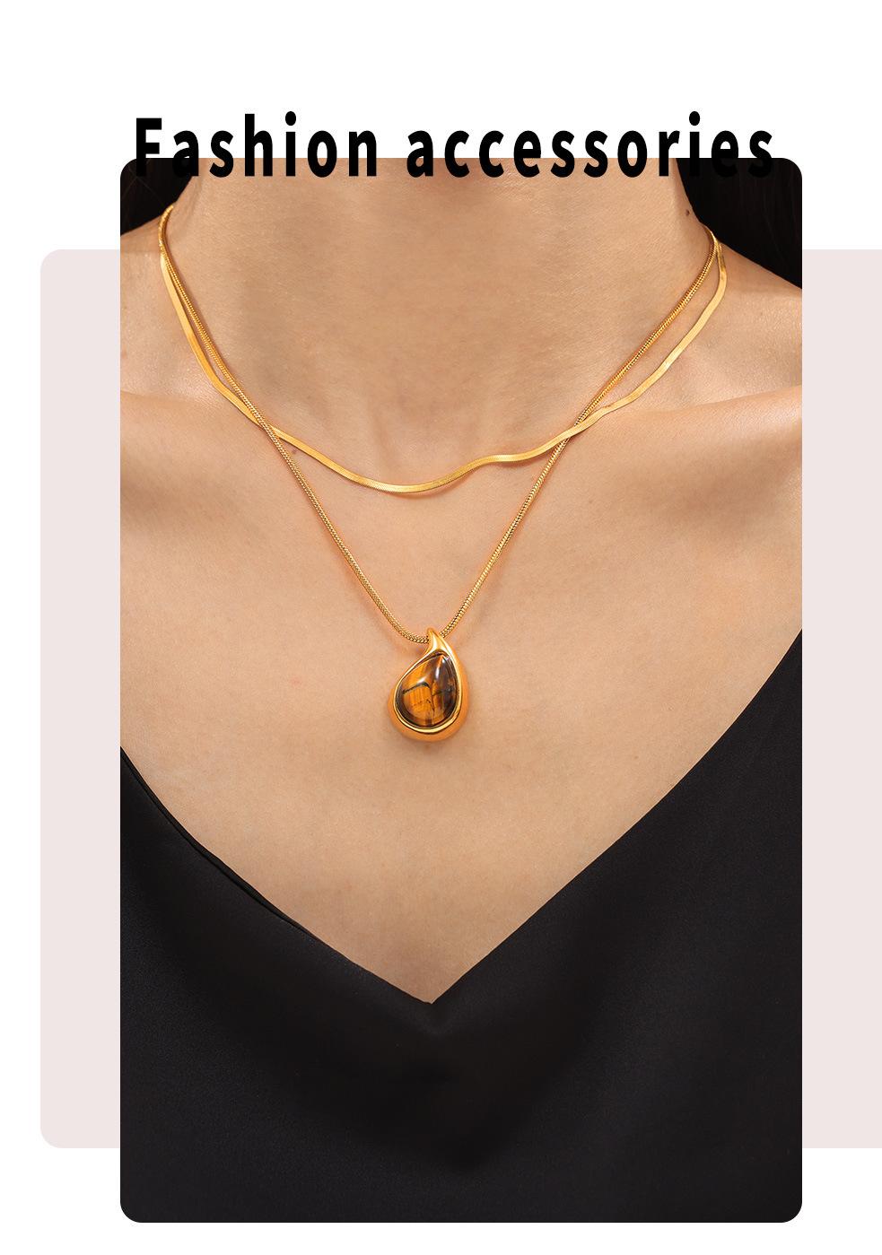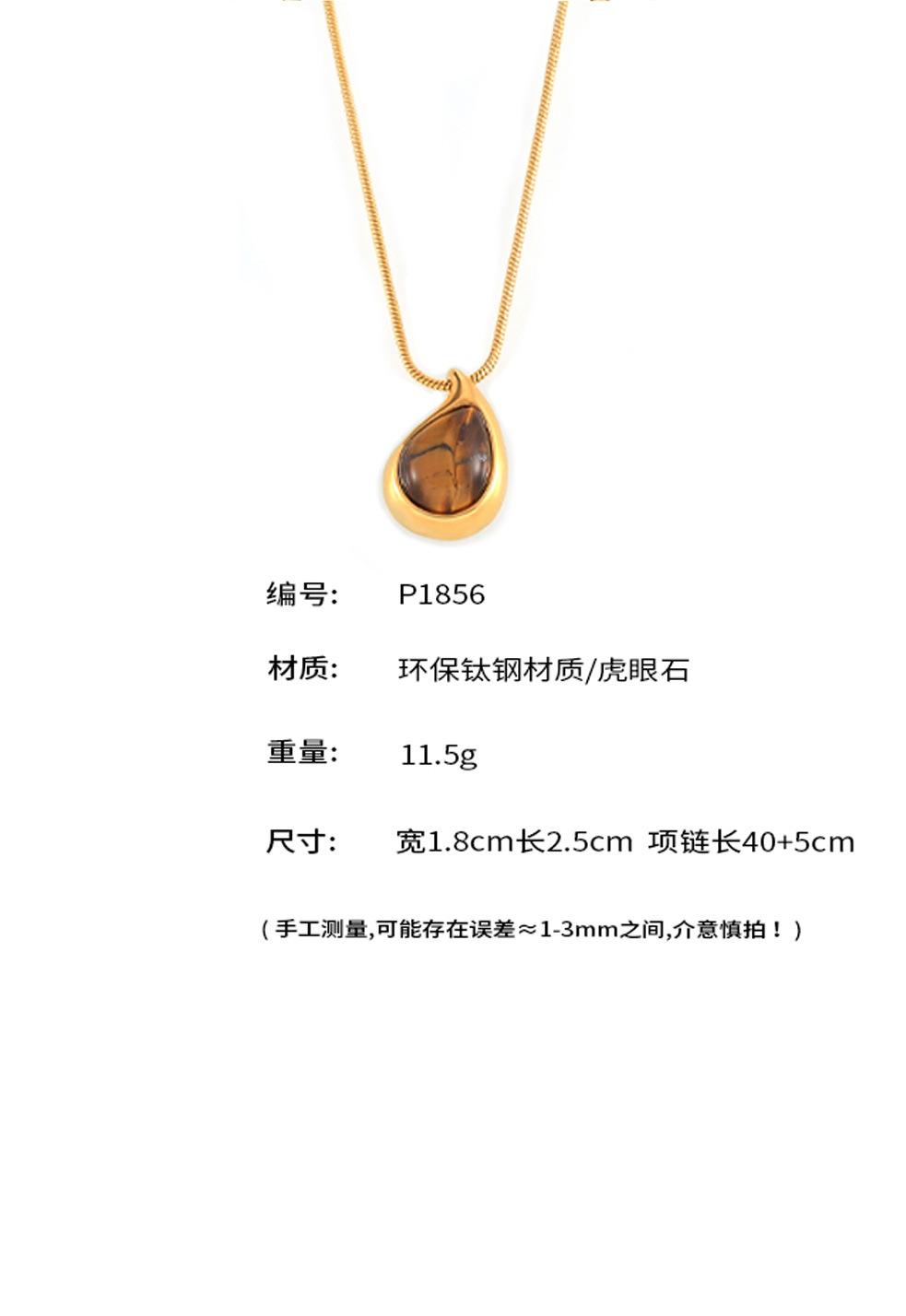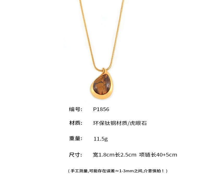Colgante de piedra de ojo de tigre con forma de gota de agua y diseño de minoría transfronteriza de Europa y Estados Unidos, collar de temperamento simple chapado en acero de titanio de 18 k al por mayor
