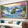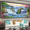 Pintura de diamantes diamante completo nuevo amanecer pegar diamante punto de cruz sala de estar agua cascada paisaje pintura ladrillo y piedra espectáculo