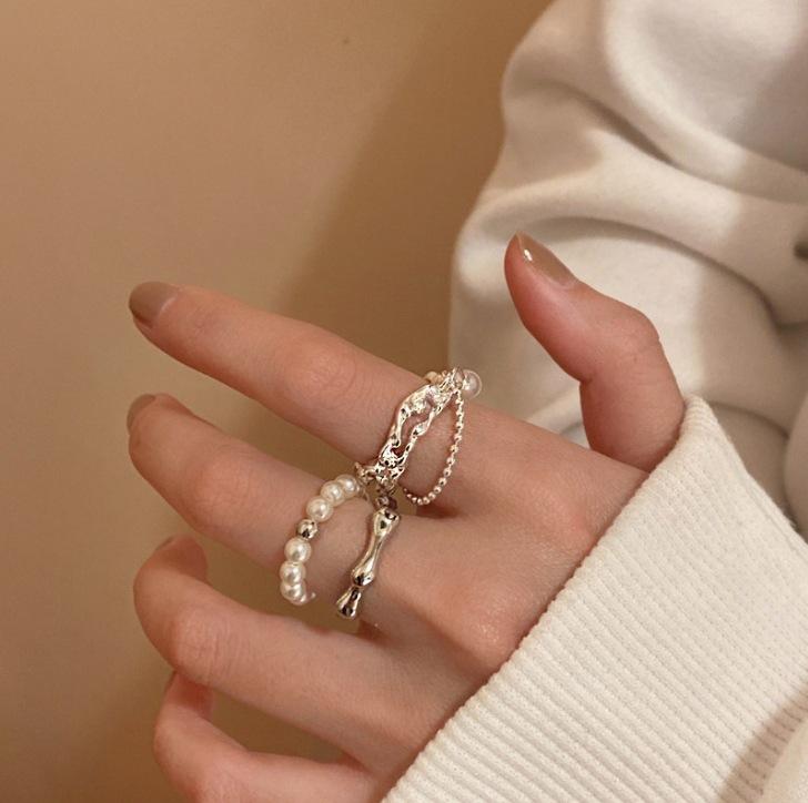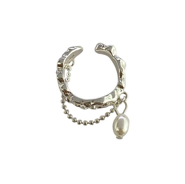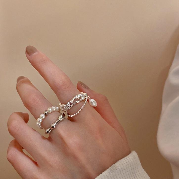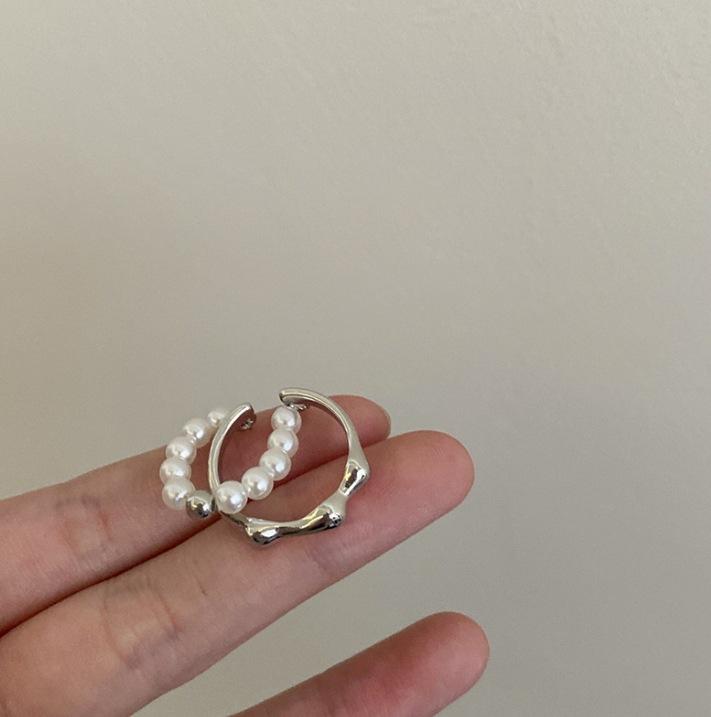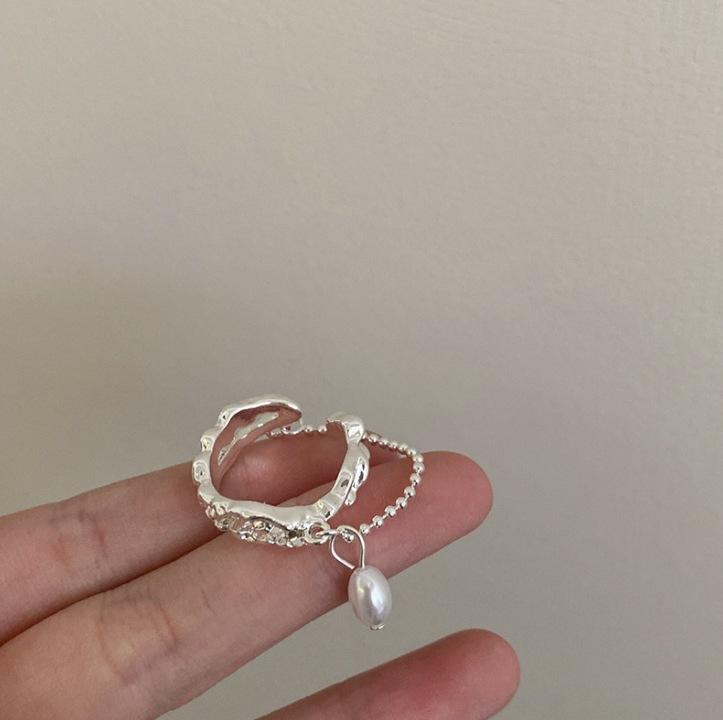 Anillo de perla de imitación estilo coreano, nuevo anillo de borlas elegante y moderno para mujer, anillo geométrico abierto.