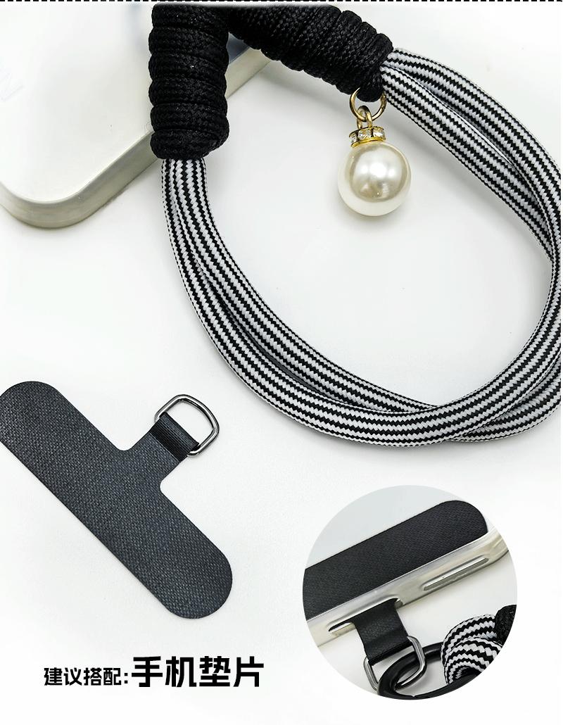 Cordón para teléfono móvil, correa corta para la muñeca, con colgante de perla, para hombre y mujer, para exteriores, con cadena para llaves, color sólido