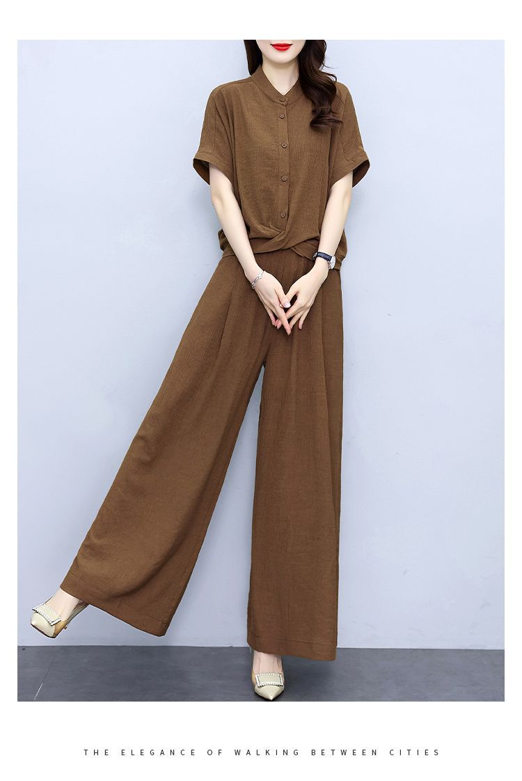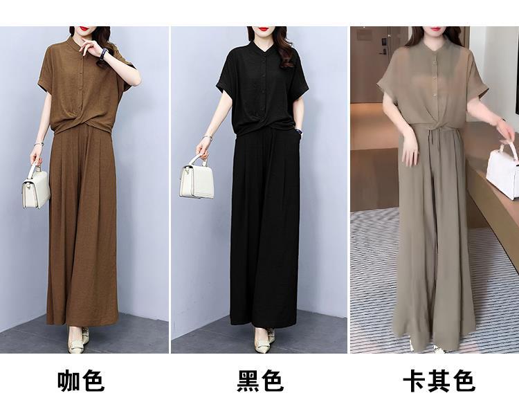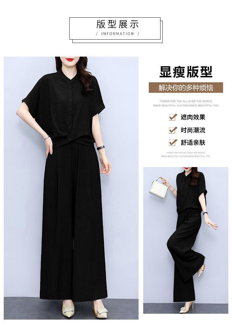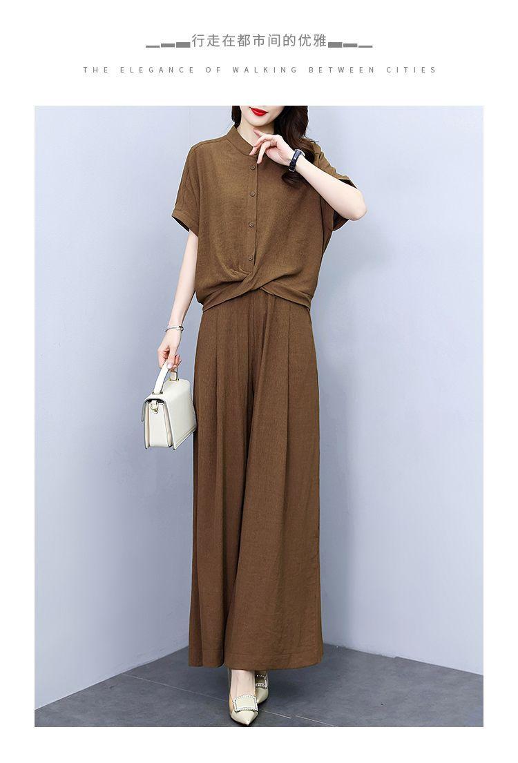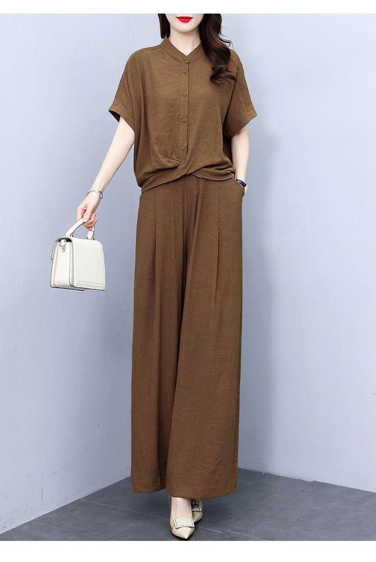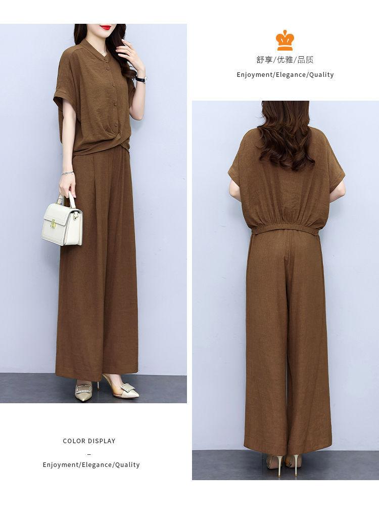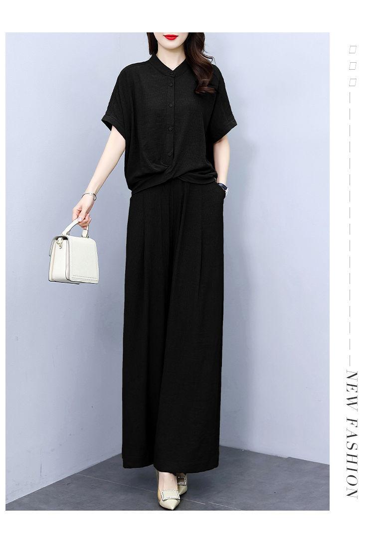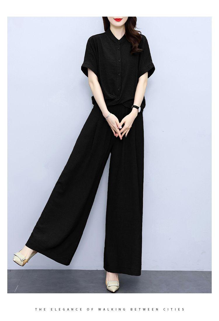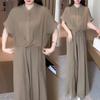 Conjunto de dos piezas de pantalón ancho informal de moda para mujer, novedad de verano 2024, elegante top antiedad con cintura alta y pantalones largos
