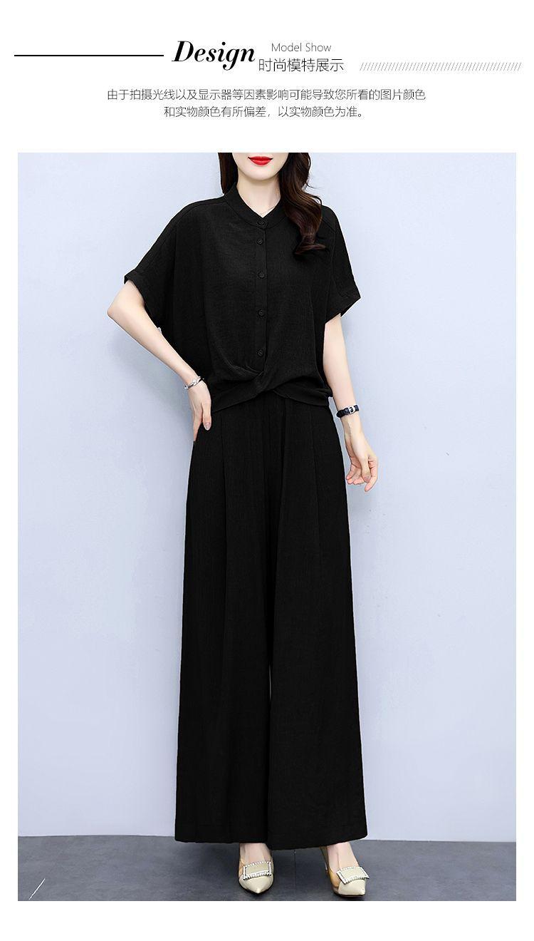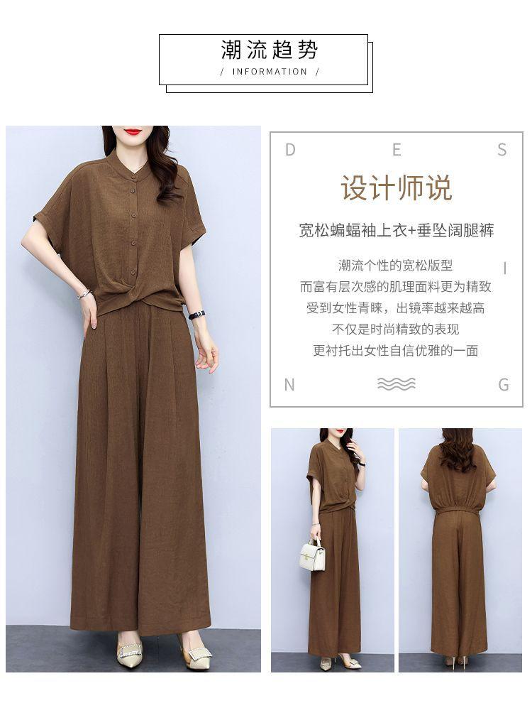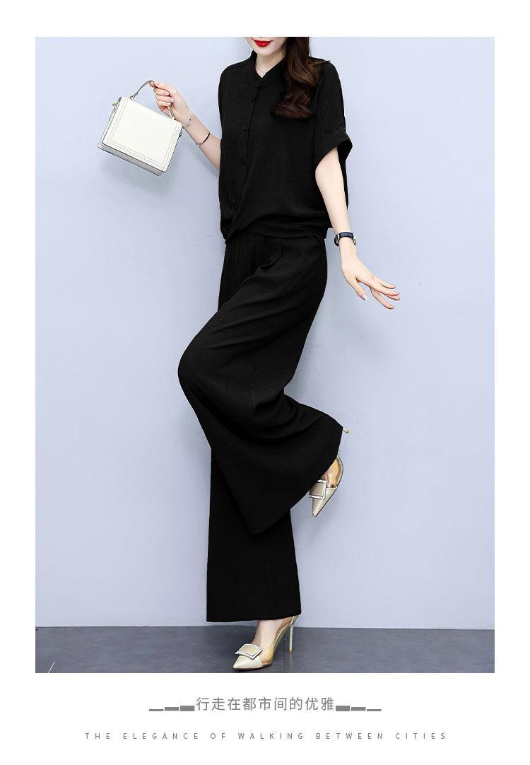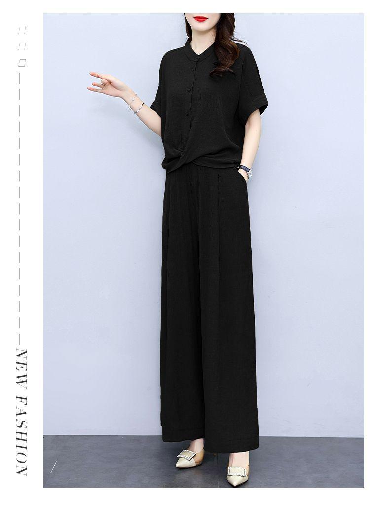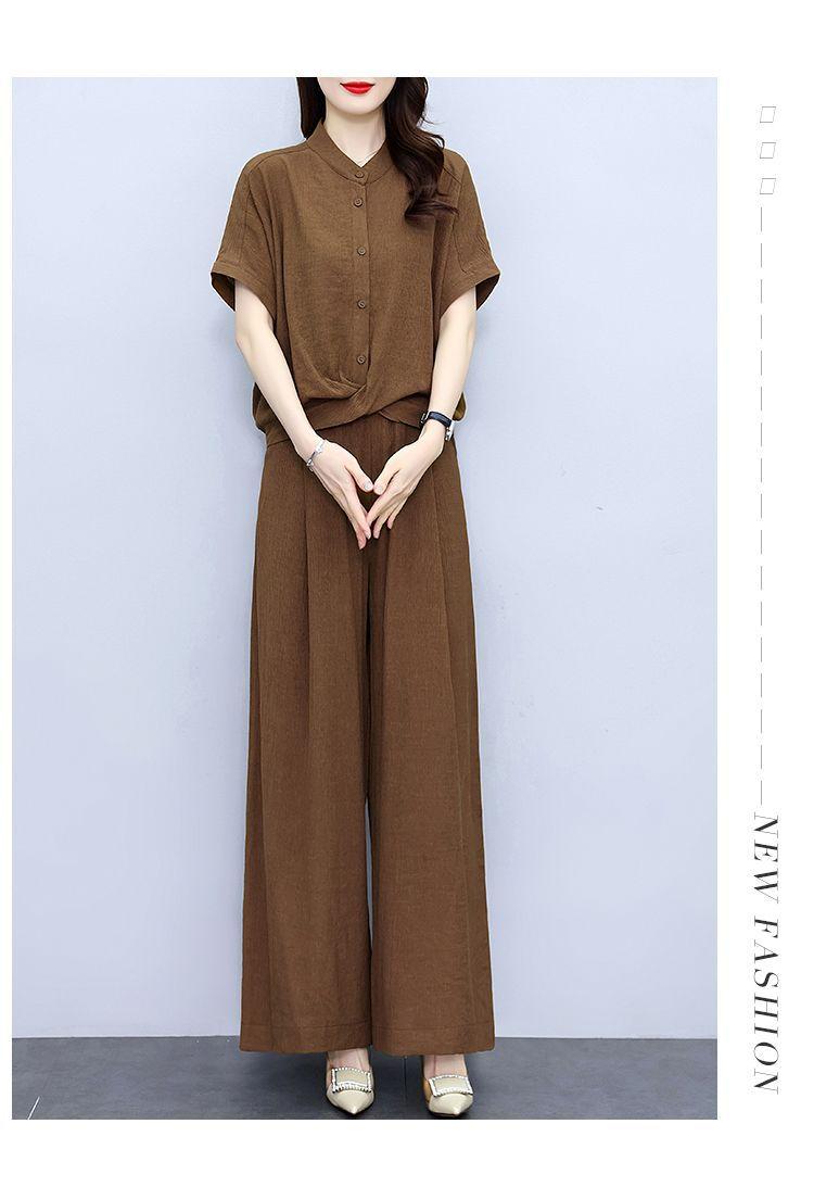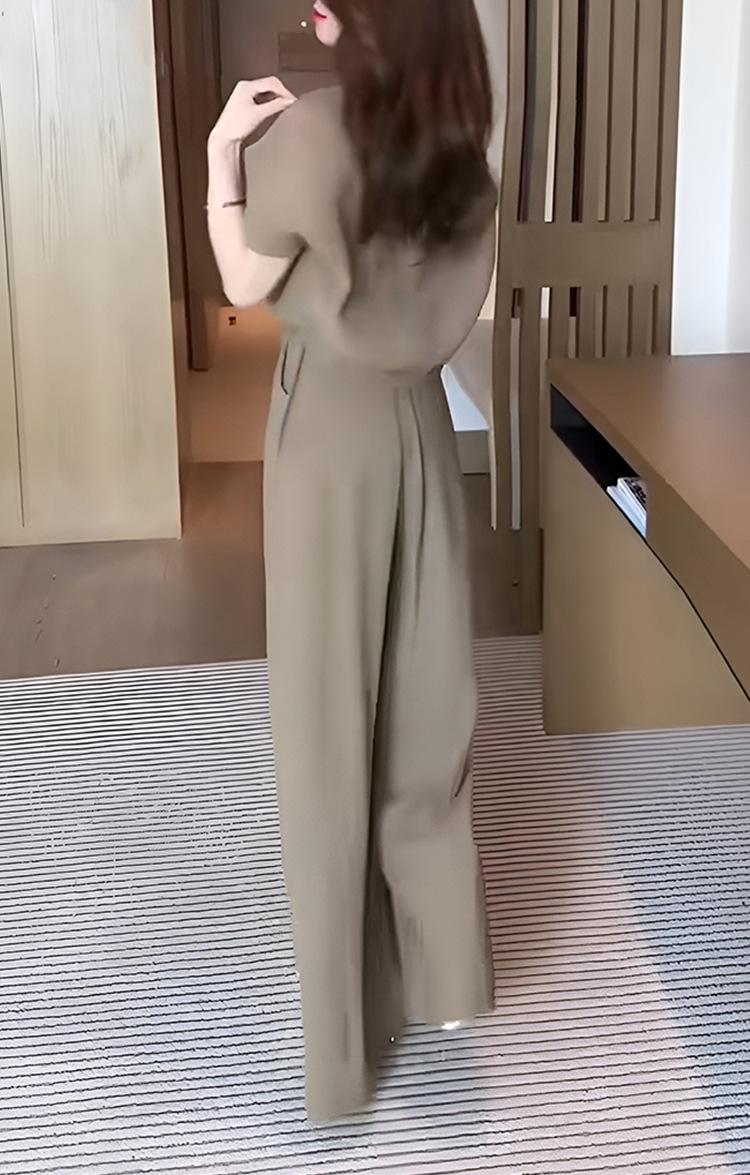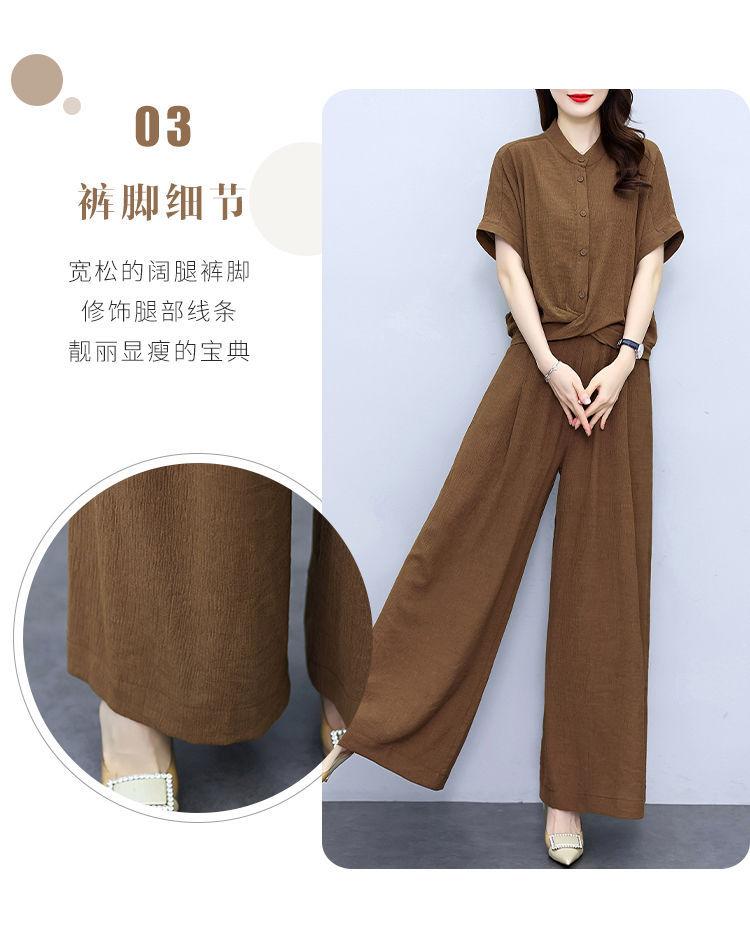 Conjunto de dos piezas de pantalón ancho informal de moda para mujer, novedad de verano 2024, elegante top antiedad con cintura alta y pantalones largos