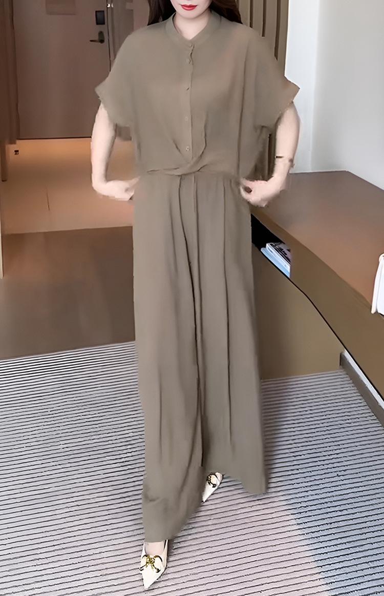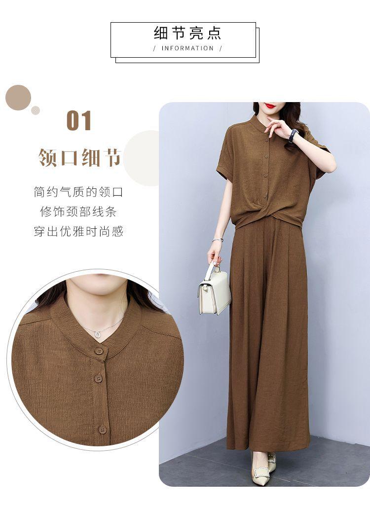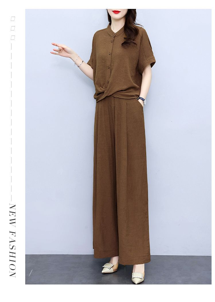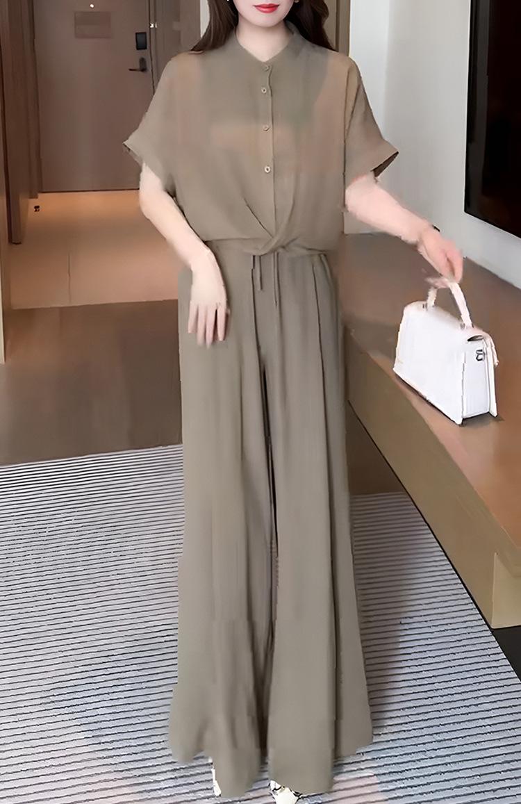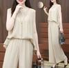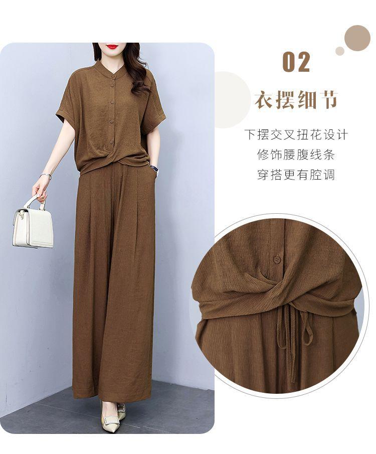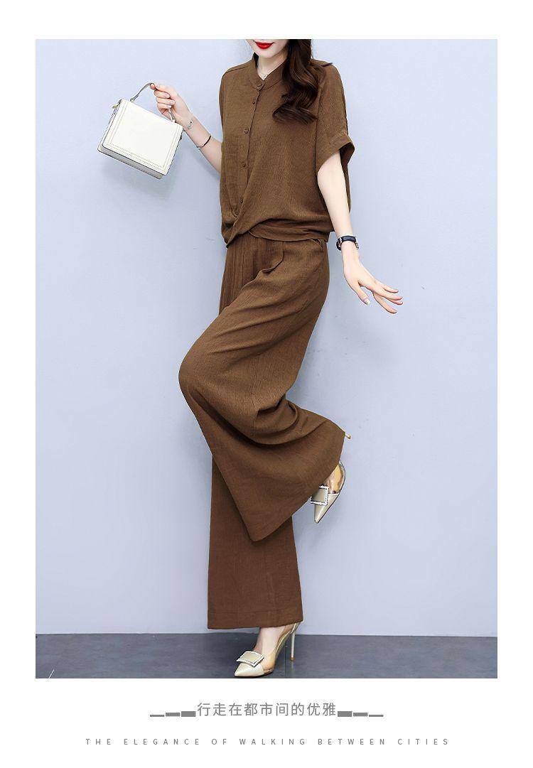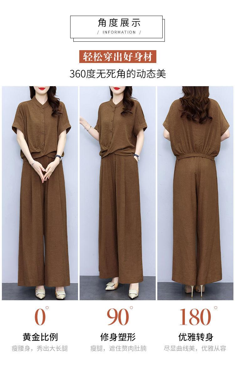 Conjunto de dos piezas de pantalón ancho informal de moda para mujer, novedad de verano 2024, elegante top antiedad con cintura alta y pantalones largos
