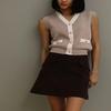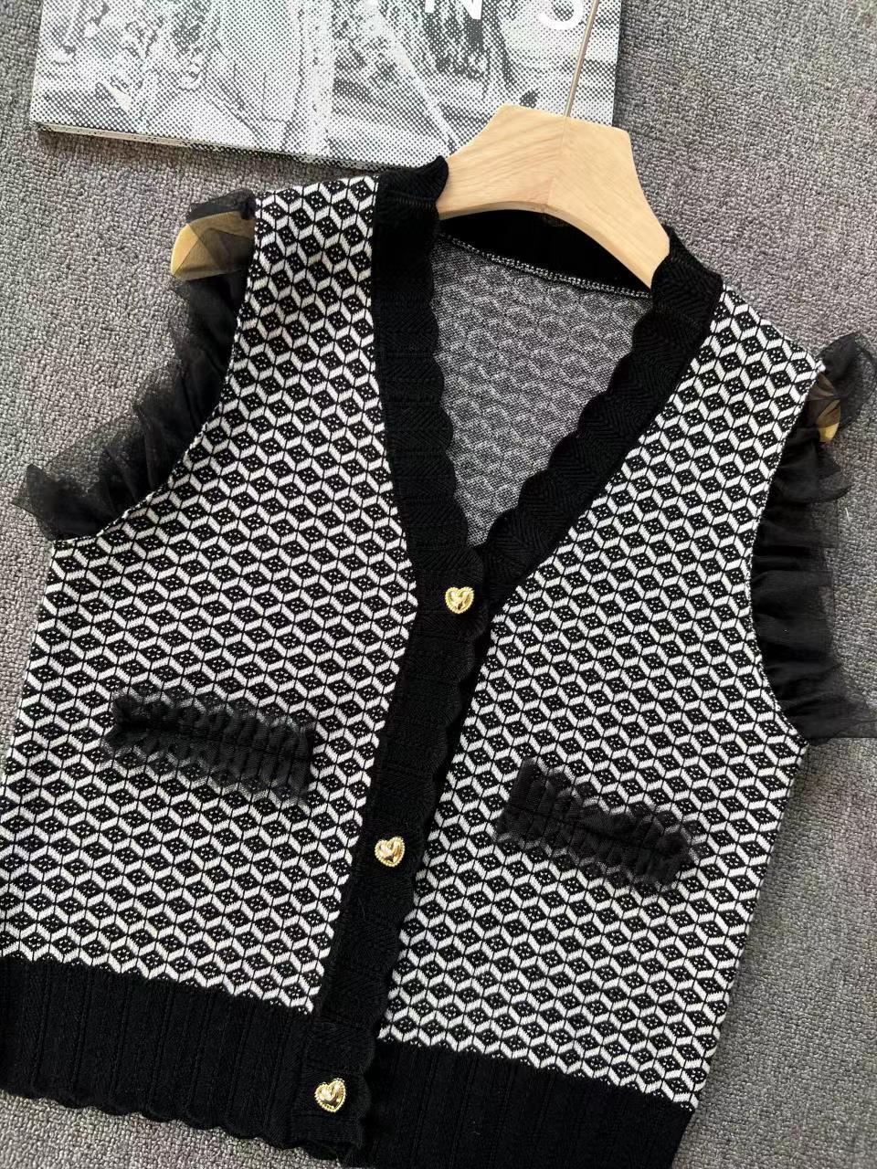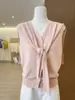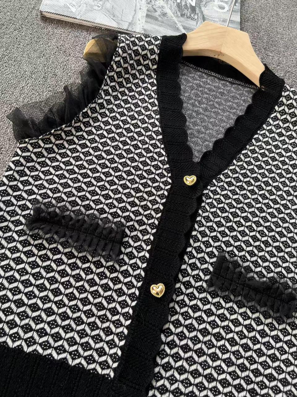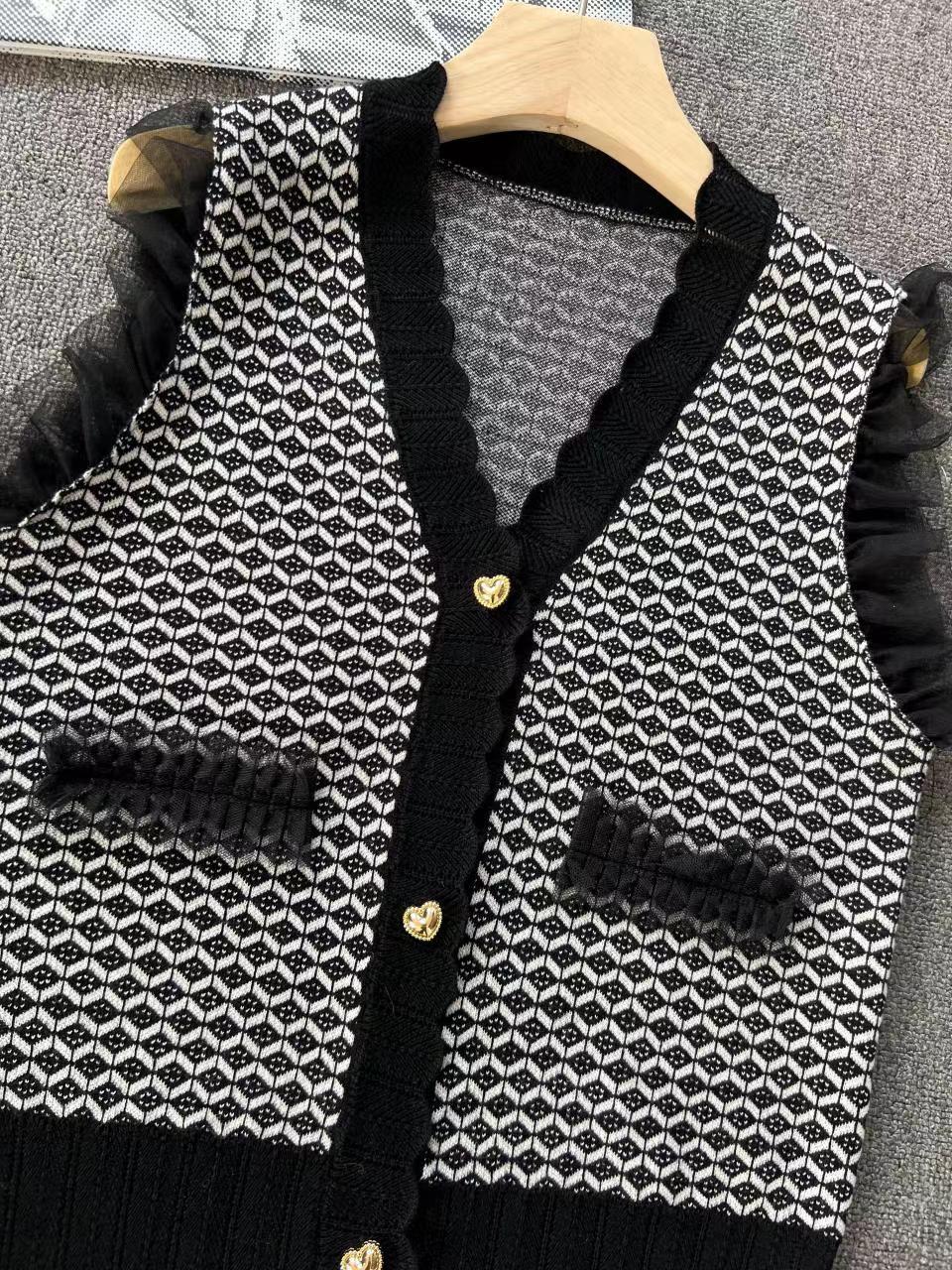 Moda Estilo Europeo 2022 Otoño para Mujer Cuello en V Encaje Rizo Sin Mangas Chaleco Acolchado Tejido Cárdigan