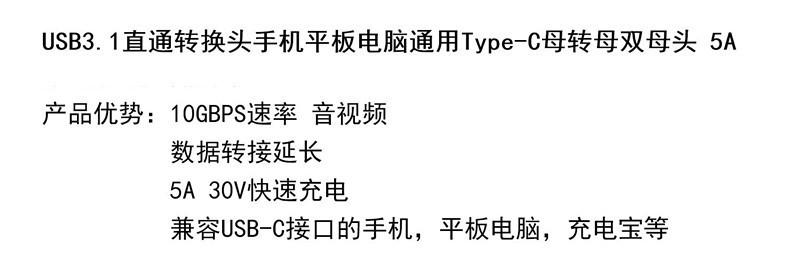 Adaptador hembra a hembra tipo C. Cable de datos USB-C con cabezal de conexión directa tipo C. Adaptador de extensión de carga 3.1.