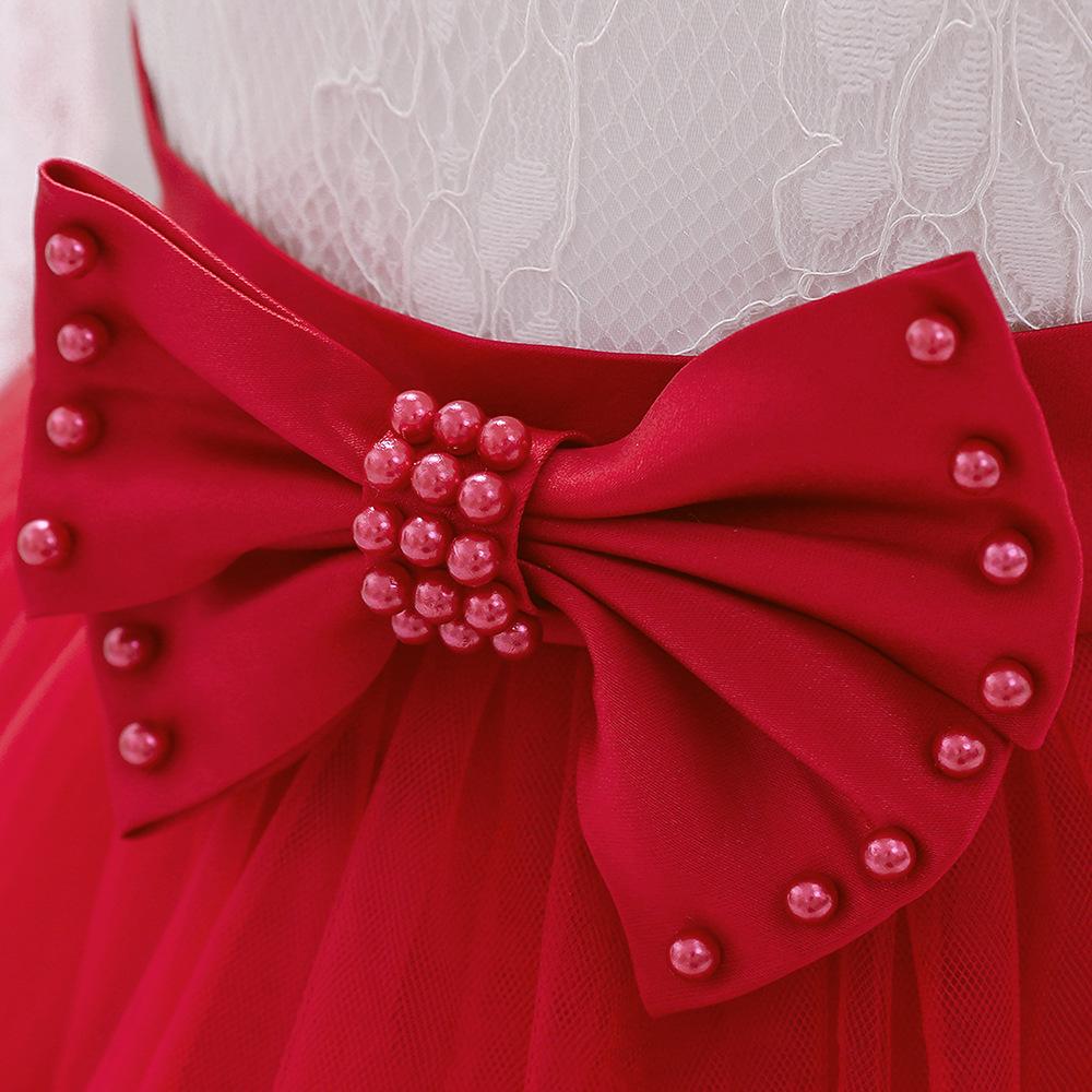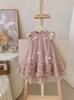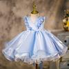 Vestido de niña estilo palacio de nuevo estilo, vestido de princesa con mangas abullonadas y lazo para bebé europeo y americano, disfraz de actuación para bebé de un año