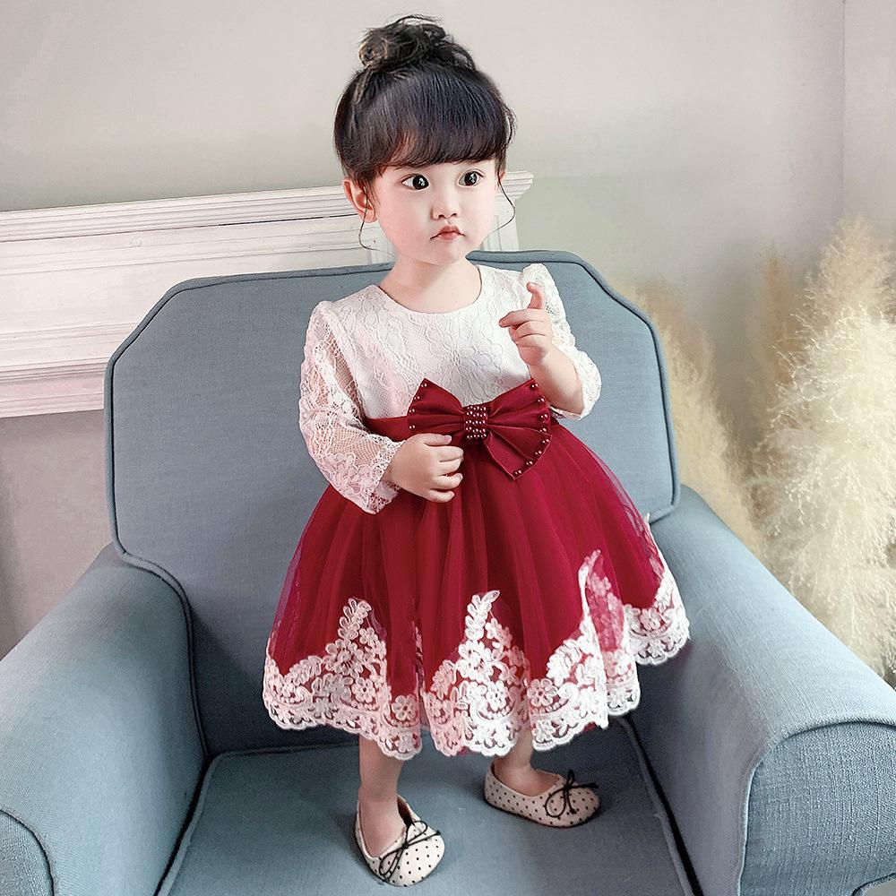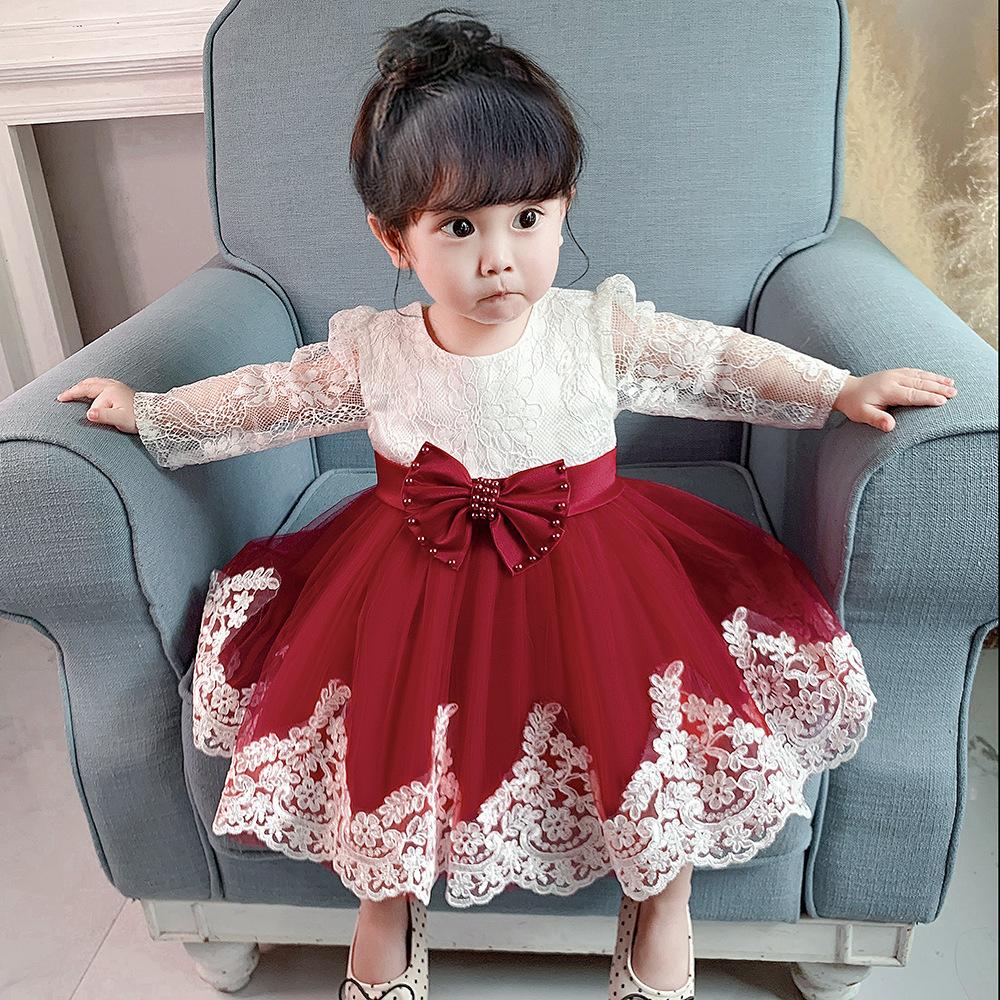 Vestido infantil de Amazon 2021, regalo de primer cumpleaños para bebé, vestido de encaje de manga larga abullonada para bautizo de bebé.? ? ? ? ? ? ? ?