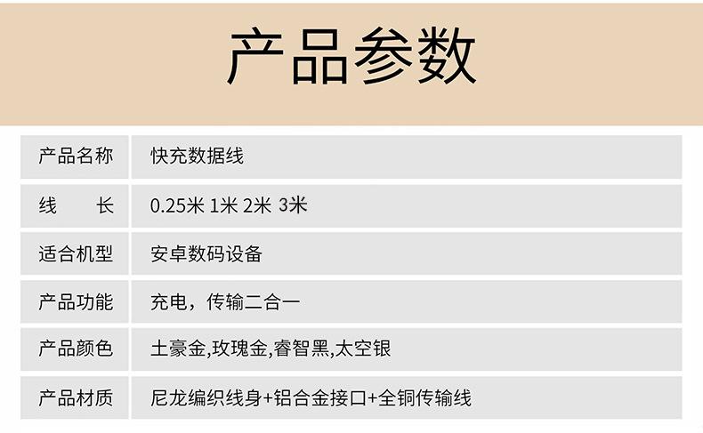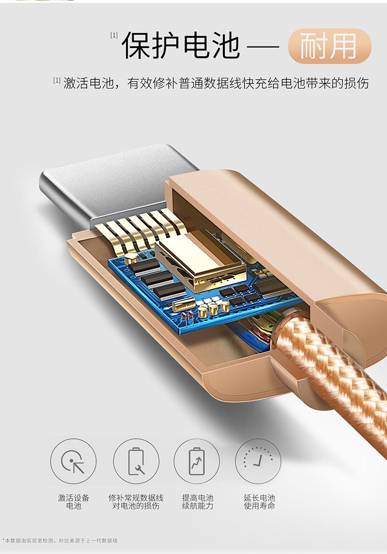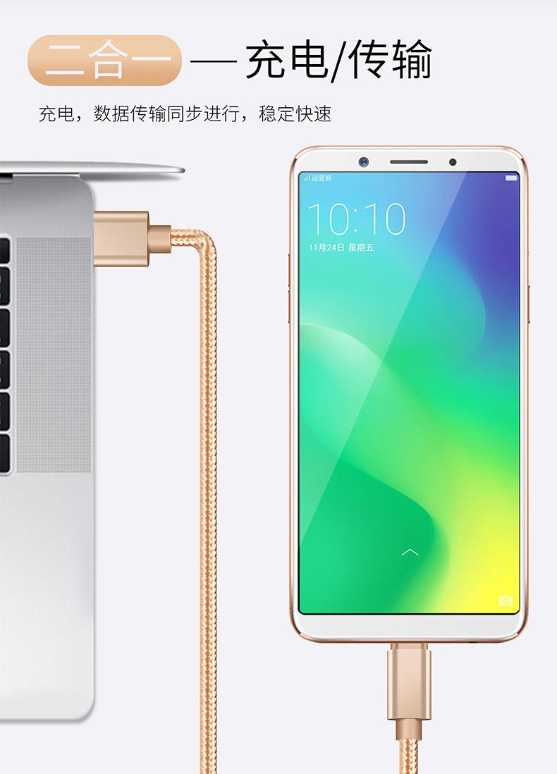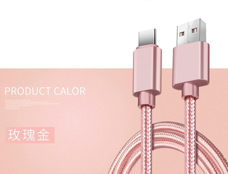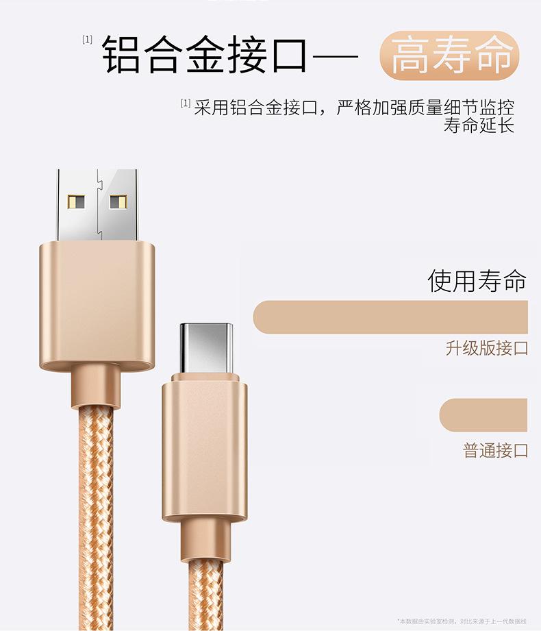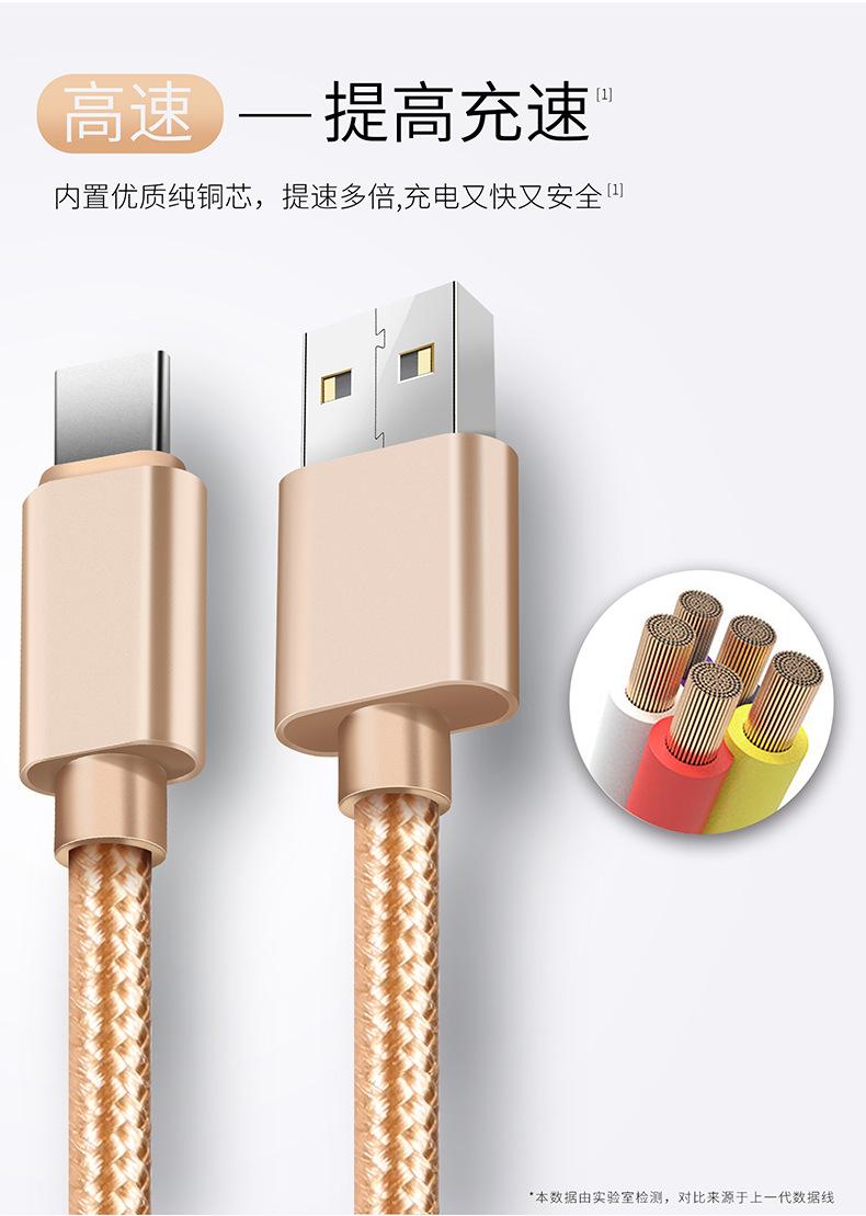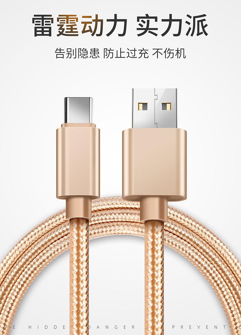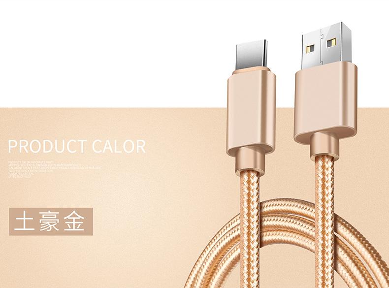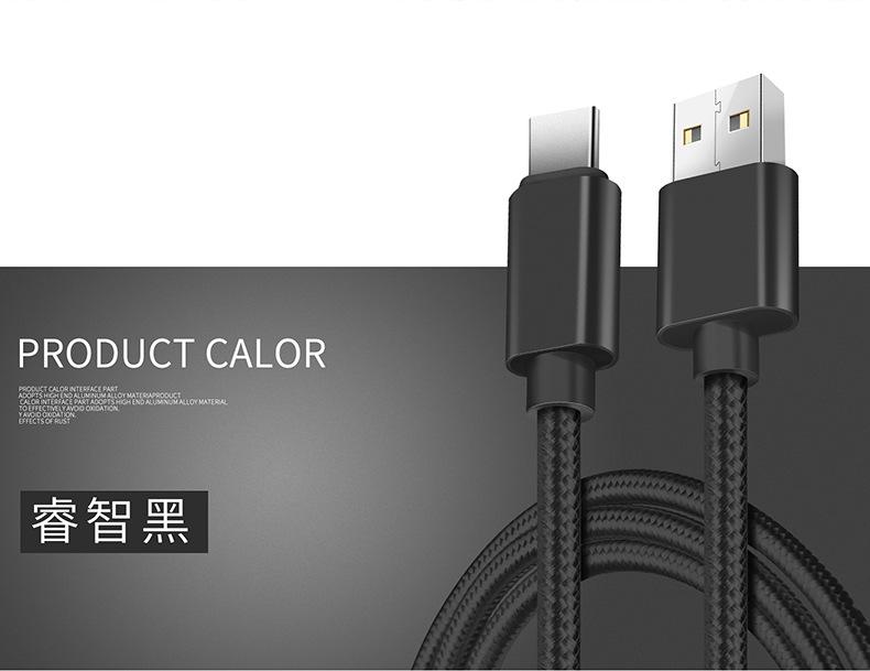 Cable de Datos Tipo C Carga Rápida Cable de Carga Typec Adecuado para Teléfono Móvil Android Huawei Vivo Xiaomi Trenzado Extendido