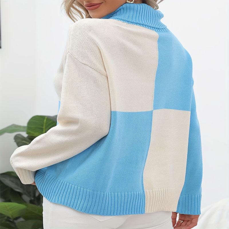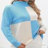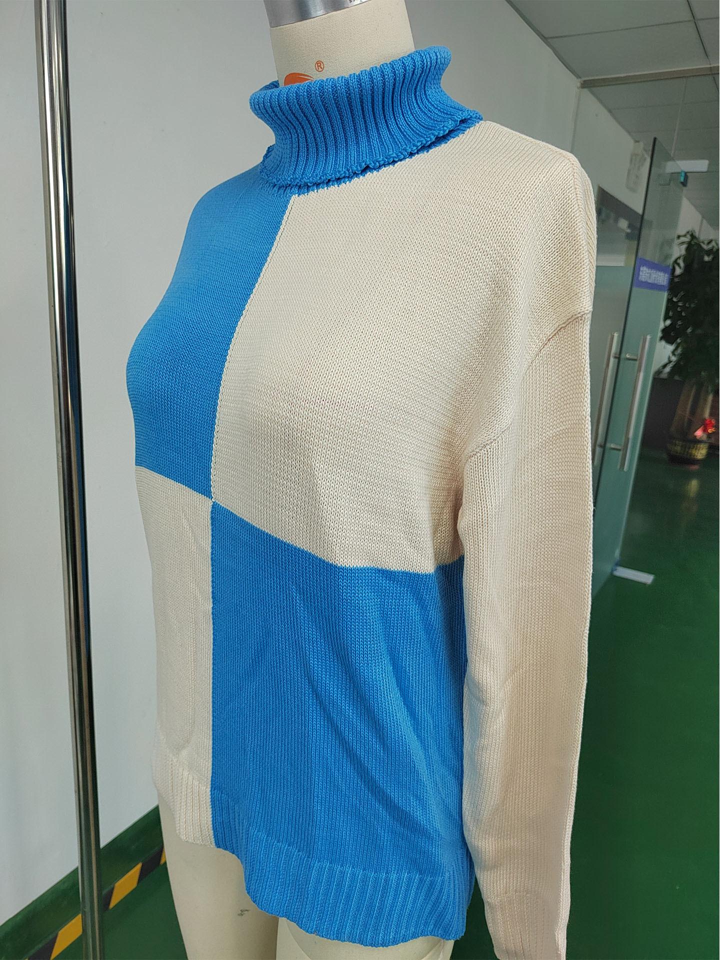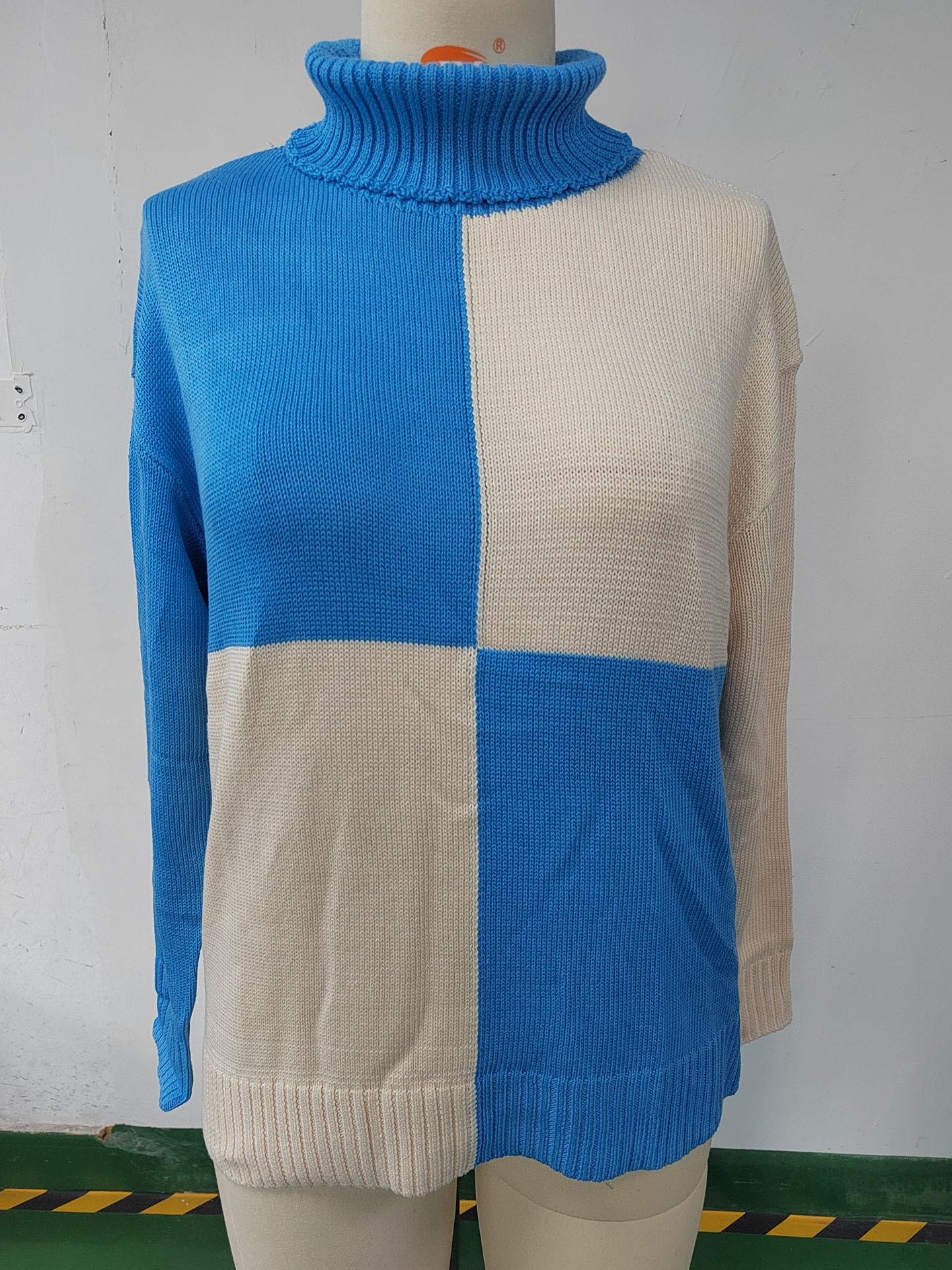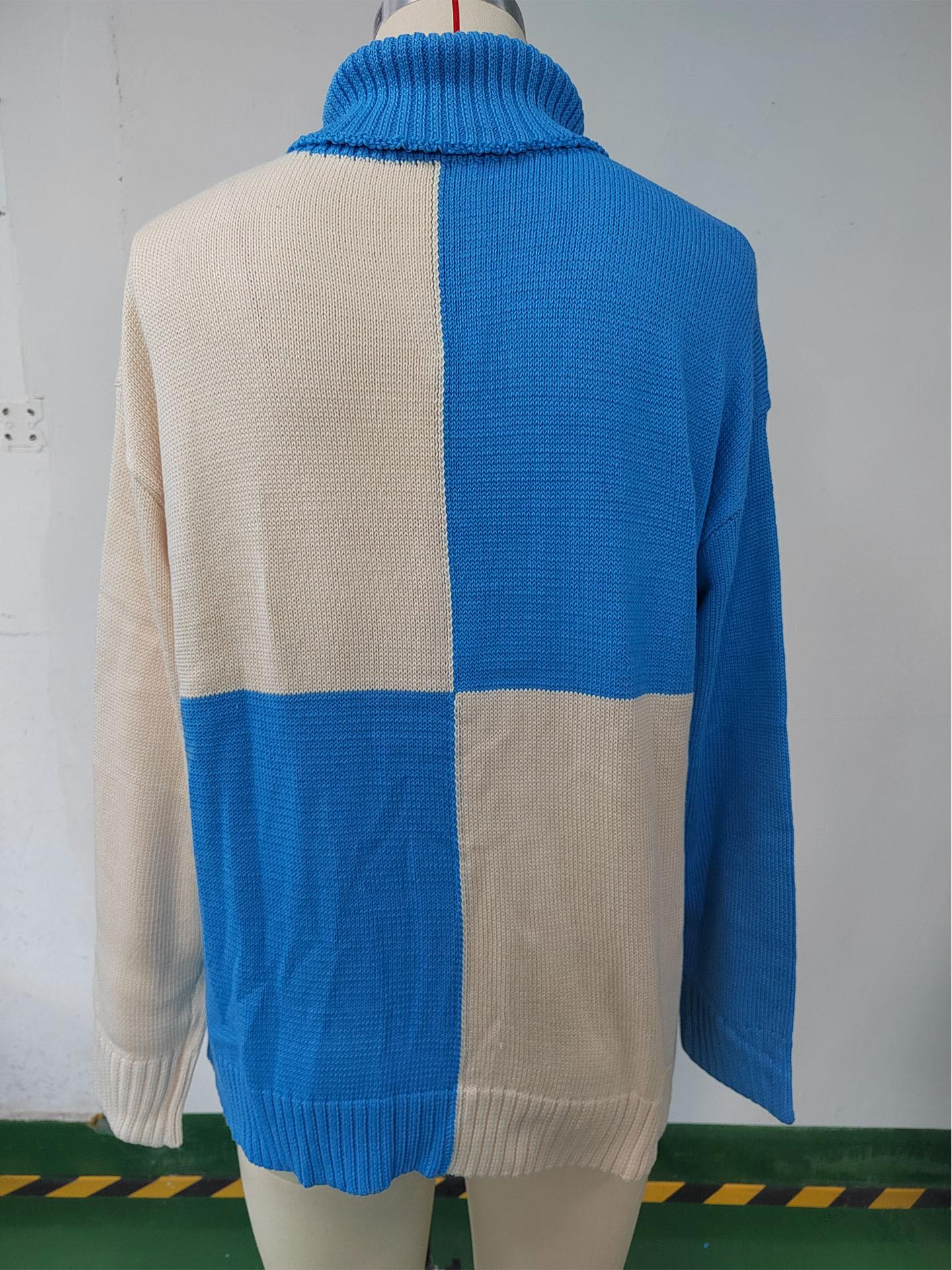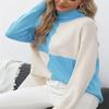 Suéter de Solapa de Color Contrastante Transfronterizo para Mujer Otoño e Invierno Holgado Ropa Exterior Suéter de Moda en Stock
