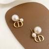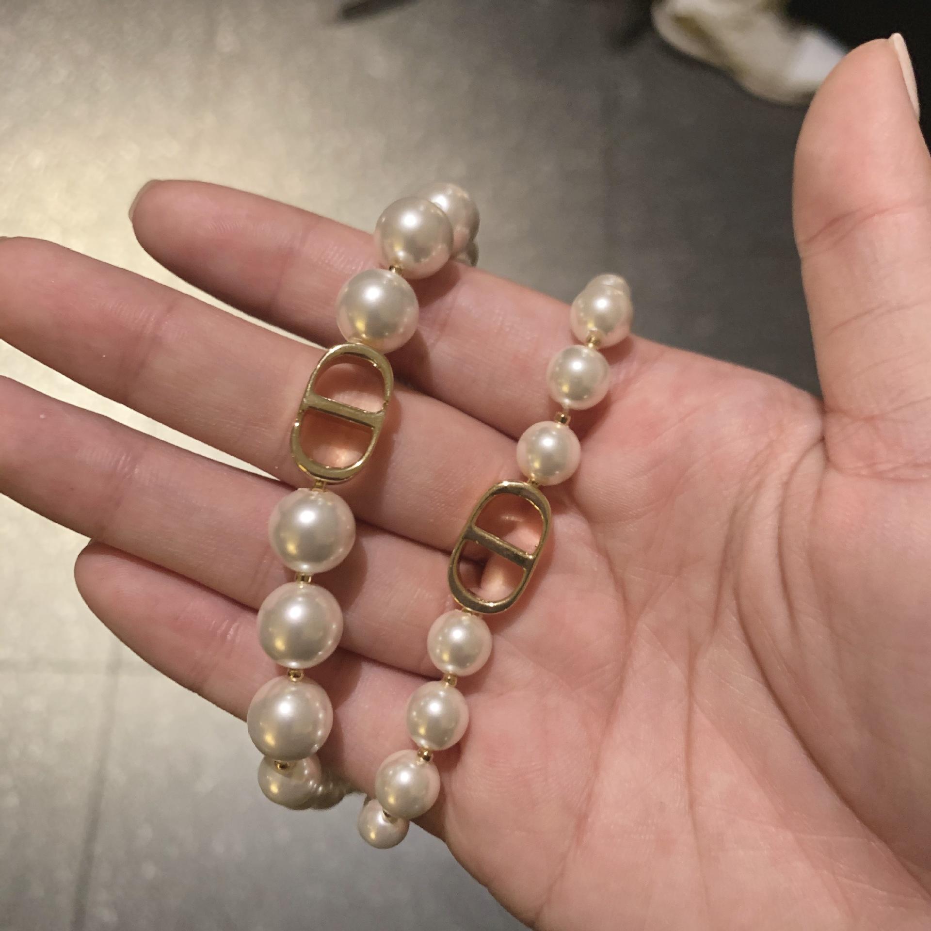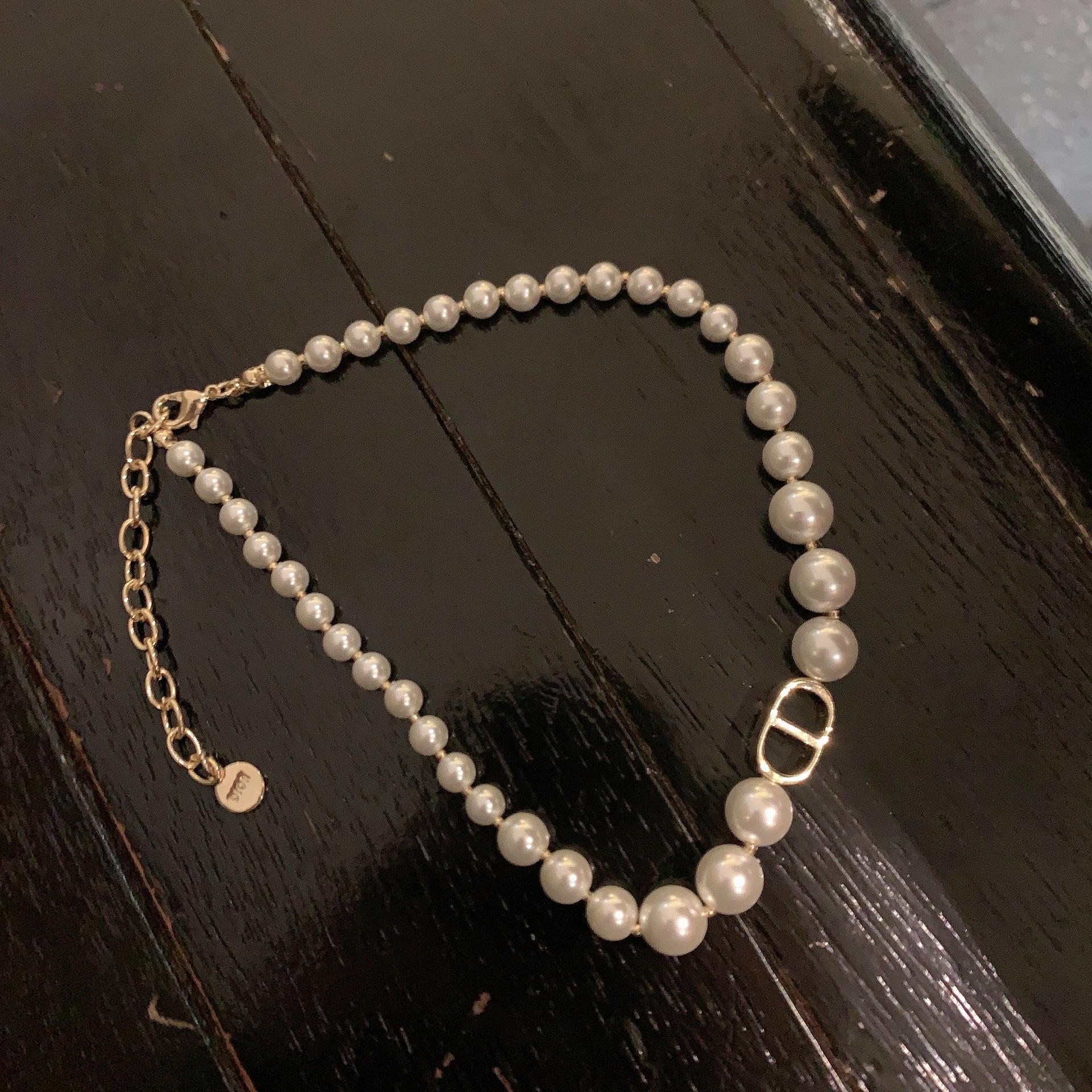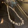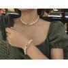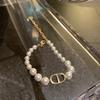 Collar de perlas retro de nicho con letras, cadena de clavícula sencilla, temperamento, pulsera a juego con trémolo y baño de oro real para mujer