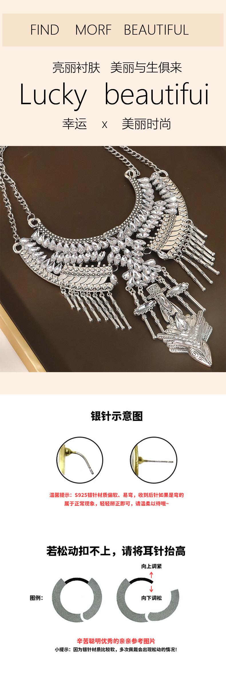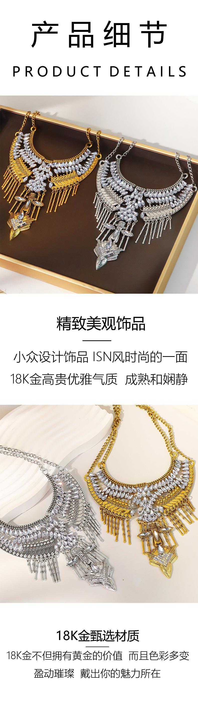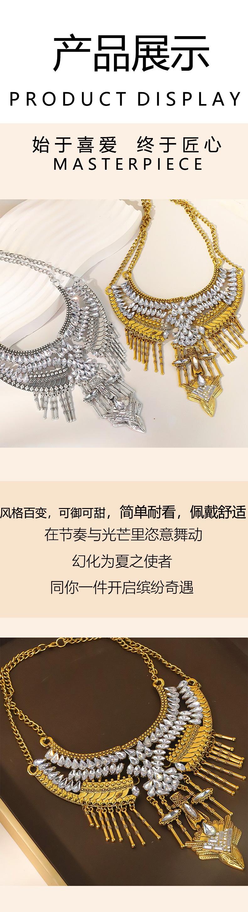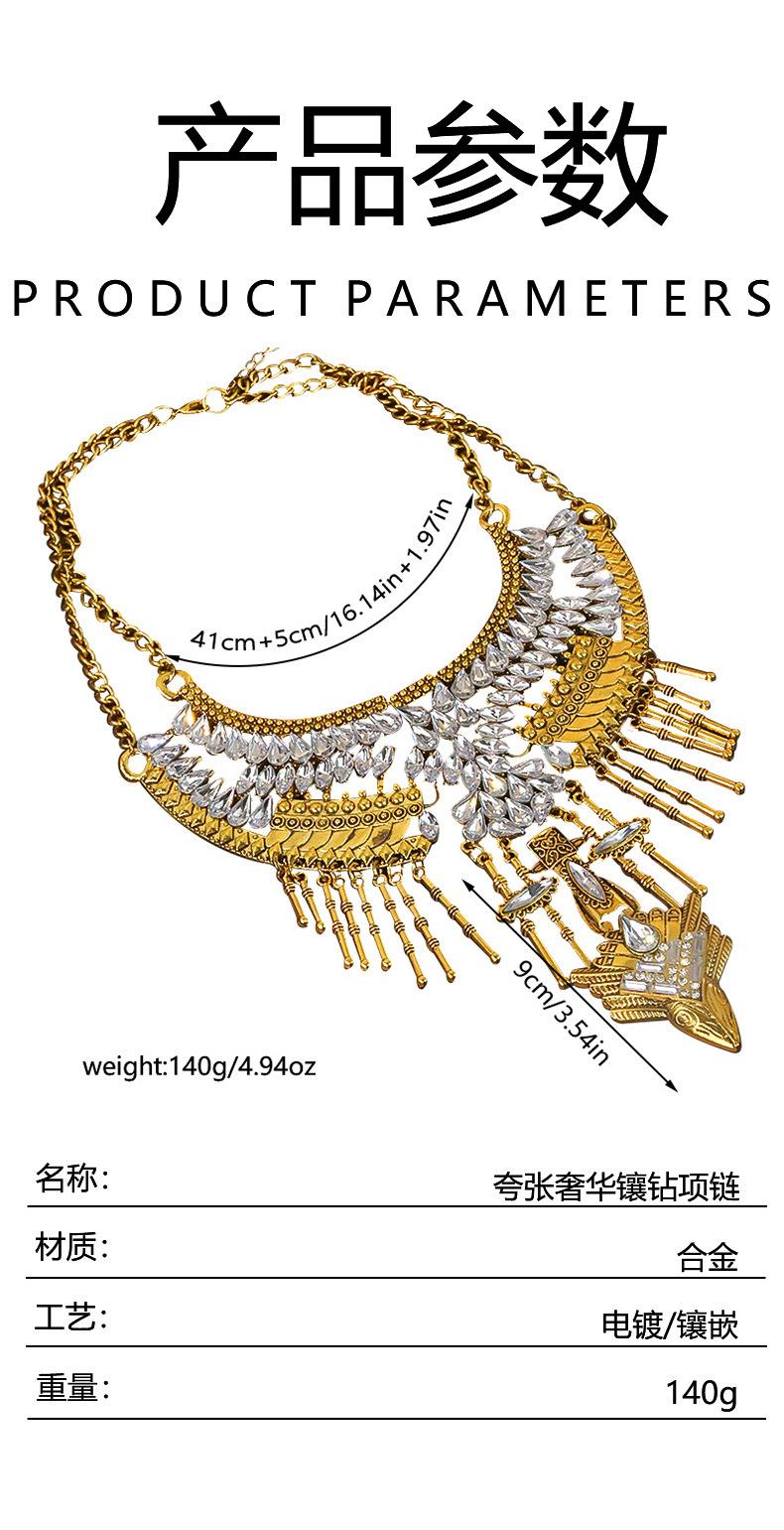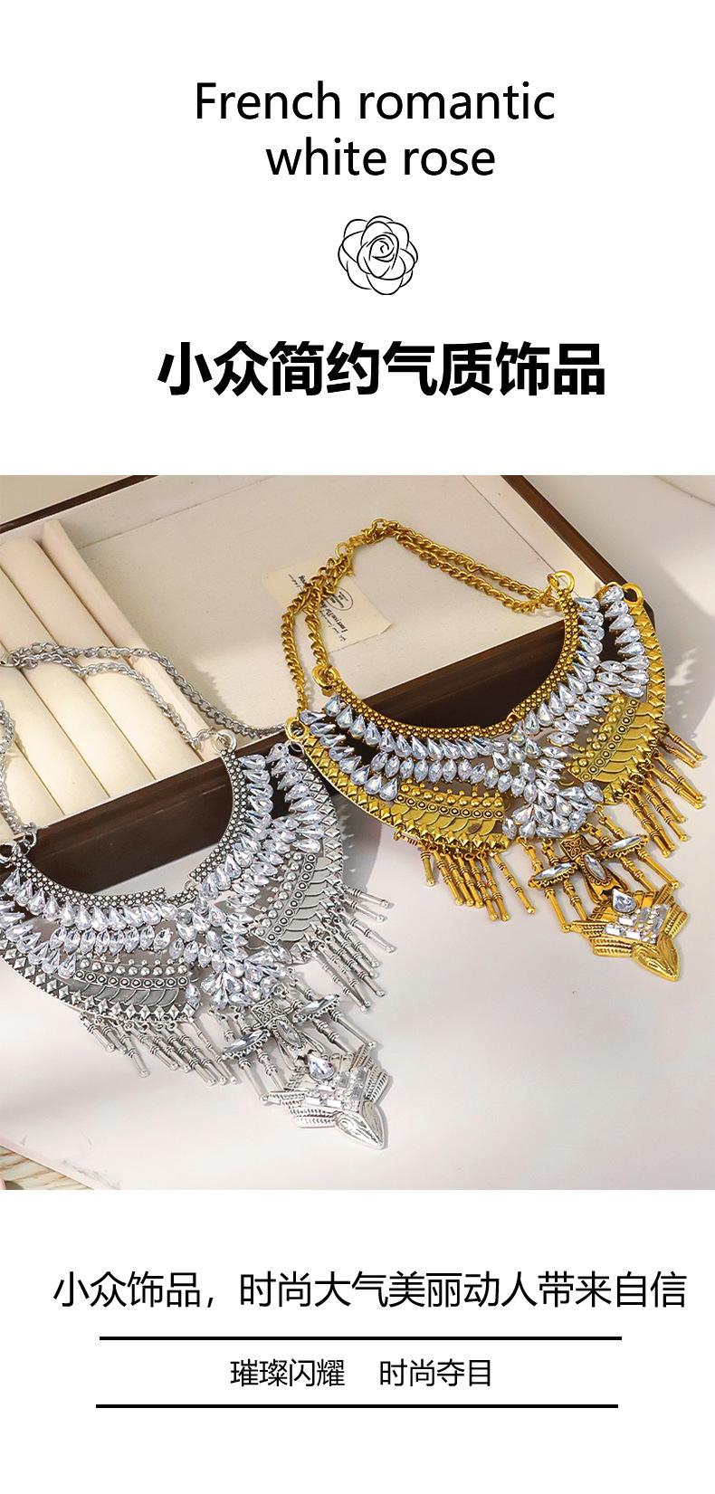 Collar retro bohemio transfronterizo europeo y americano, tendencia de personalidad de moda femenina, temperamento exagerado, cadena de clavícula con borla de diamantes