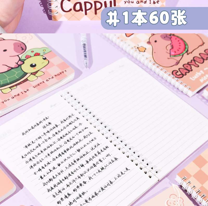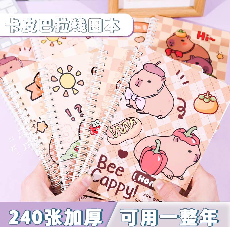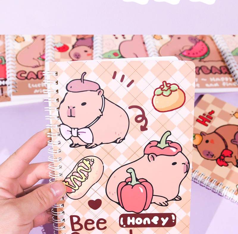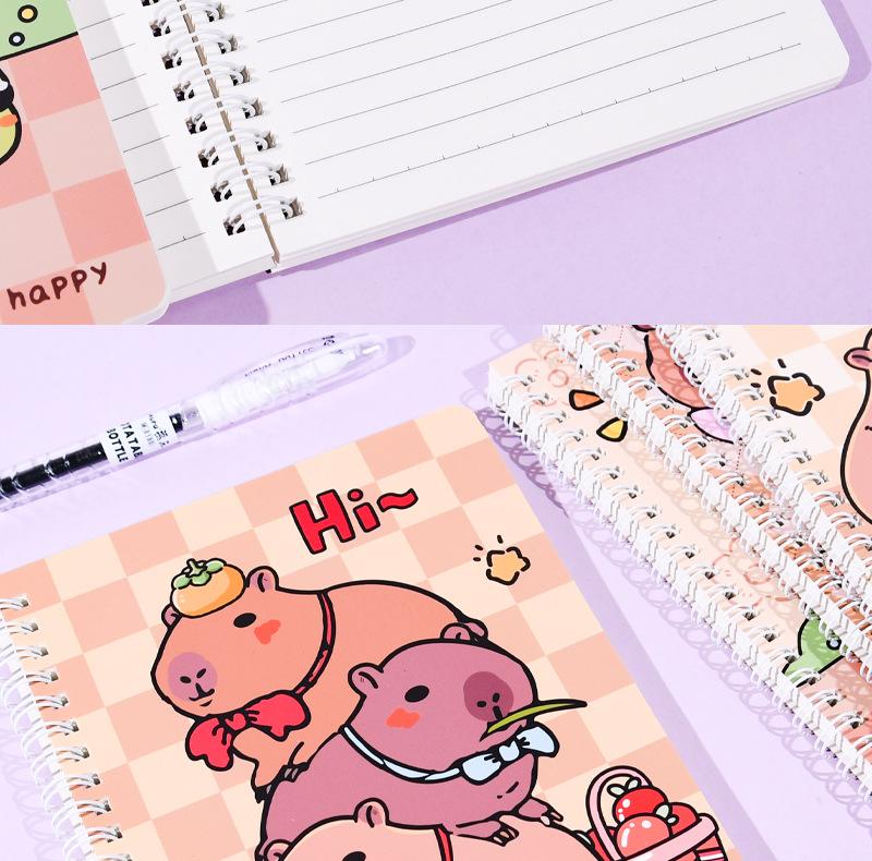 Nuevo cuaderno espiral Kapibala A5 con dibujos animados de colores vivos y bonito para estudiantes, cuaderno especial para tareas de aprendizaje.