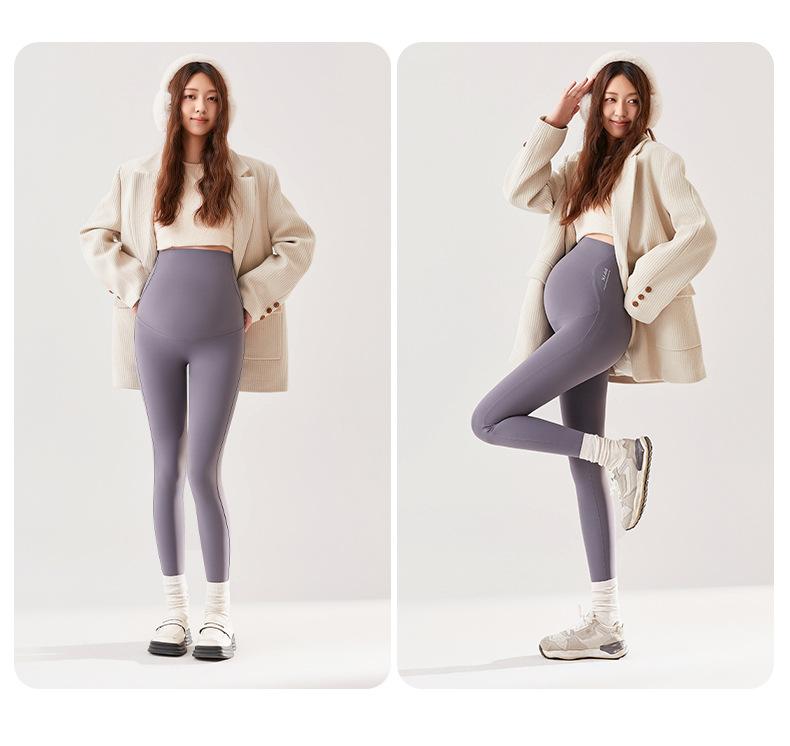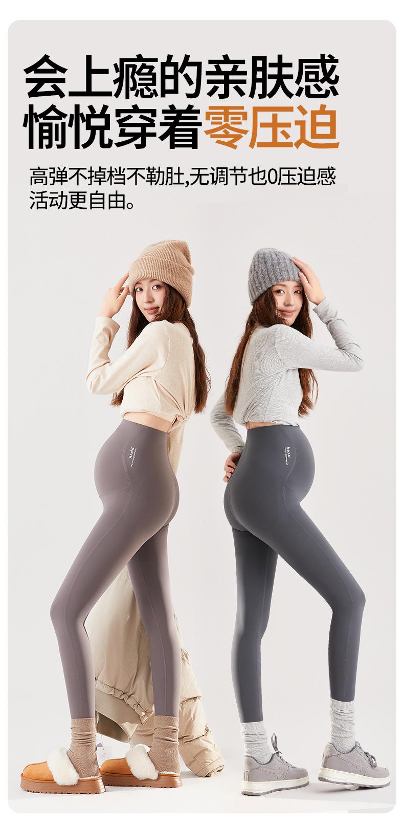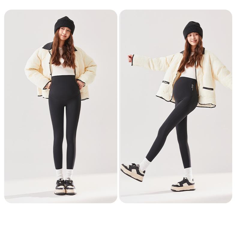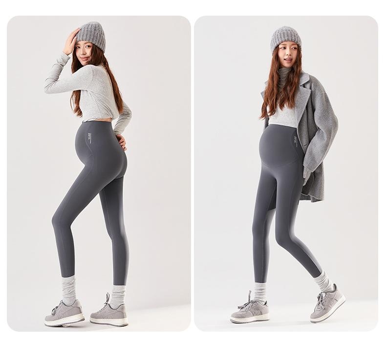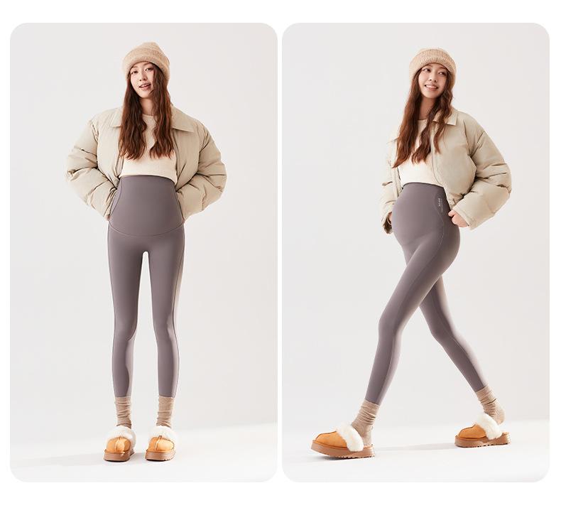 Ropa para embarazadas Otoño e invierno Nuevos pantalones para embarazadas Sin lana con forro polar Finales de otoño y principios de primavera Leggings elásticos de nueve puntos para embarazadas