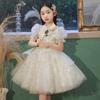 Vestido Infantil Dama de Honor Vestido de Princesa Niñas Cumpleaños Azul de Alta Gama Anfitrión Traje de Actuación de Piano a la Moda