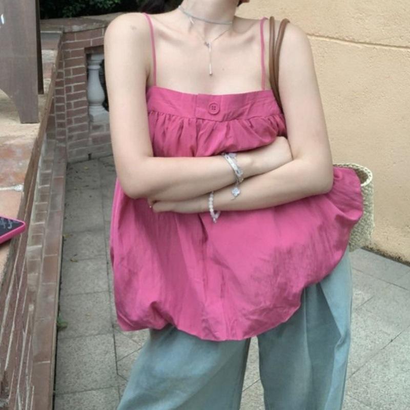 Moda de Verano Nuevo Top Tubo Suelto para Mujer Francés Dulce Diseño Nicho Camisola sin Mangas Trendy