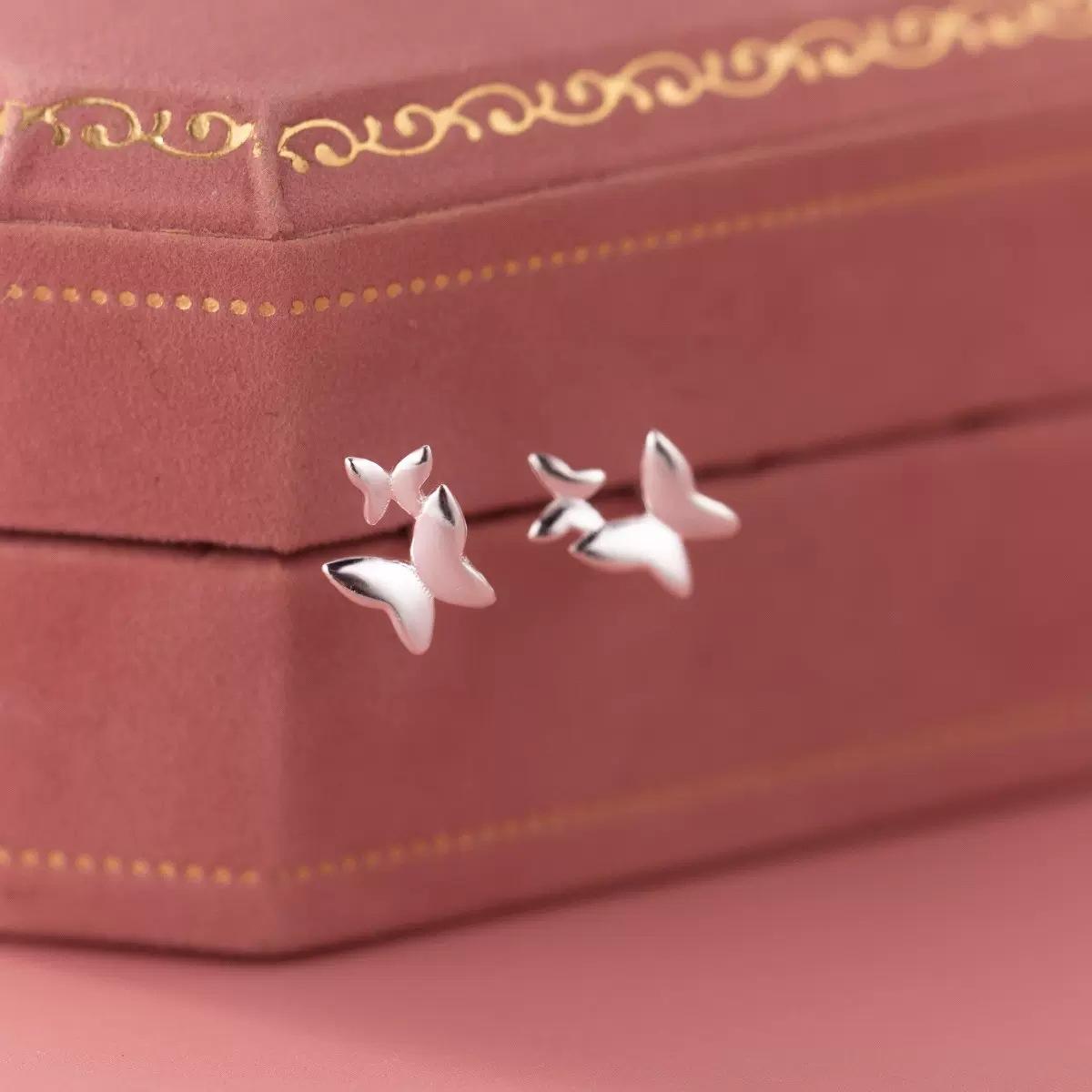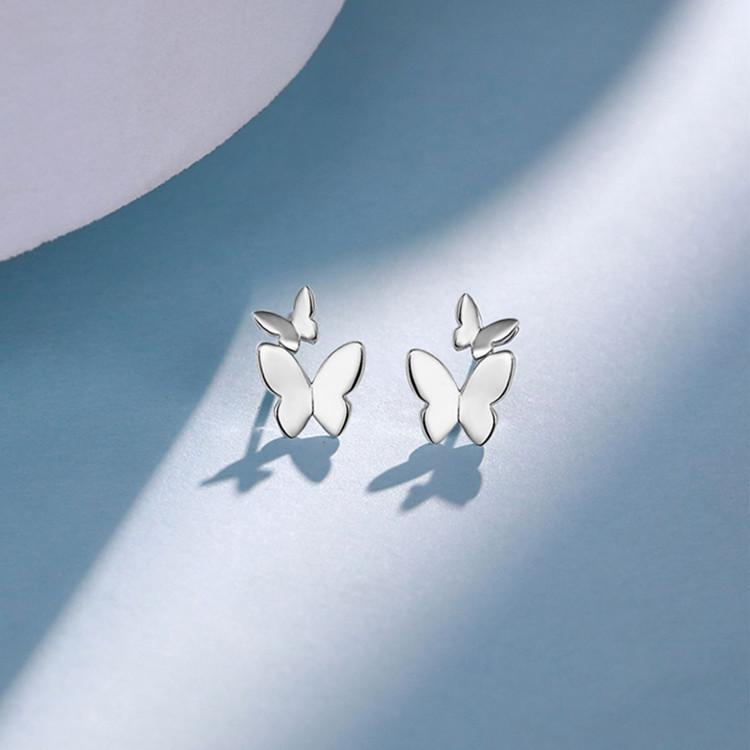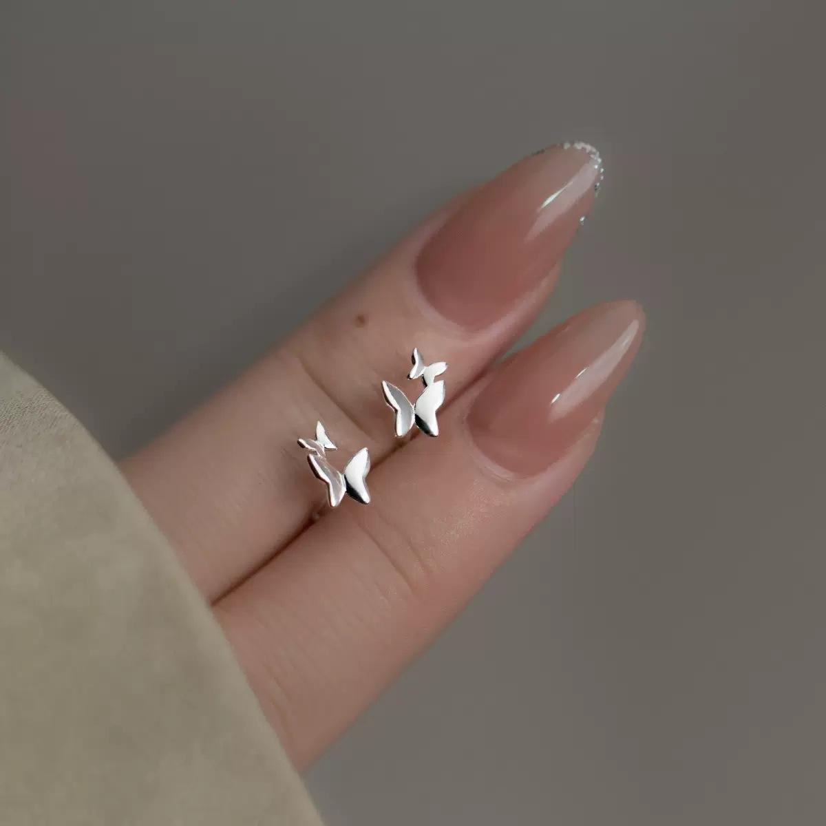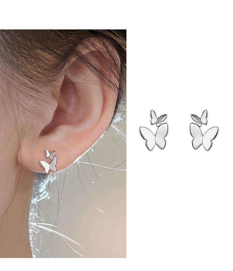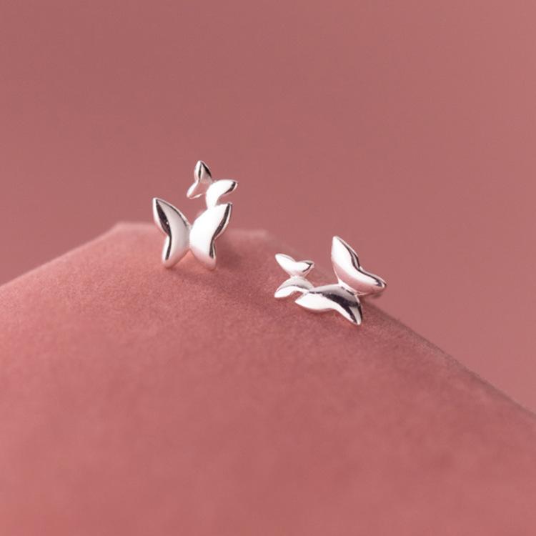 Pendientes de plata pura S925 con doble mariposa, diseño de nicho de temperamento dulce para mujer, pendientes de perforación de oreja de alta sensibilidad con forma de hueso de oreja