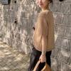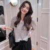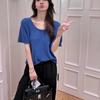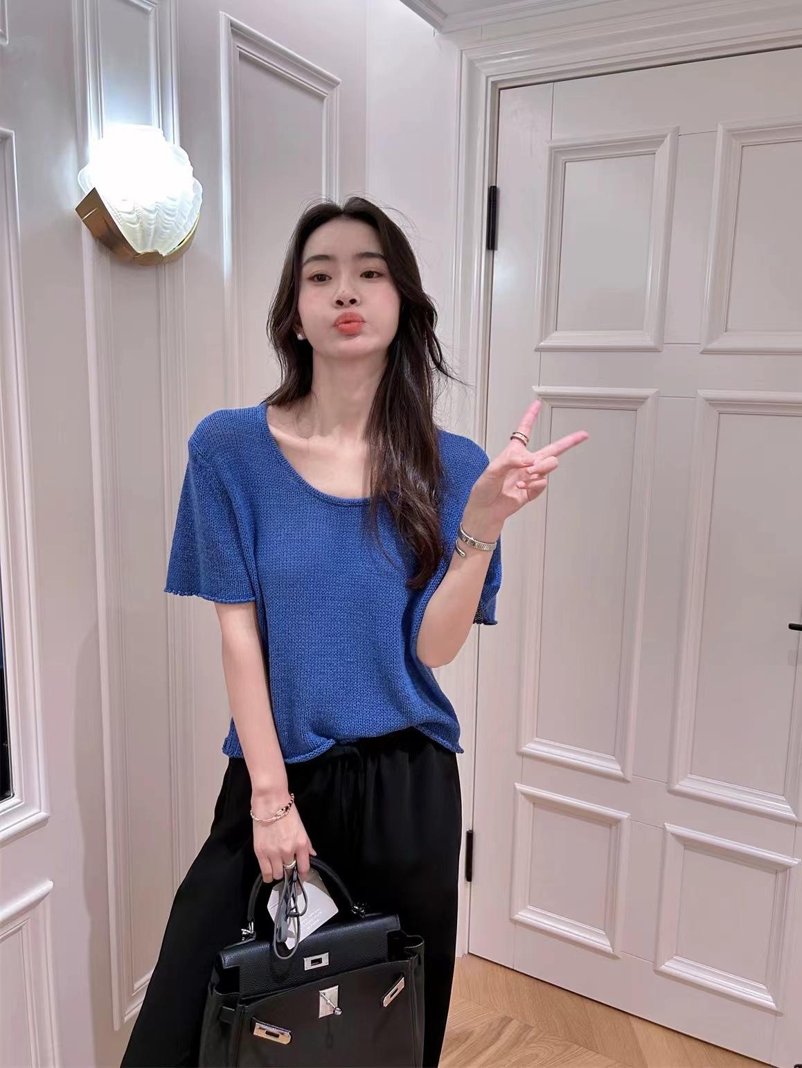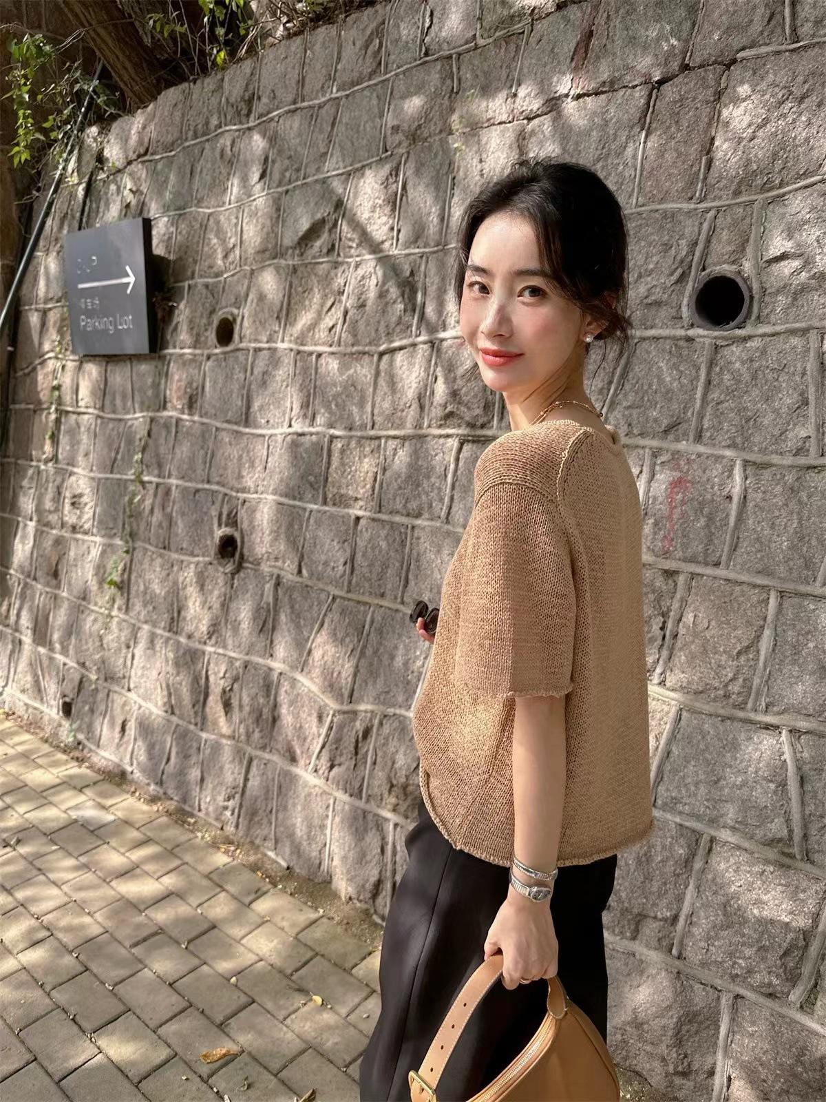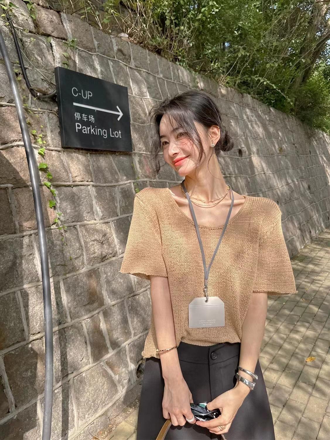 Blusa casual de manga corta para mujer con diseño de hilo de cinturón de verano, sentido del diseño, holgada, de malla calada transpirable, punto, camiseta