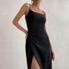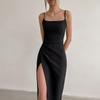 2023 Nuevo Estilo de Verano Europeo y Americano Cuello Cuadrado Sin Mangas Vestido de Tirantes Delgado Falda Larga Adelgazante Abertura Alta Vestido Negro