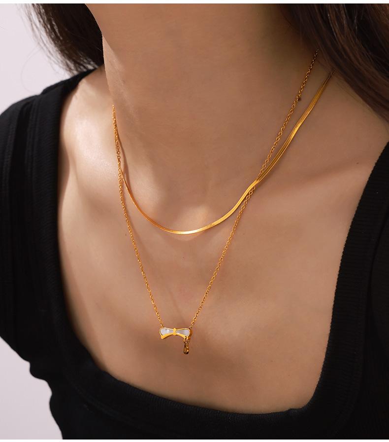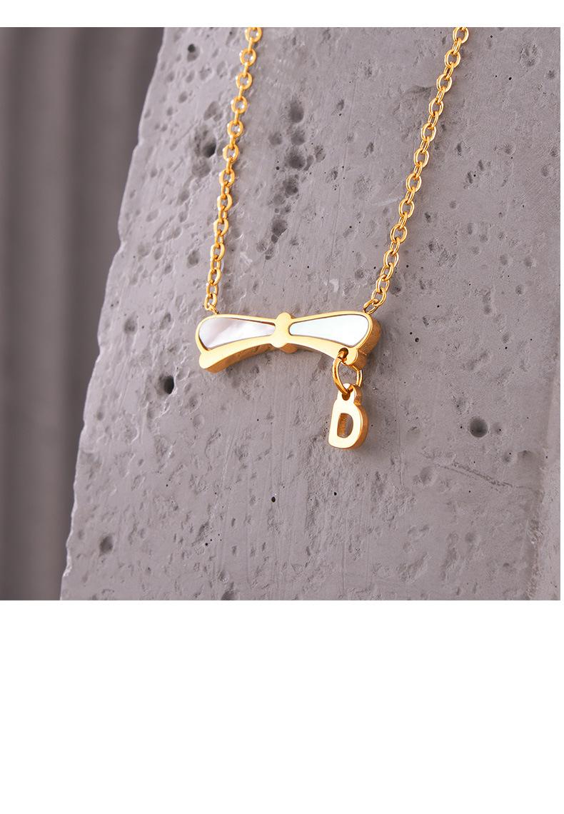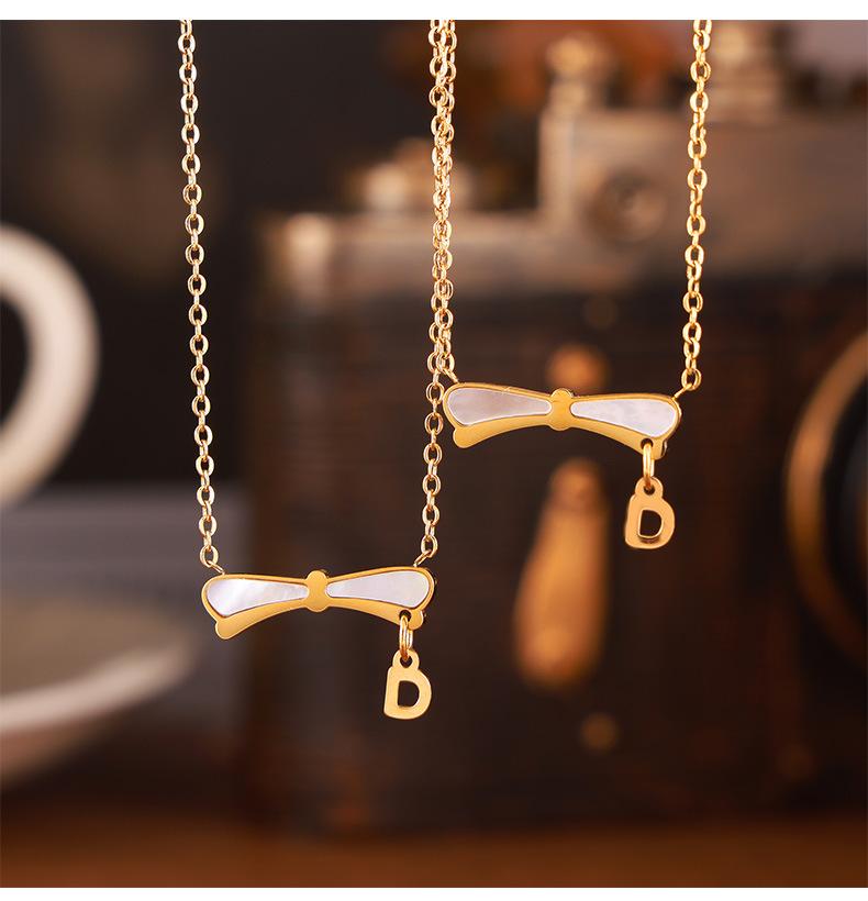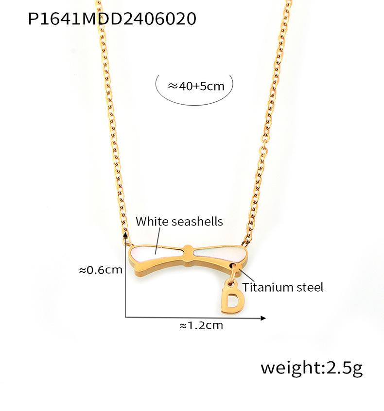 Collar con colgante de concha blanca con incrustaciones de letras de lazo personalizado de gran venta transfronteriza, cadena de clavícula de temperamento, collar de acero de titanio chapado en oro