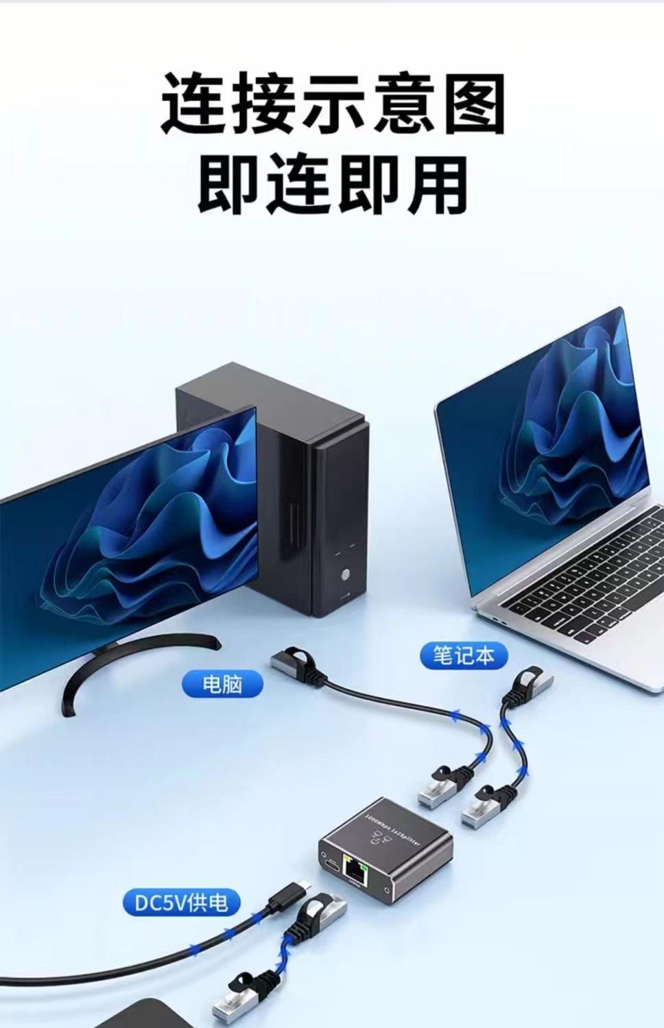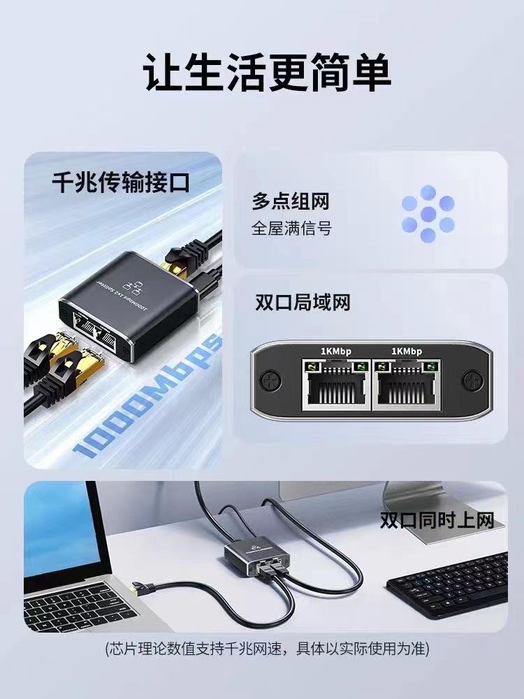 Distribuidor de red Gigabit 1 punto 2 conector RJ45 Distribuidor de red Gigabit 1 punto 2 1 entrada 2 salida Acceso a Internet