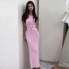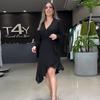 Otoño 2024 Nuevo Europeo y Americano Amazon Transfronterizo para Mujer Color Sólido Estilo Ligeramente Maduro Cuello en V Lazada en la Cintura Falda Irregular