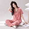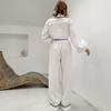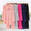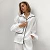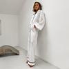 Pijama de dos piezas para mujer, de verano 2024, de algodón y lino blanco, con manga larga y pantalón, holgado, informal y cómodo, para el hogar.