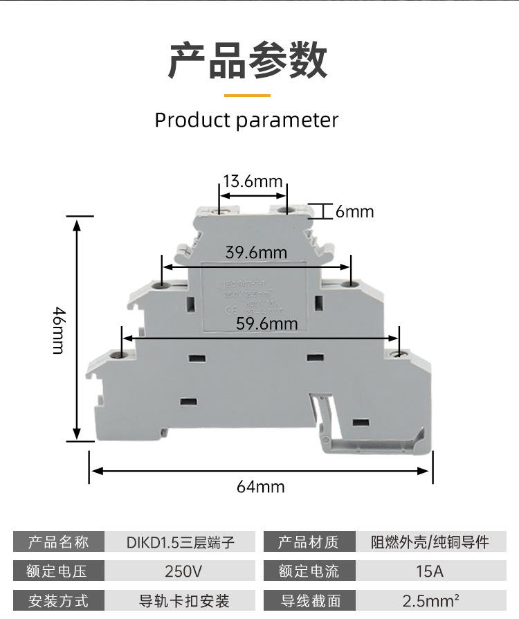 Compra Bloque de terminales de sensor de riel cuadrado de tres capas DIKD1.5 de 0,2-2,5 mm, de latón retardante de llama al por mayor en Joom.pro