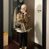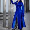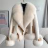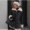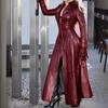 2023 Otoño e Invierno Wish Europeo y Americano Color Puro Solapa Cuello de Piel Larga Elegante Commuter Chaqueta con Cremallera Chaqueta de Cuero PU para Mujer W162
