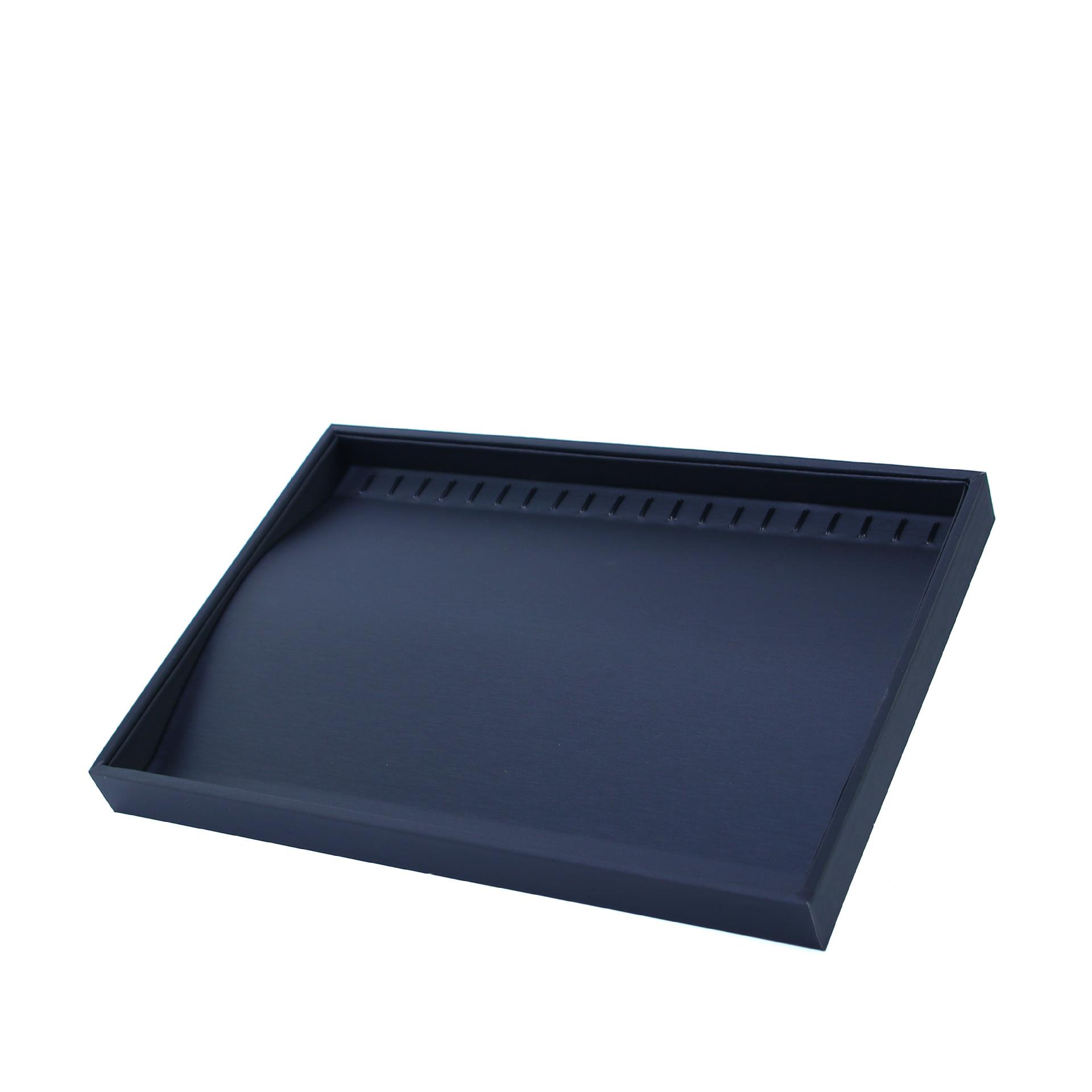 Bandeja para exhibir joyas, de cuero negro cepillado, para guardar collares, anillos y pulseras.
