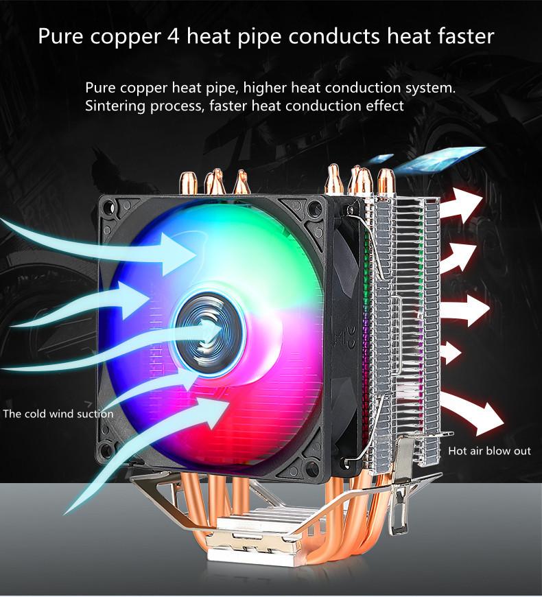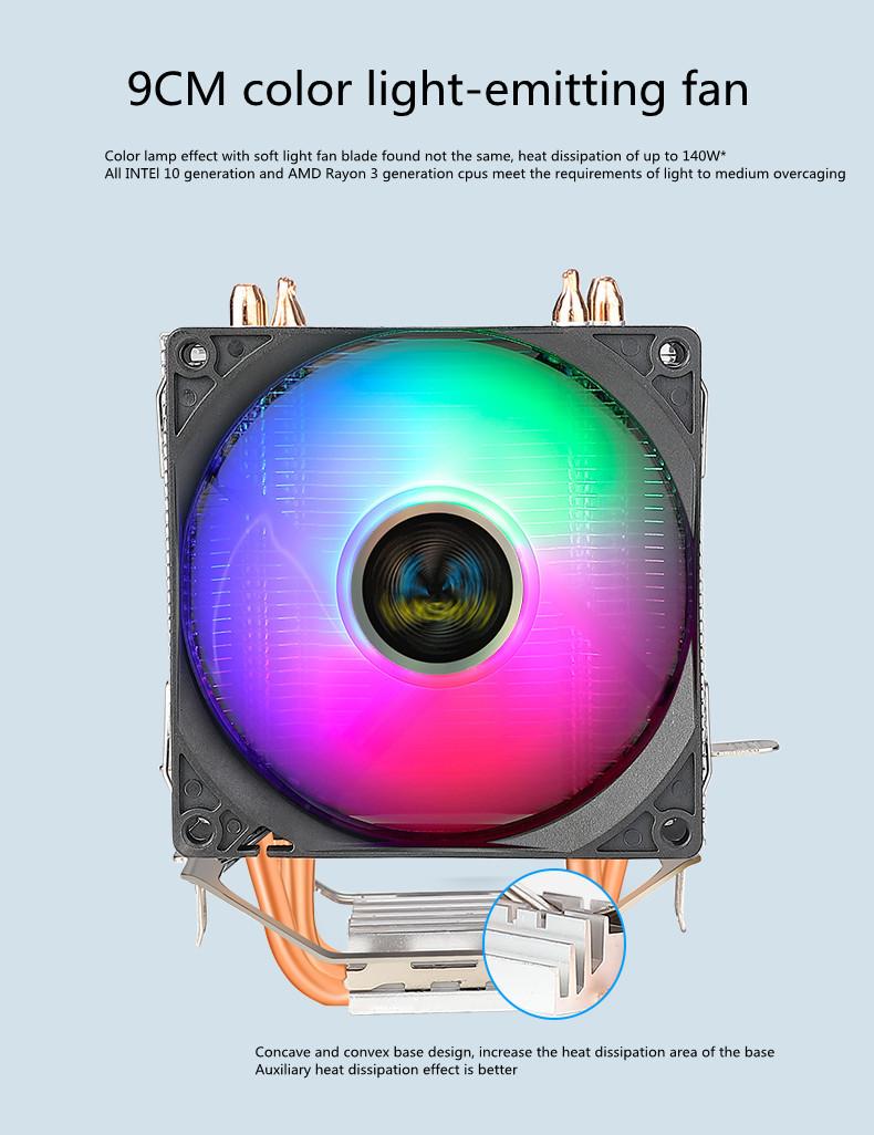 Suministro directo de fábrica de AE ICE Blade 300 con radiador de CPU de 4 tubos de cobre ligero, ventilador de CPU de escritorio ultra silencioso