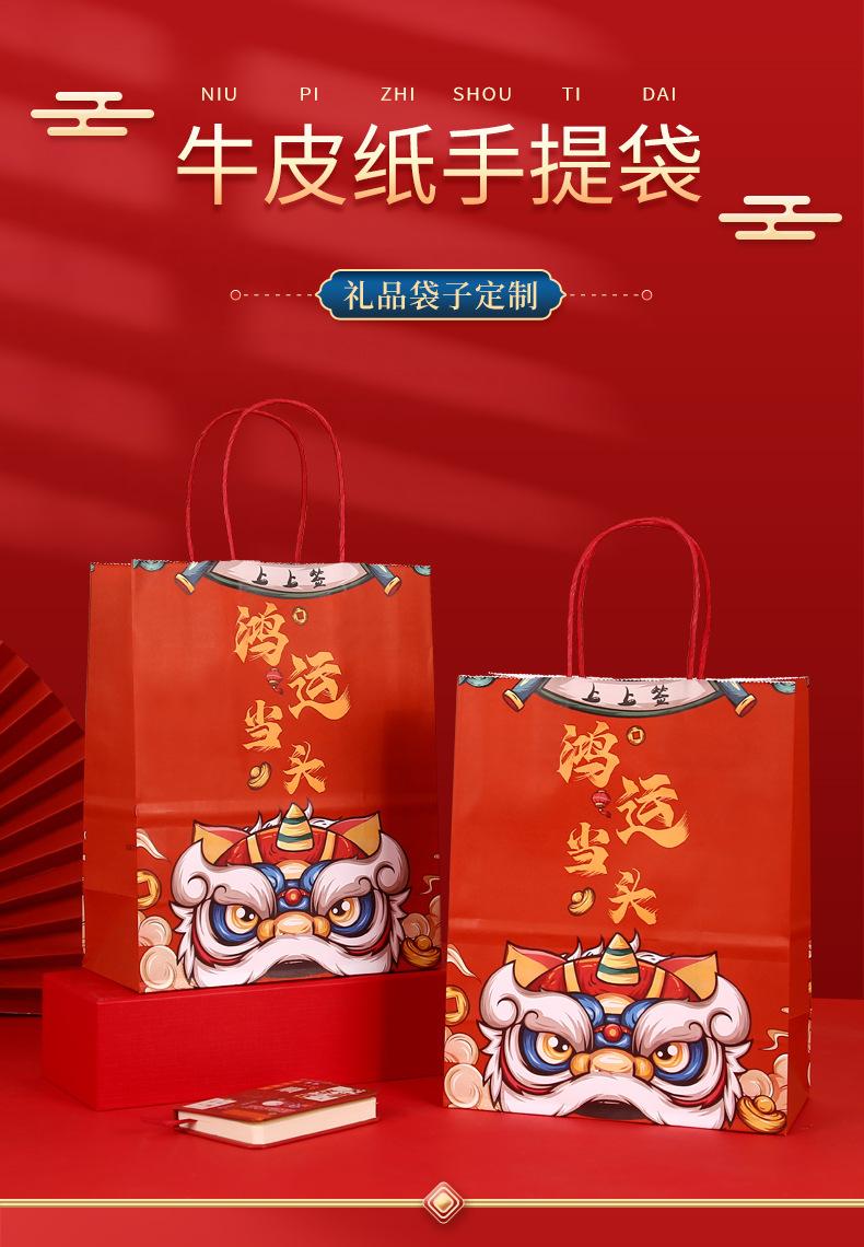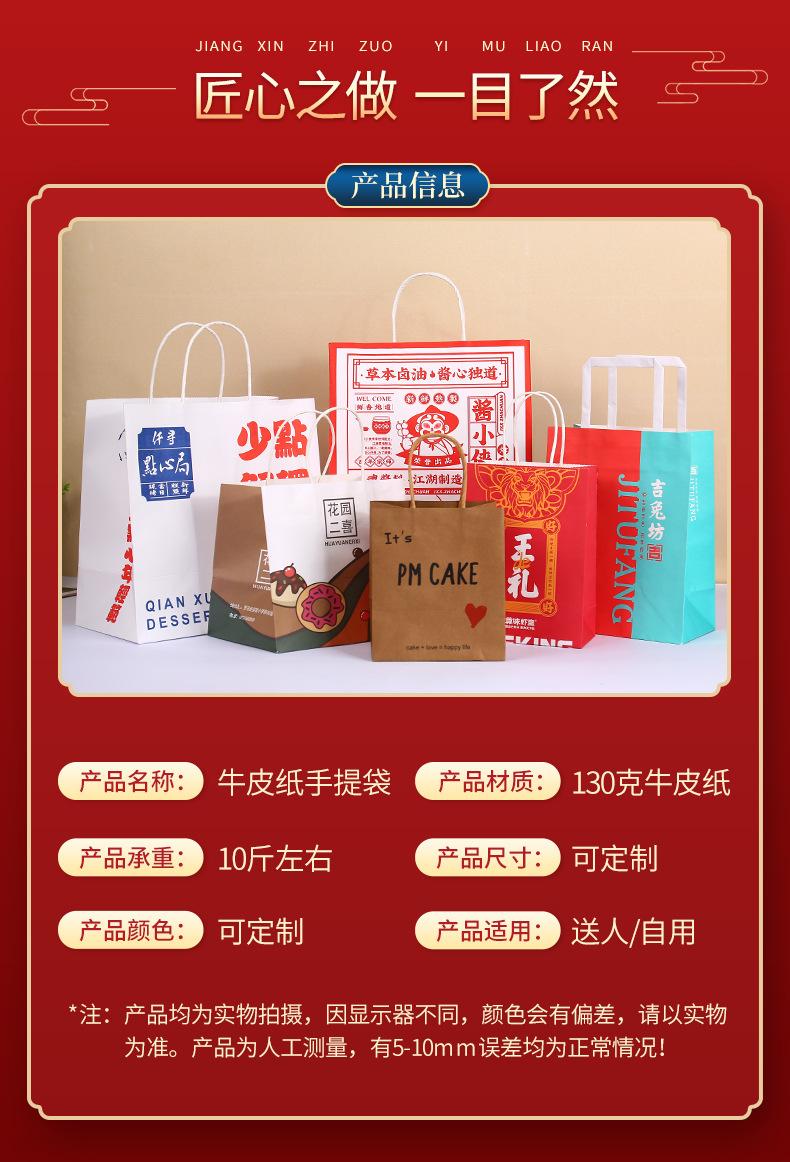 Bolsa de Papel Kraft de Celebridad de Internet Bolso de Mano Logo Impreso Bolsa de Regalo Bolso de Mano Pequeño Rojo Bolsa de Embalaje para Horneado Venta al por Mayor