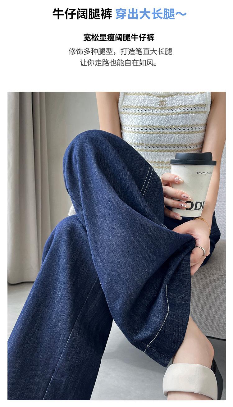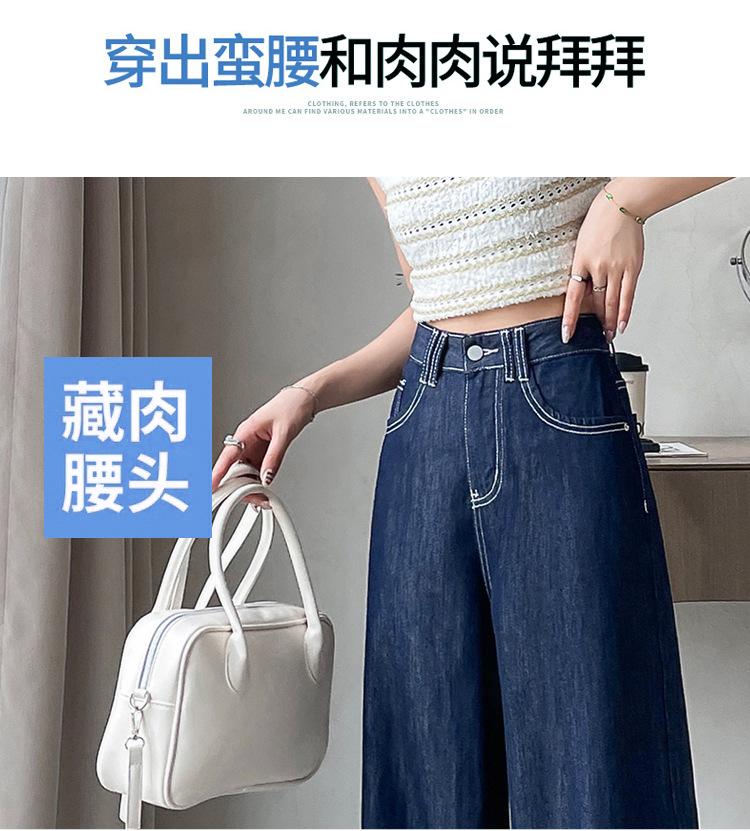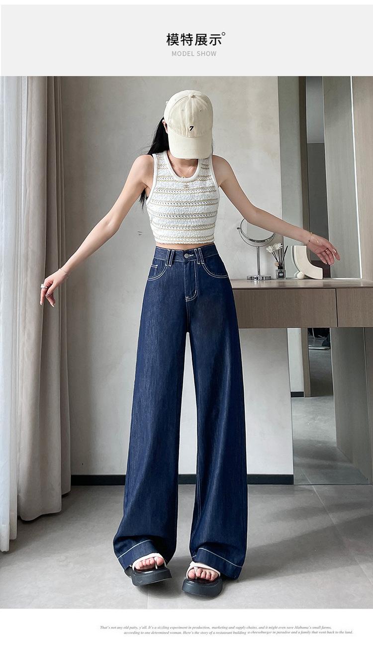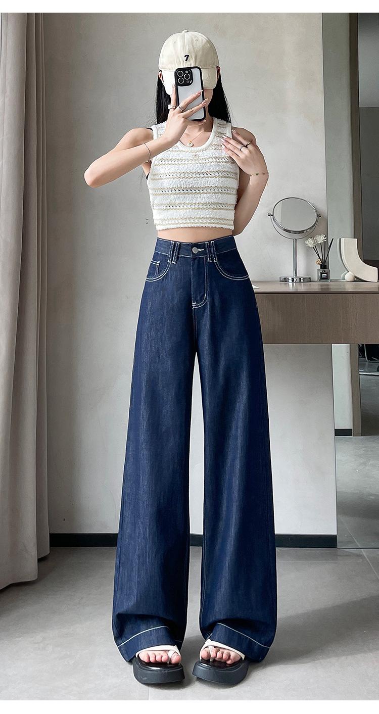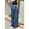 Vaqueros de pierna ancha de Tencel para mujer, pantalones rectos azules de tanino holgados y a la moda de verano 2024.