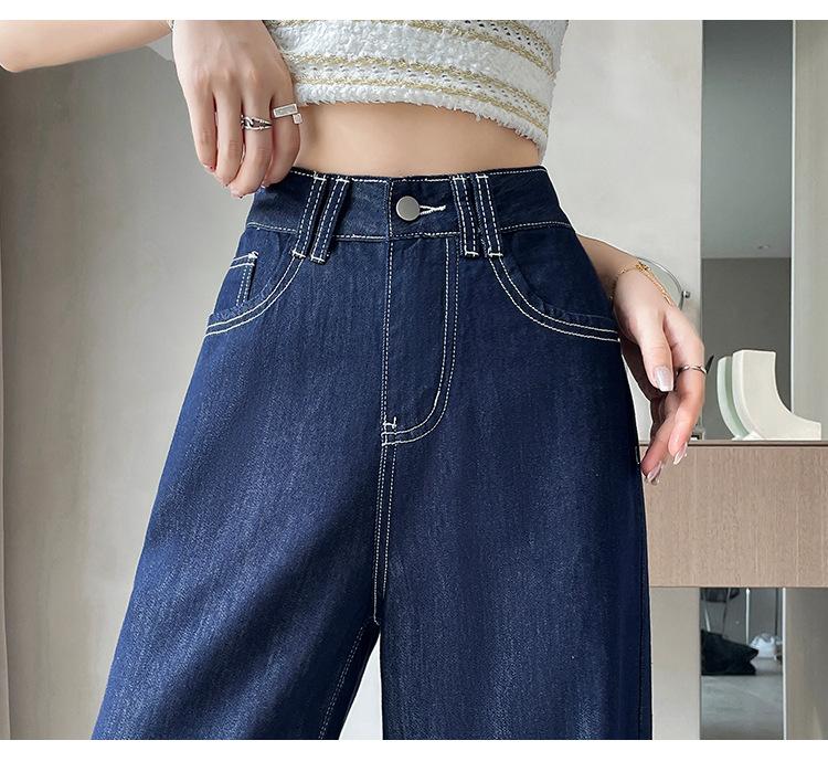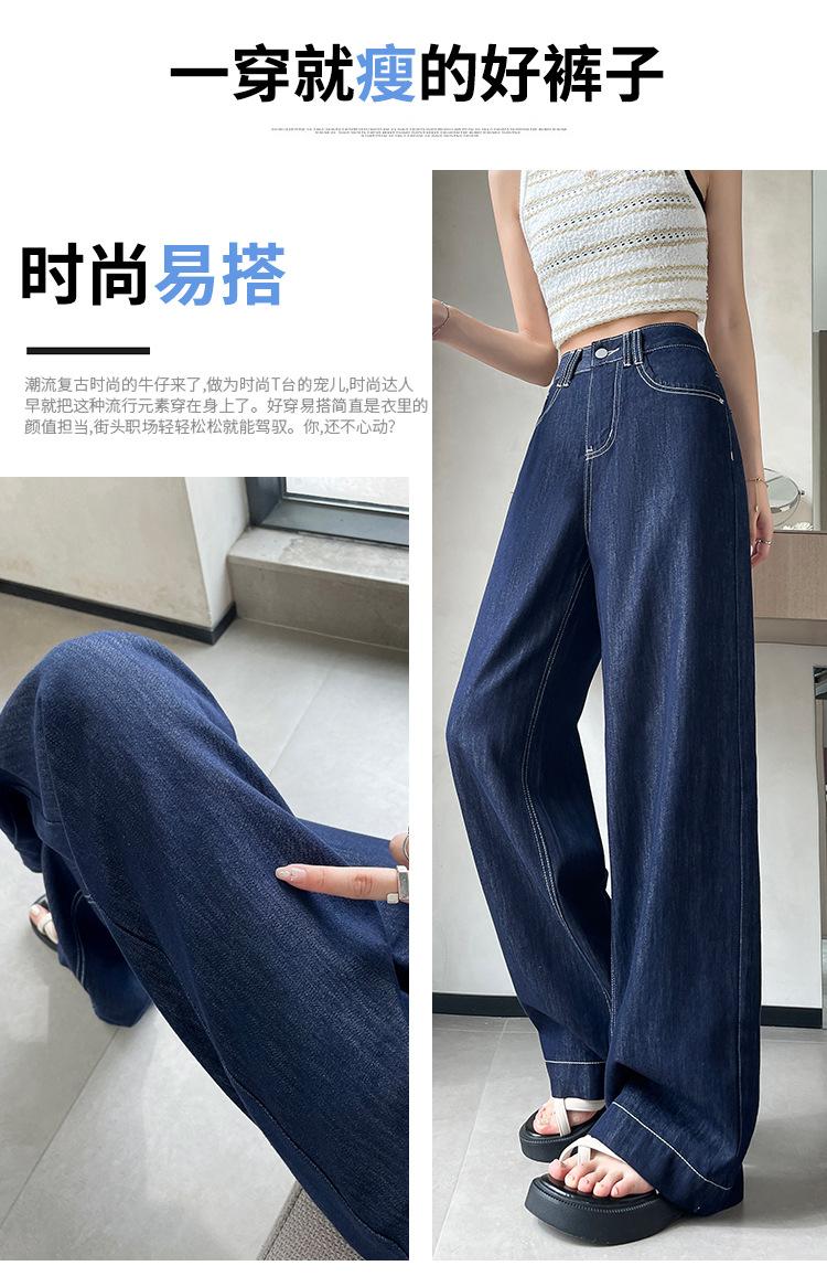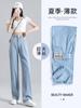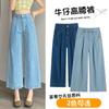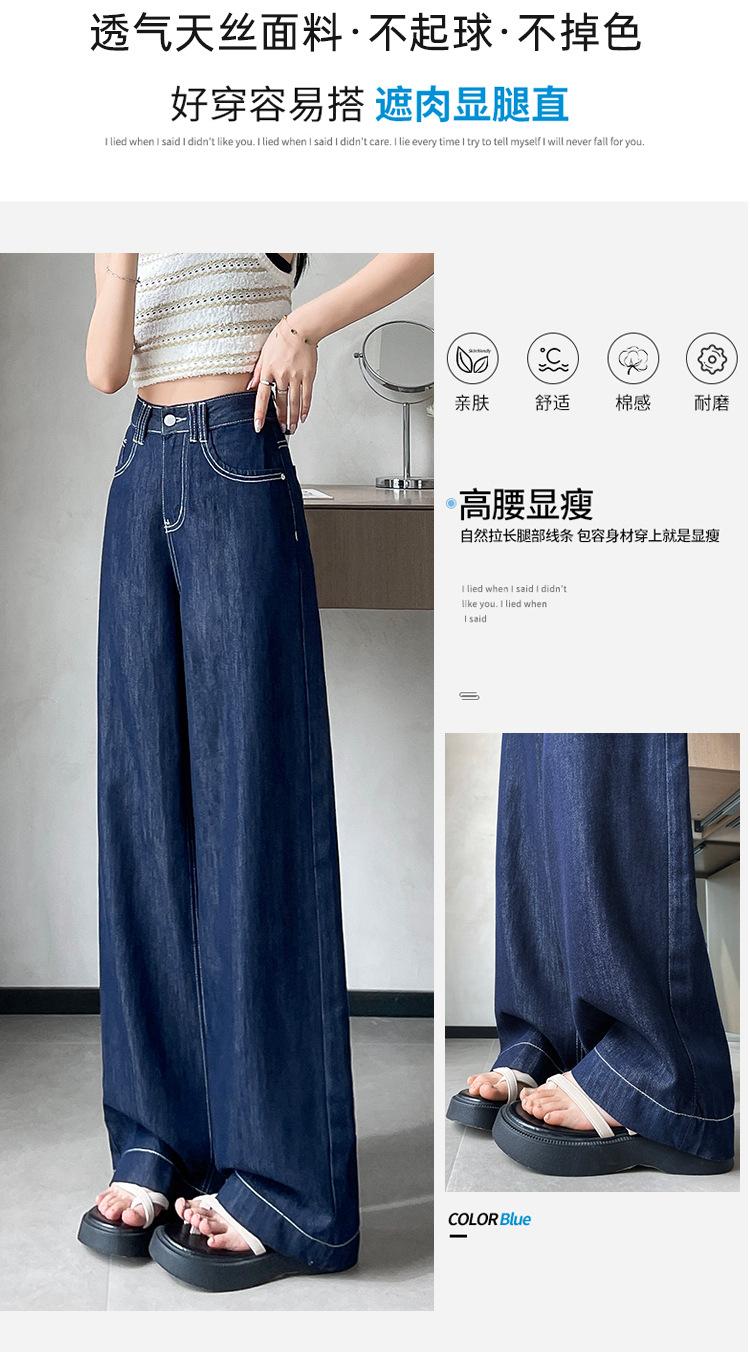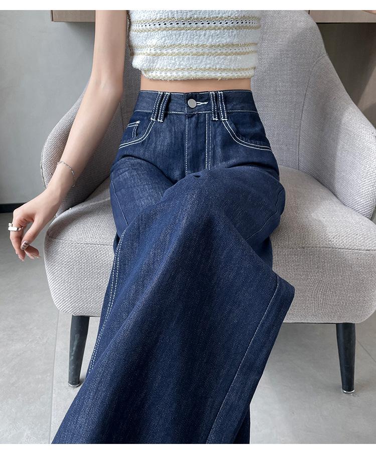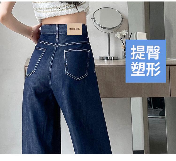 Vaqueros de pierna ancha de Tencel para mujer, pantalones rectos azules de tanino holgados y a la moda de verano 2024.