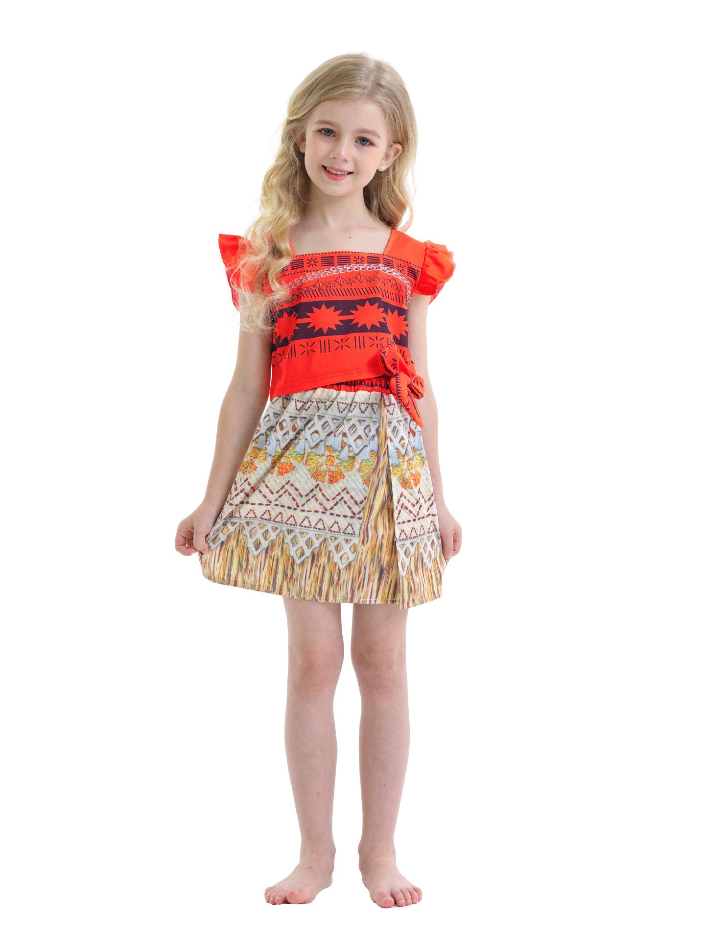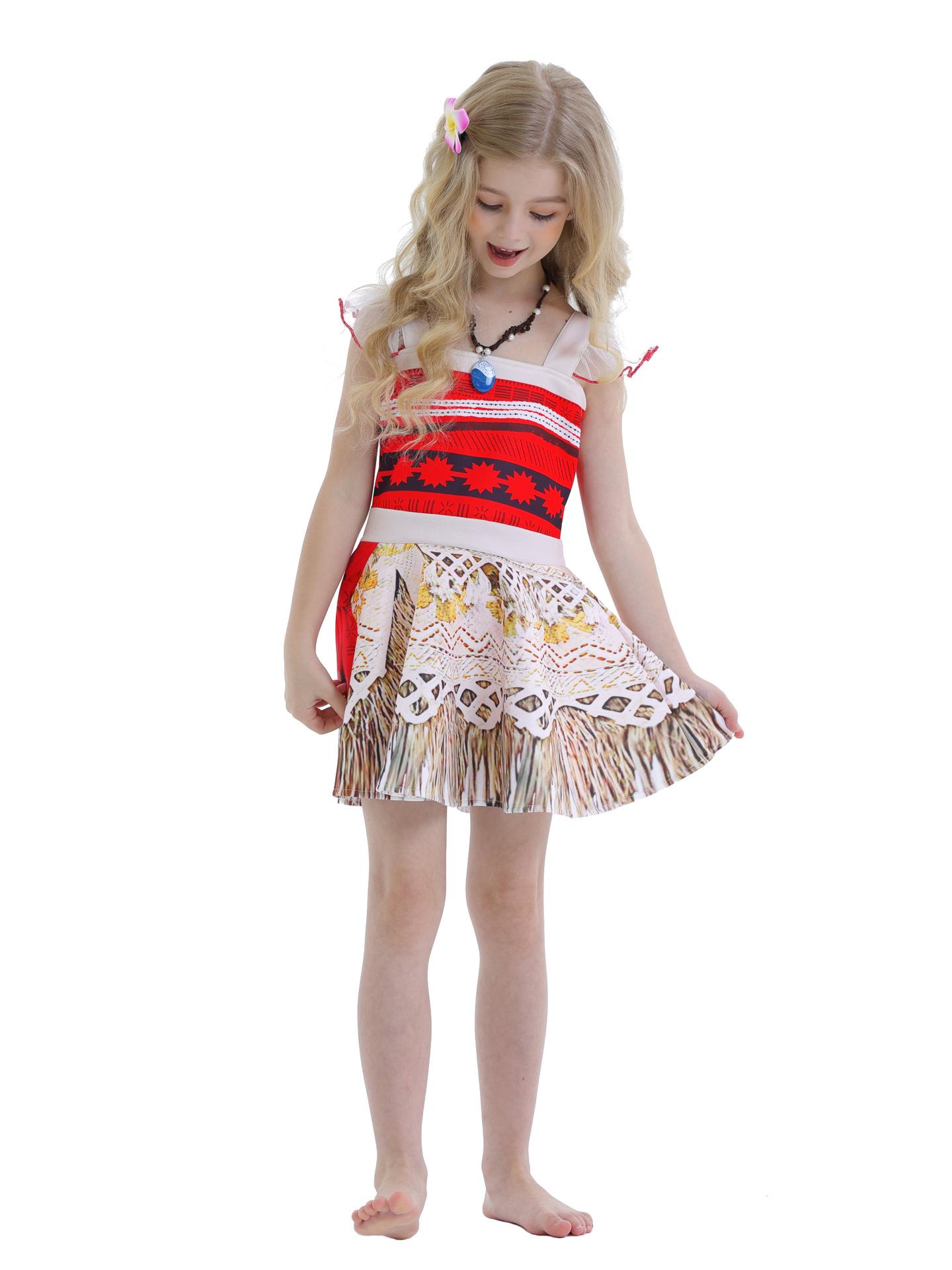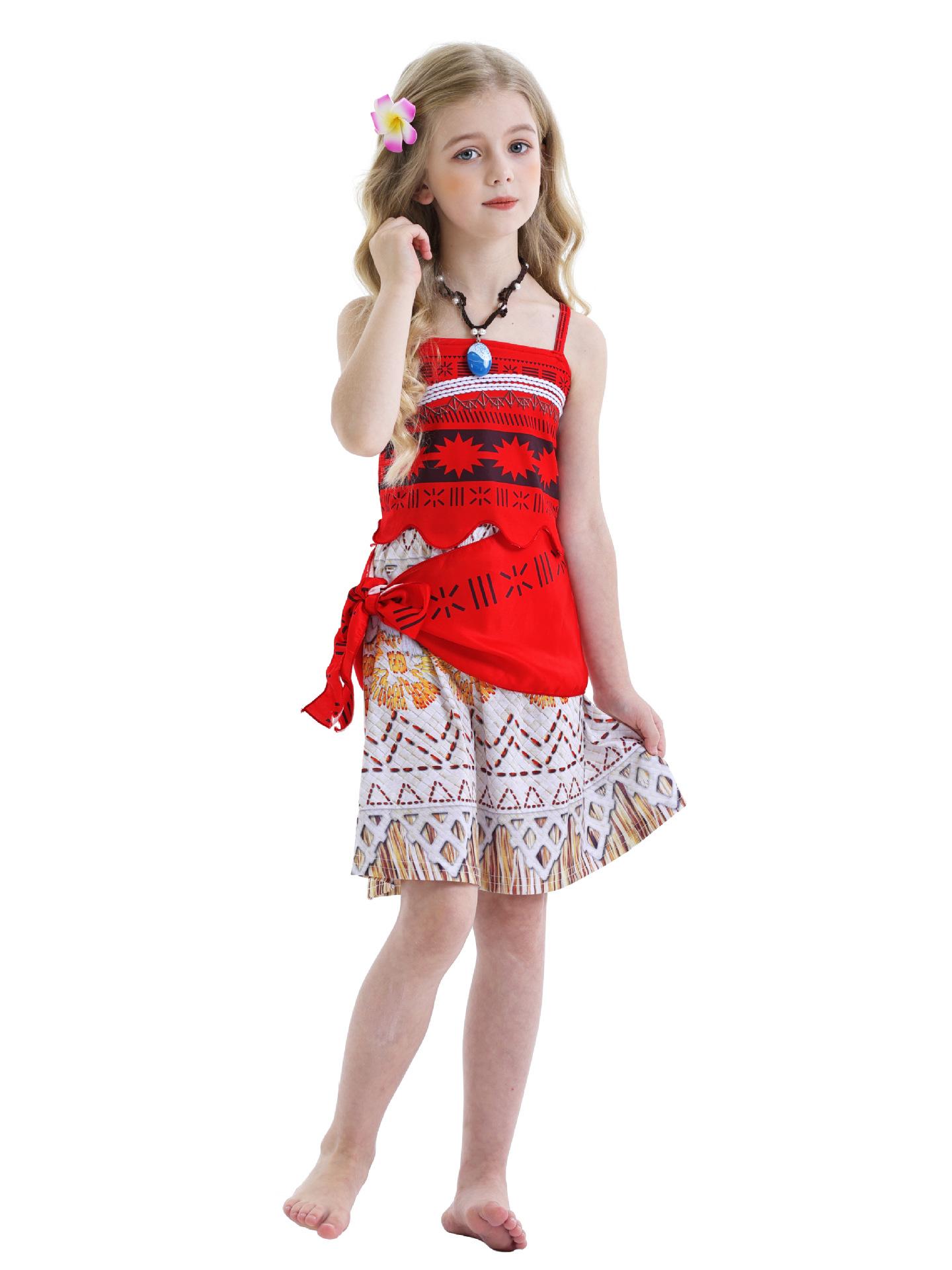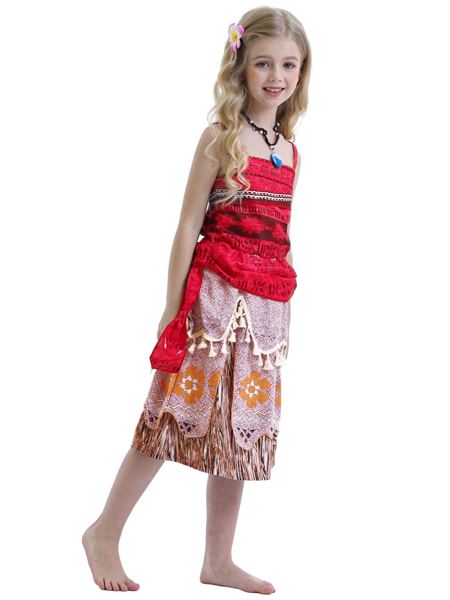 Comercio Exterior Ropa Nueva de Verano para Niños Moana Cos Vestido de Disfraz Vestido de Princesa para Niña Traje de Vestido Rojo para Niños