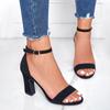 Sandalias de tacón alto para mujer para verano, estilo europeo y americano, talla grande, tira única, tacón grueso, diseño de hebilla, tacones negros para mujer, estilo europeo y americano