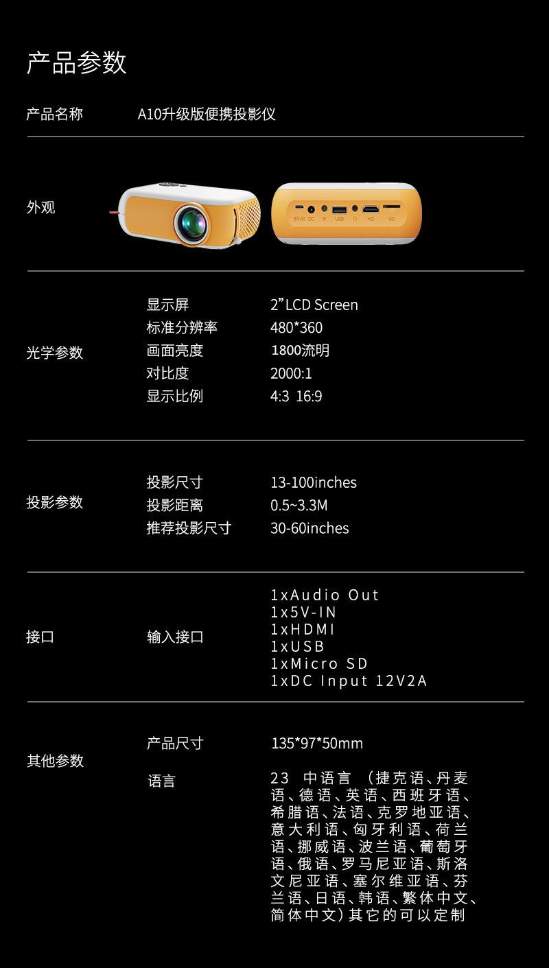 Paquete: miniproyector + cable de alimentación + control remoto + manual de instrucciones