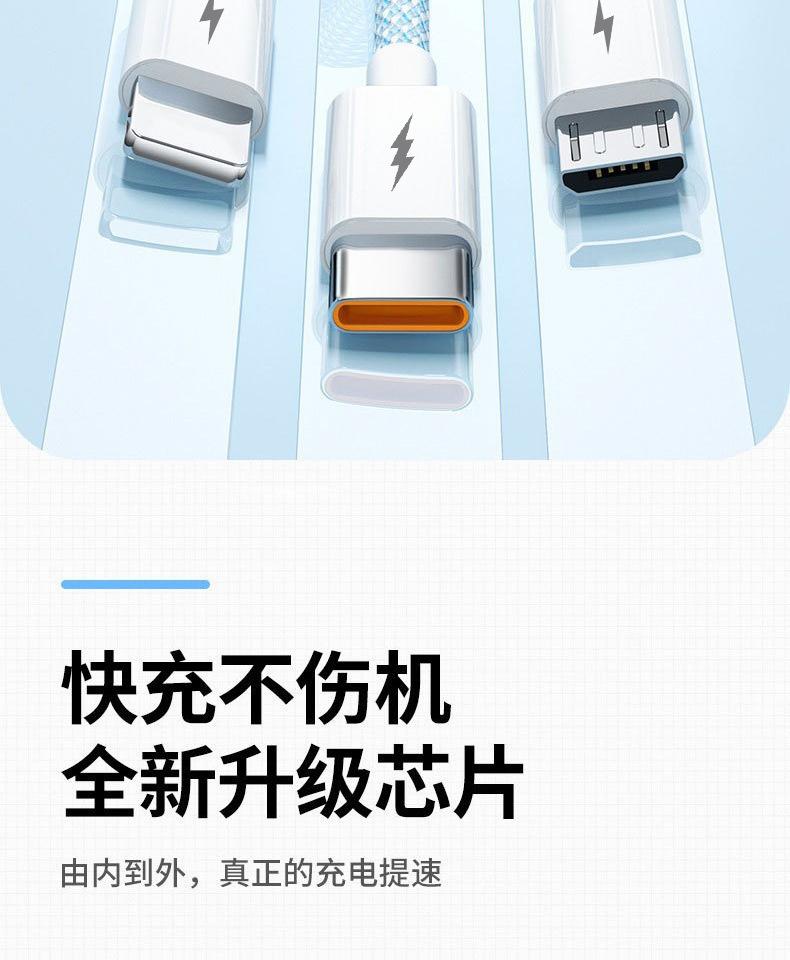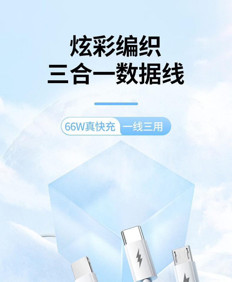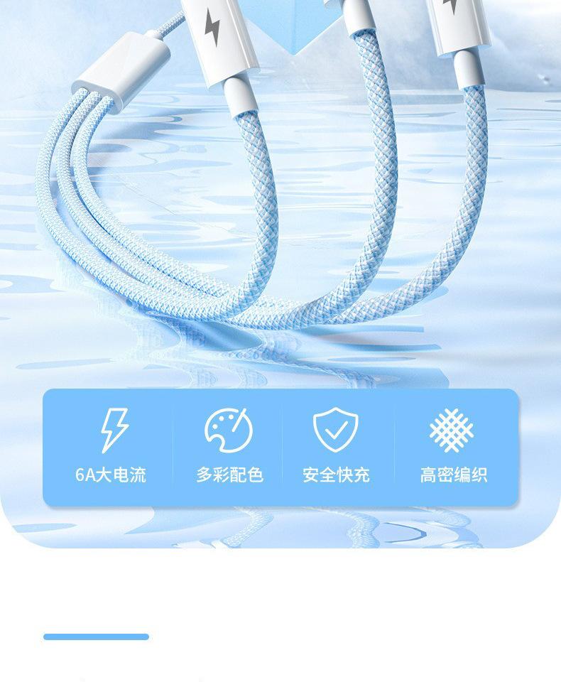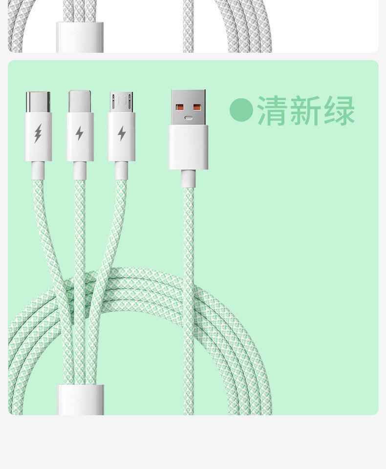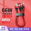 Cable de datos trenzado tres en uno de 66 W Carga rápida 6A De uno a tres Adecuado para cable de carga para teléfono móvil Huawei Apple Tipo-C