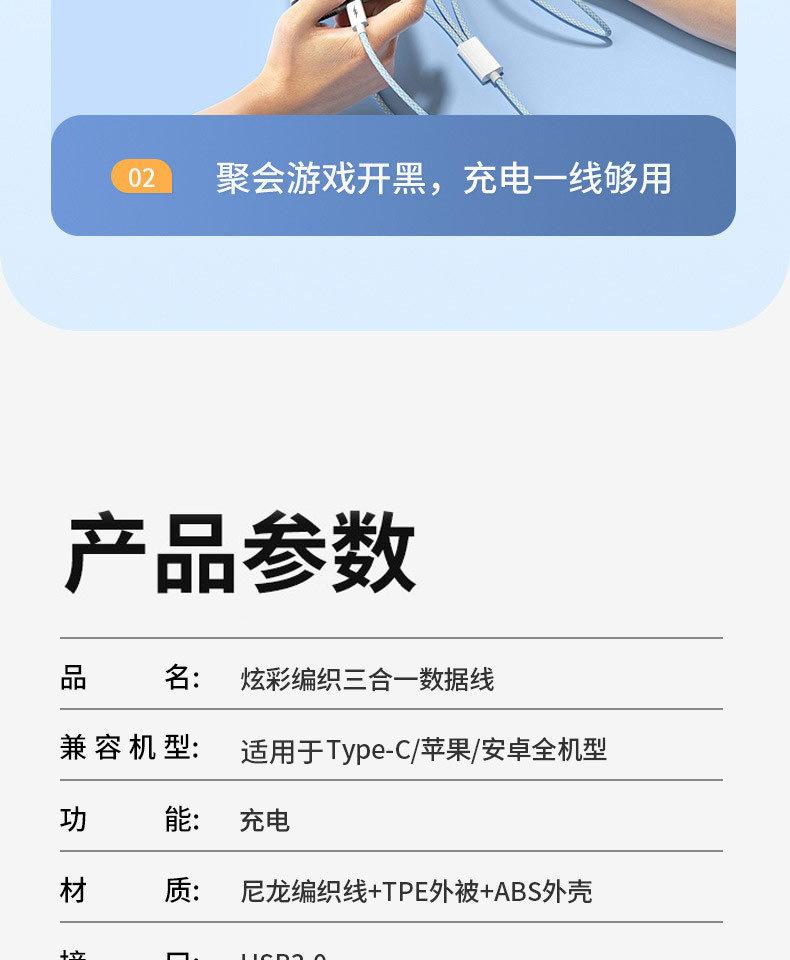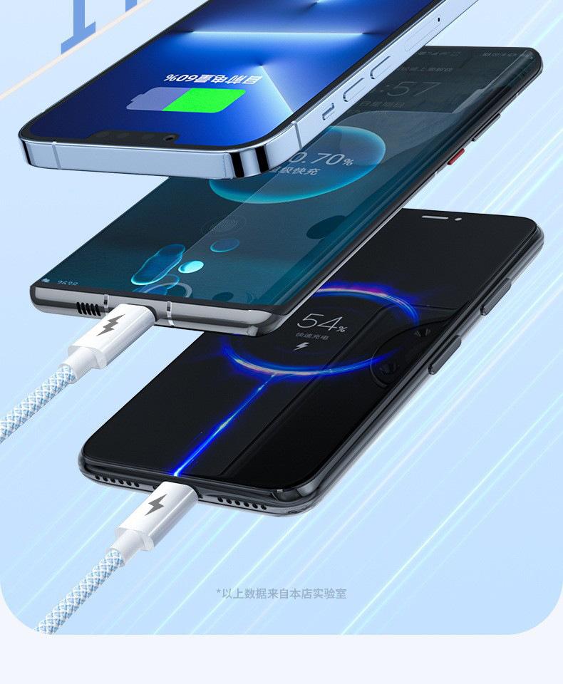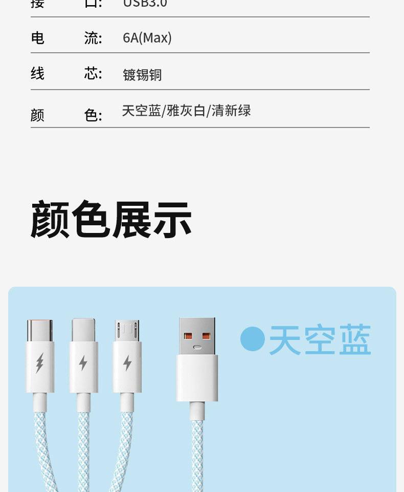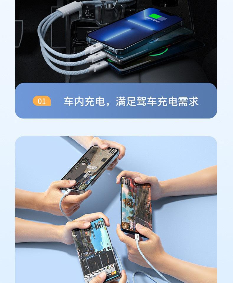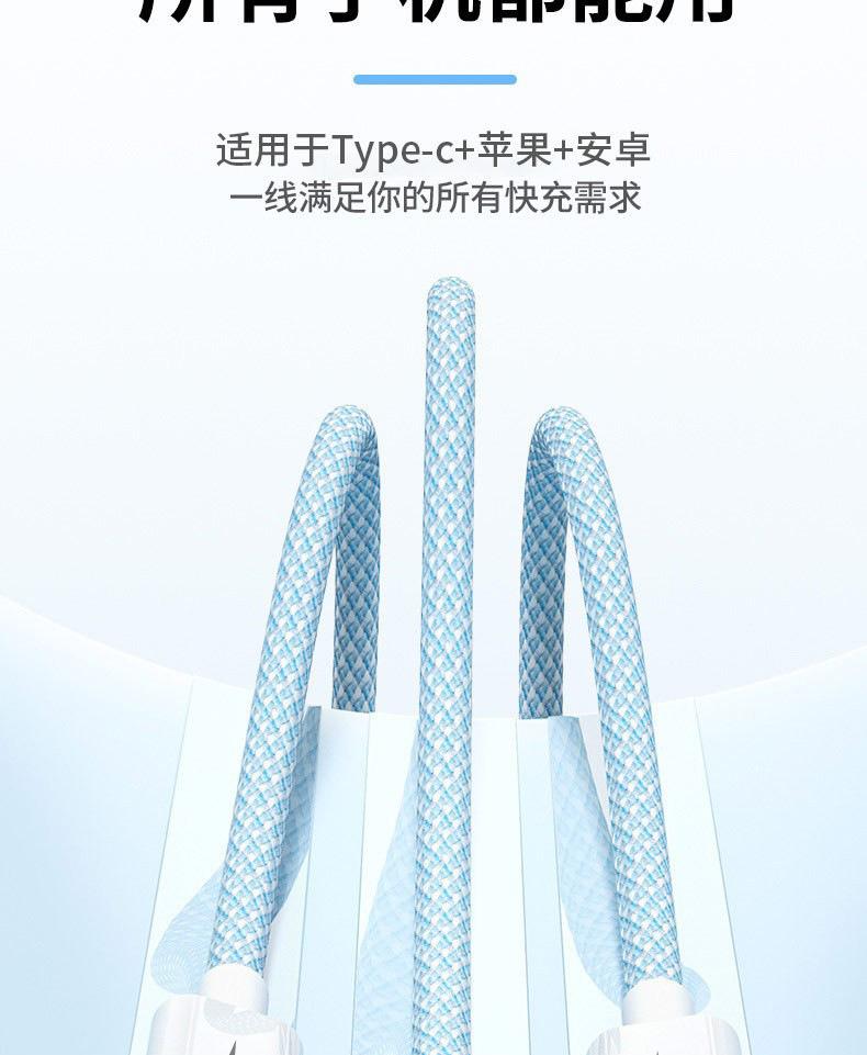 Cable de datos trenzado tres en uno de 66 W Carga rápida 6A De uno a tres Adecuado para cable de carga para teléfono móvil Huawei Apple Tipo-C