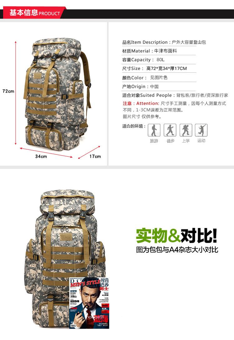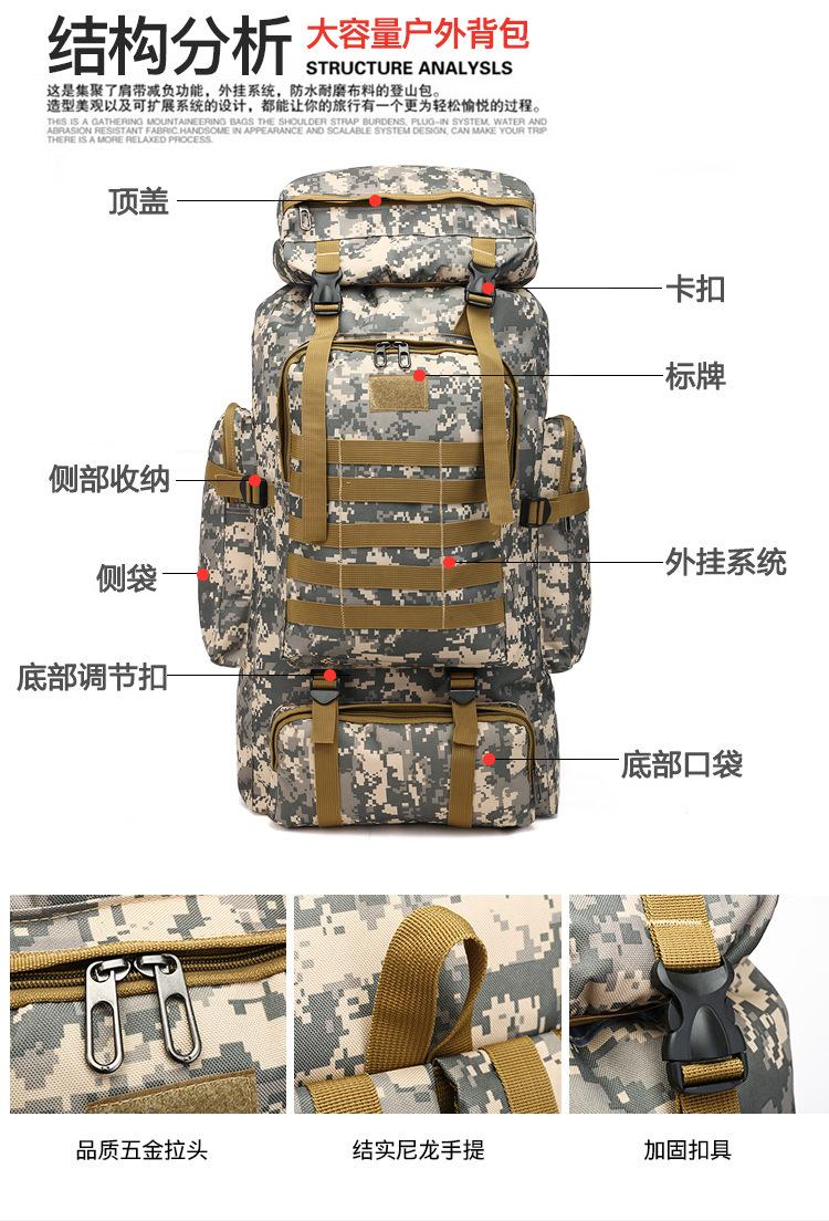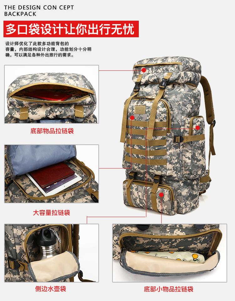 Mochila al por mayor de gran capacidad de 80L, mochila de camuflaje para exteriores, bolso de hombro, bolso de viaje para montañismo, una generación de cabello
