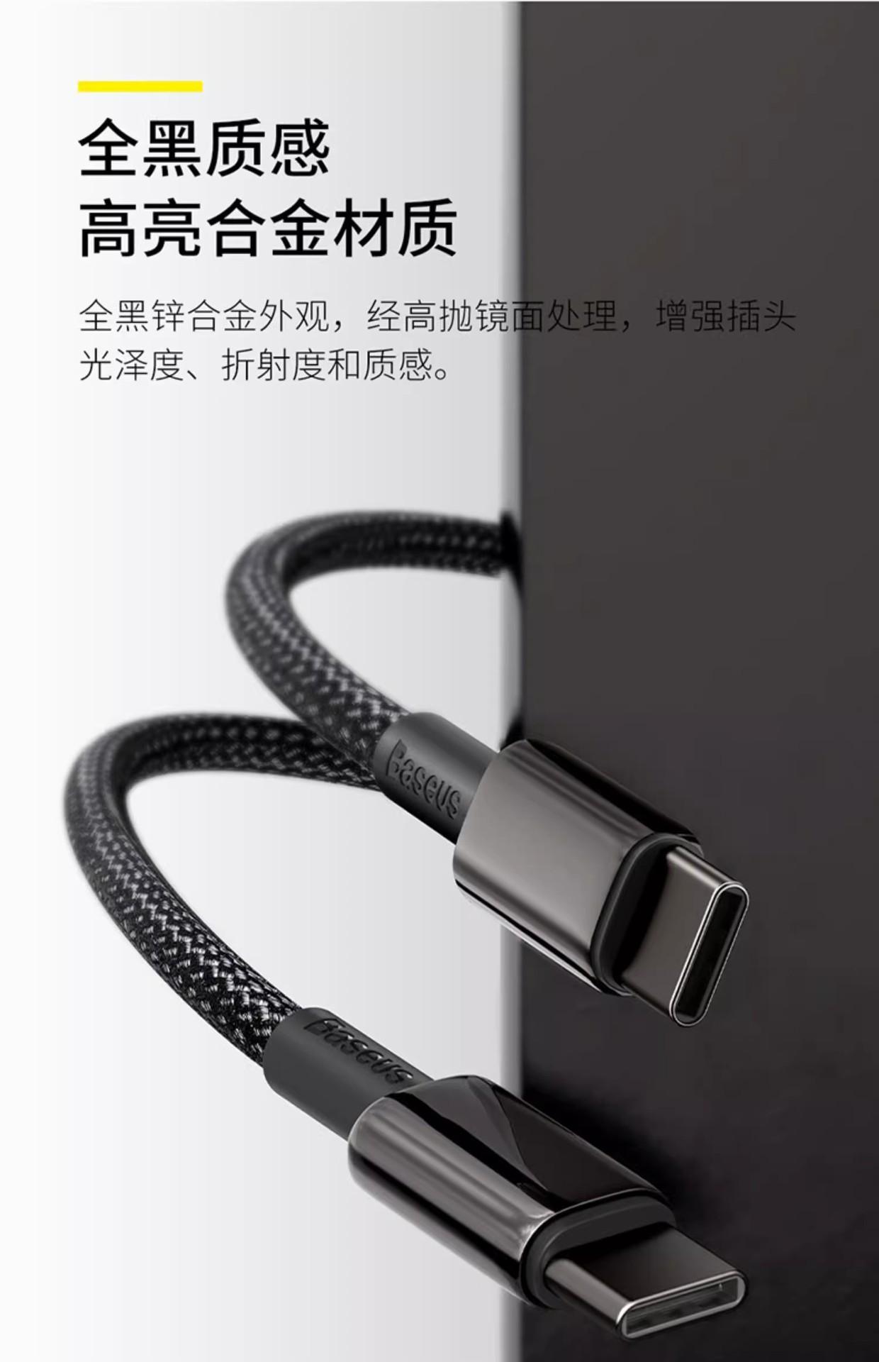 Cable de datos de 100 W con interfaz tipo C doble y carcasa metálica tejida para Huawei Glory, VIVO, Millet, iPad y tableta.