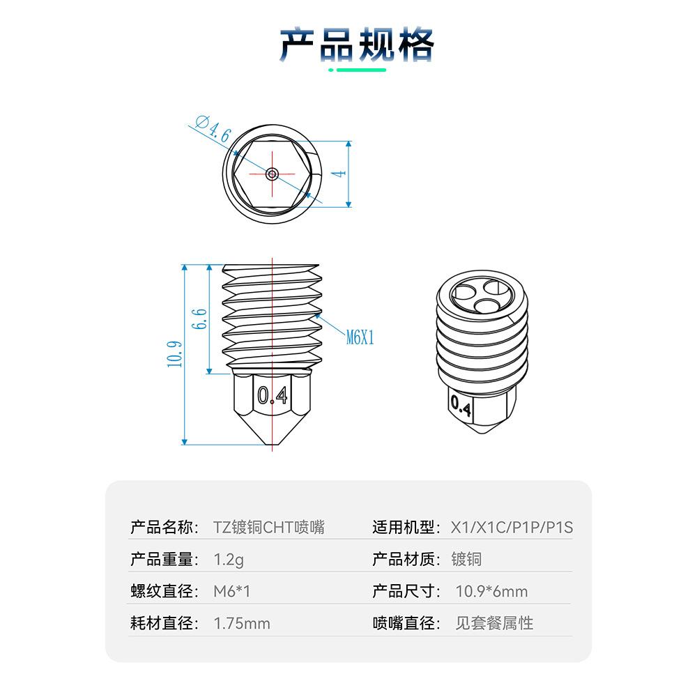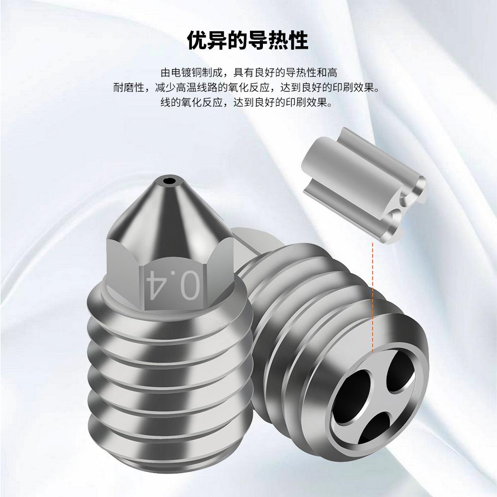 Tz three-hole copper-plated nozzle 0.4mm-1pcs