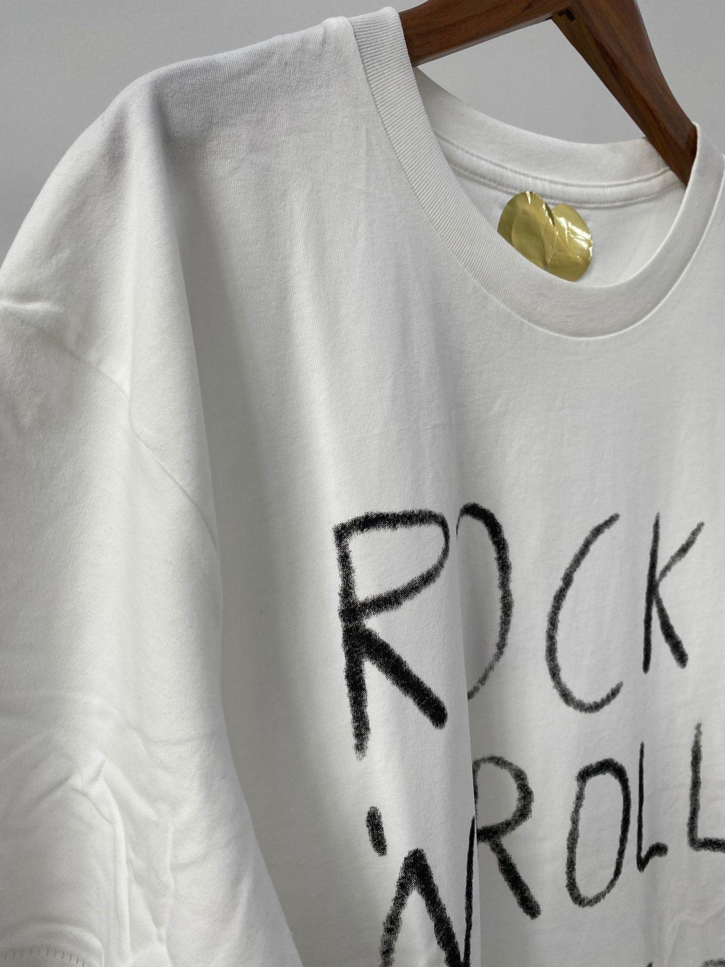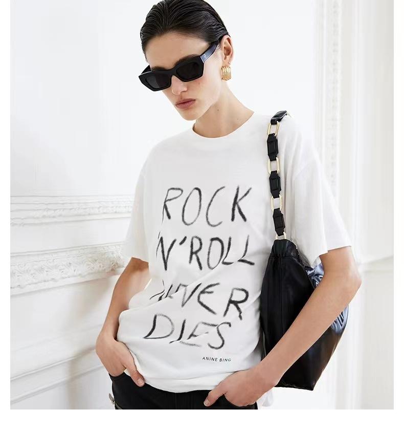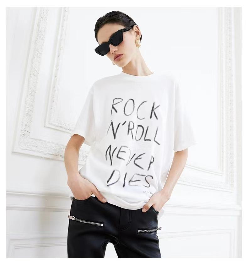 24 Verano nuevo nicho norteamericano grafiti de letras AB estampado al agua algodón suelto camiseta blanca de manga corta para mujer