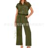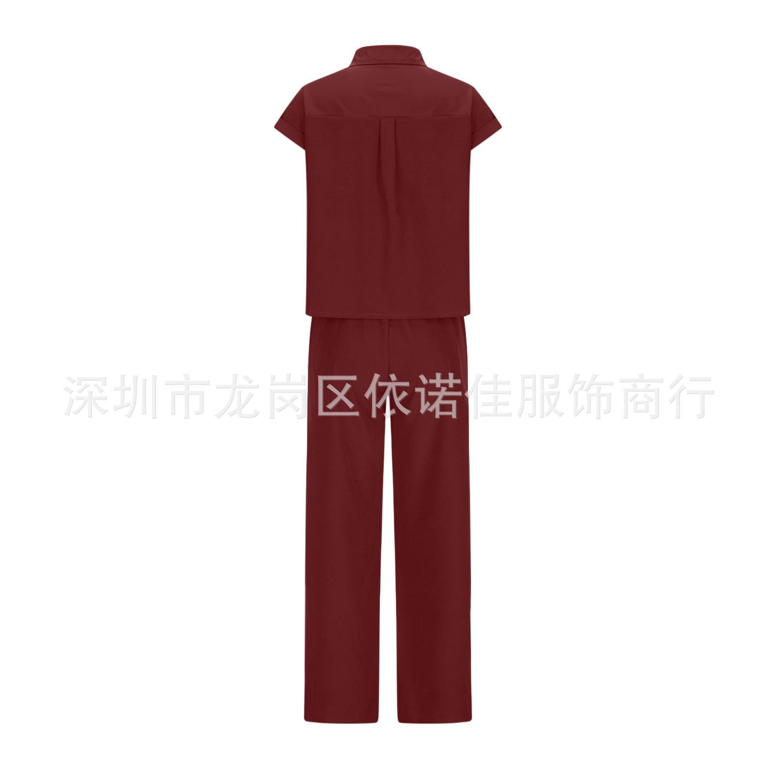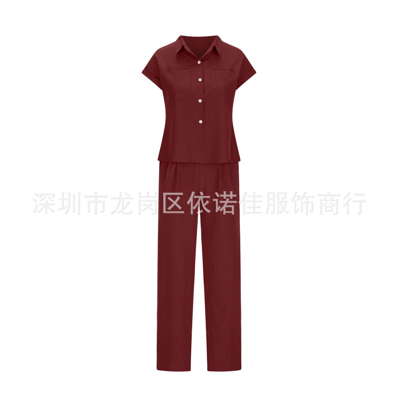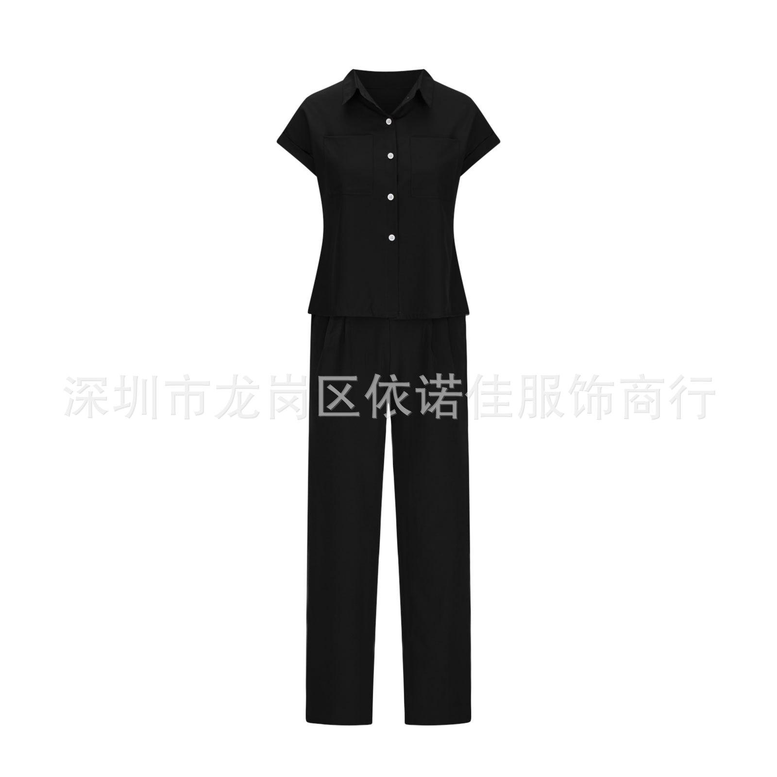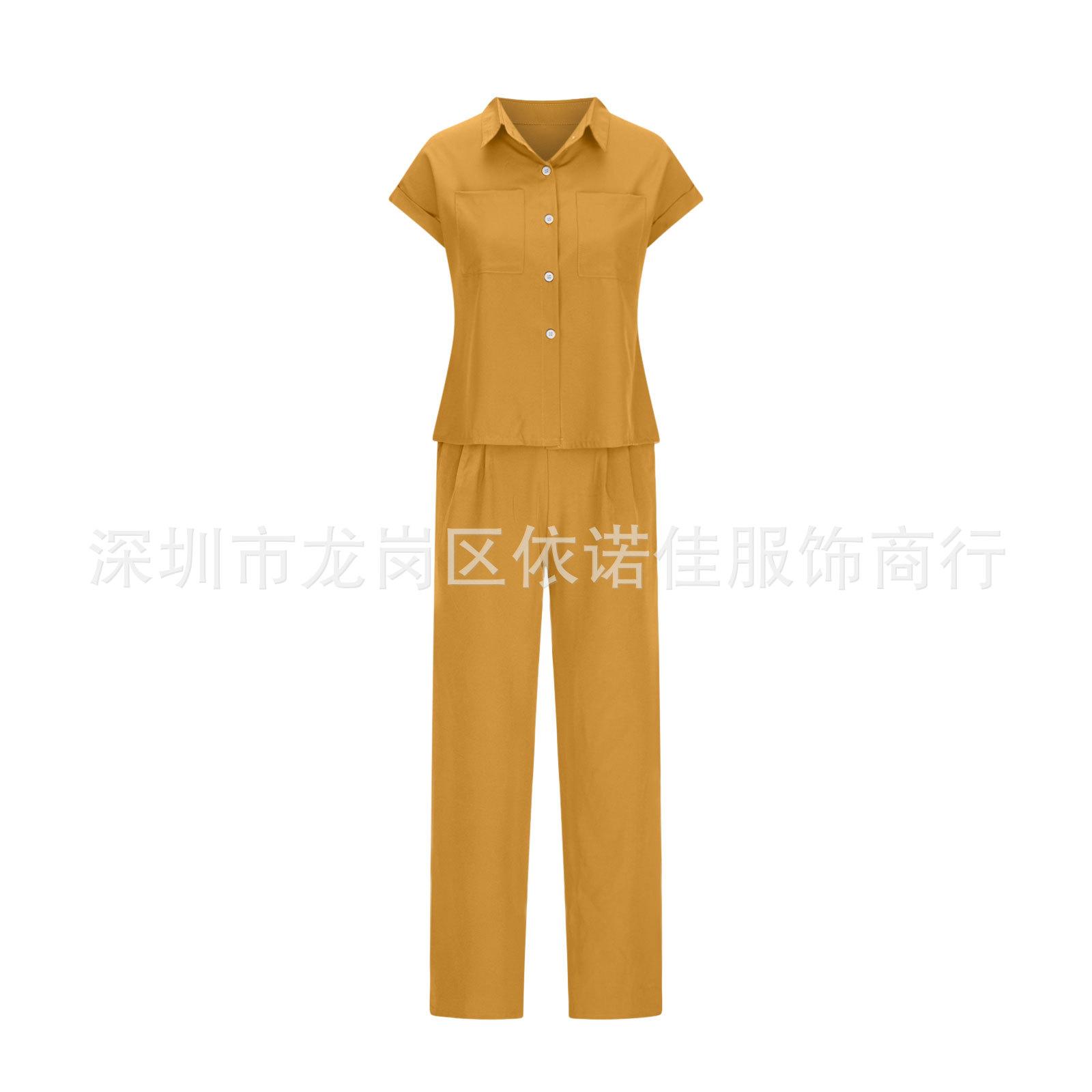 Traje de dos piezas de verano para mujer, informal, con solapa, manga corta y pierna ancha, disponible en stock