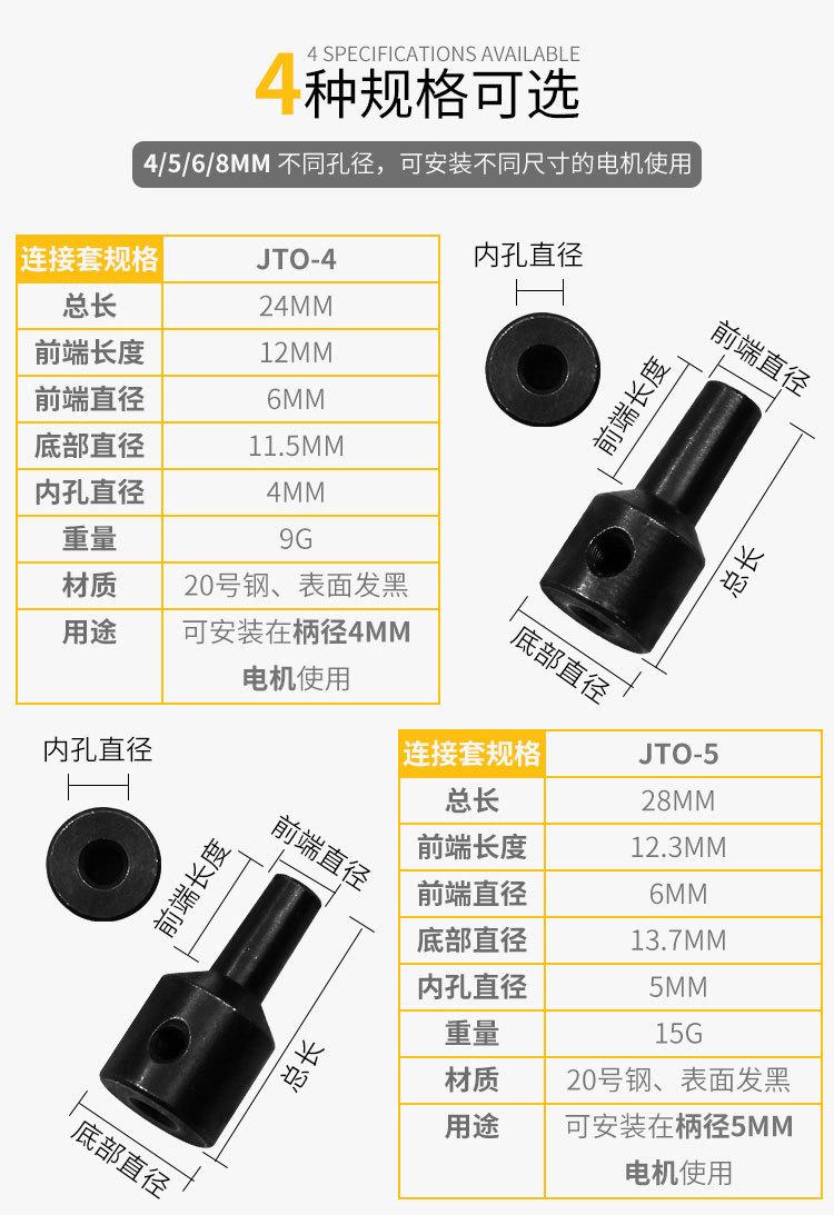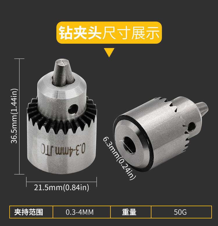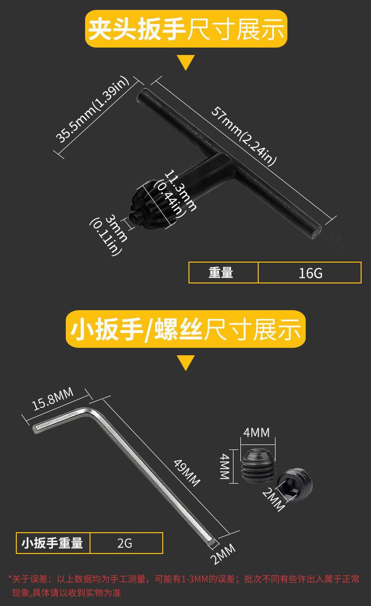 Llave de mandril de 0.3-4*1+llave hexagonal de 2.0*1+tornillos M4*2+manguito de conexión JT0*1 (están disponibles cuatro diámetros de agujero 4/5/6/8)