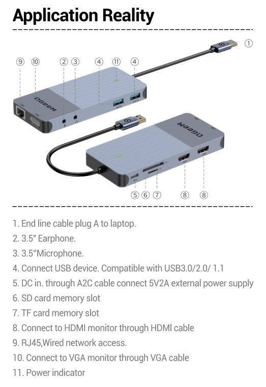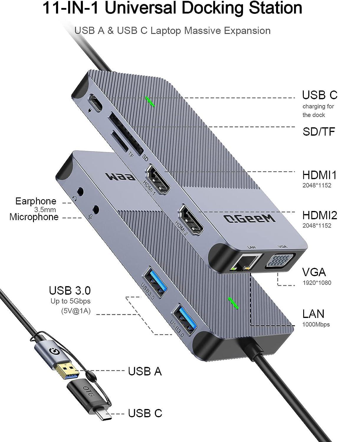 Estación de acoplamiento 11 en 1 DisplayLink triple pantalla hub USB Tipo-C con audio lector de tarjeta de red