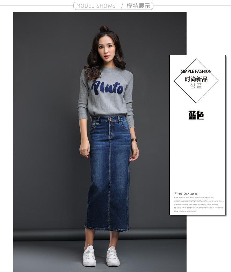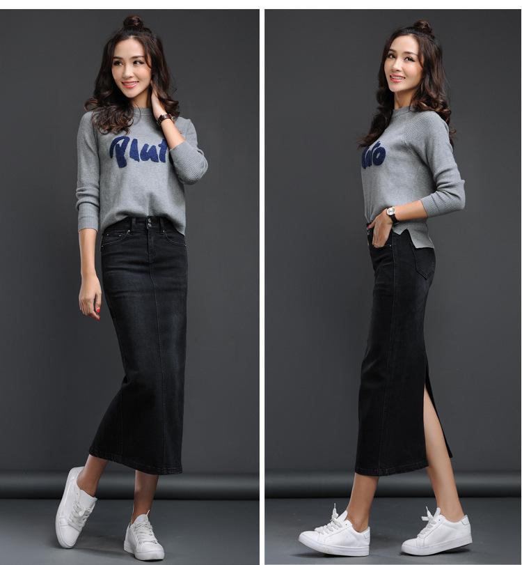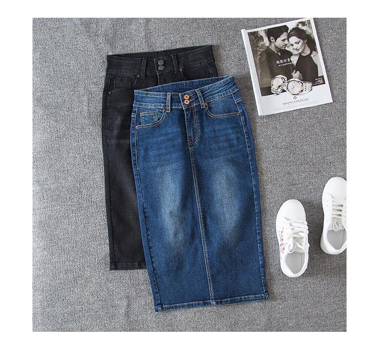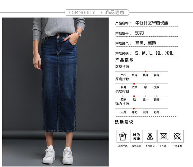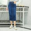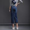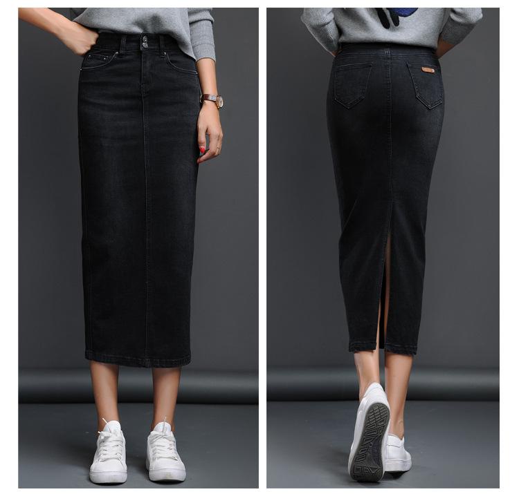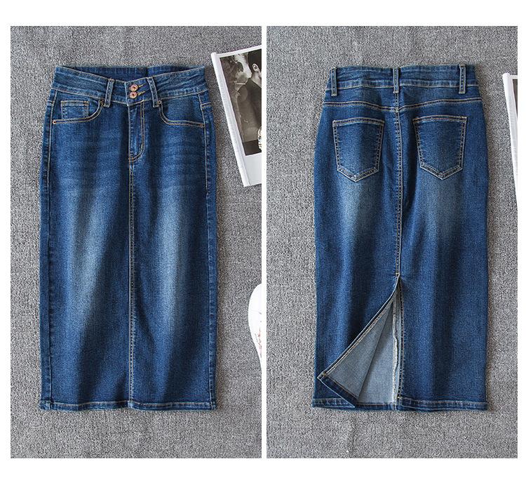 Falda de mezclilla de cintura alta para mujer 2025 Nuevo estilo coreano Falda elástica Falda midi con abertura trasera Falda que cubre los brazos